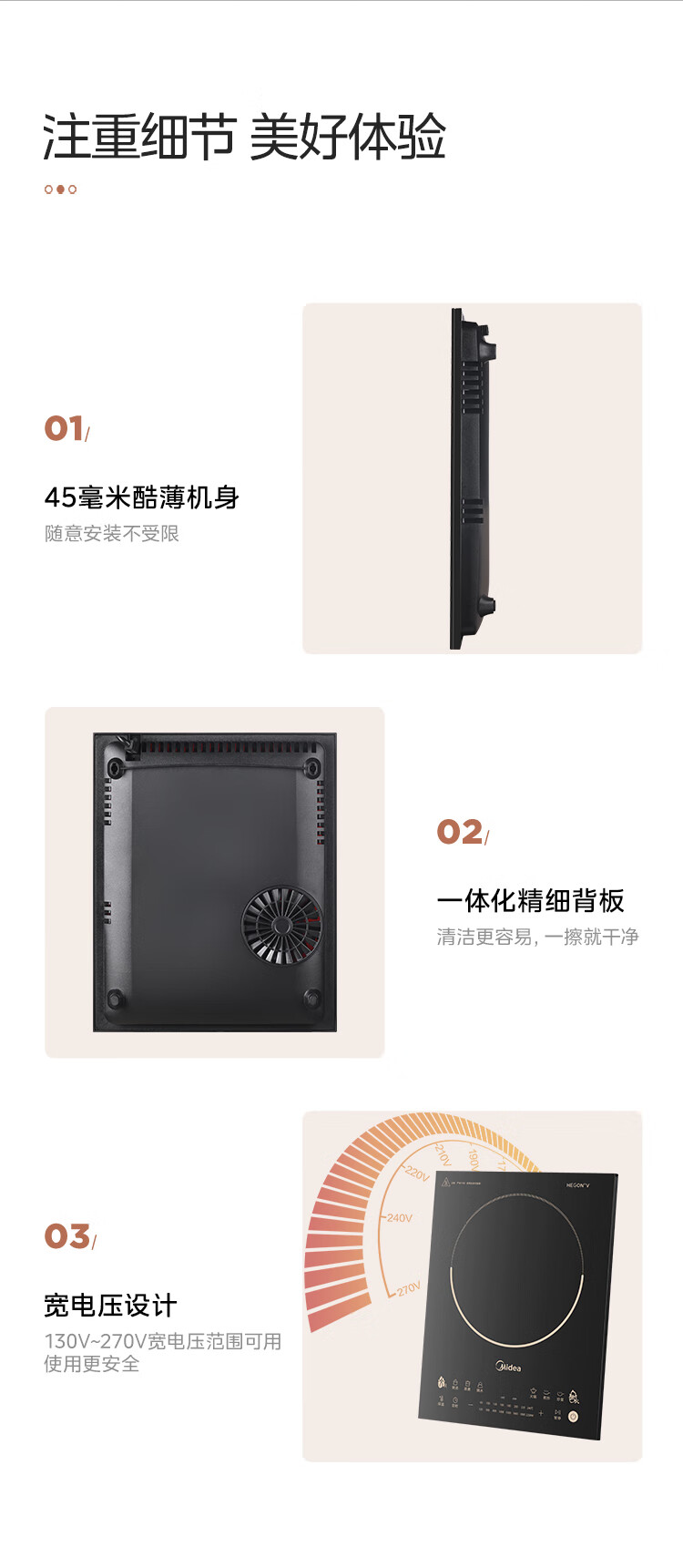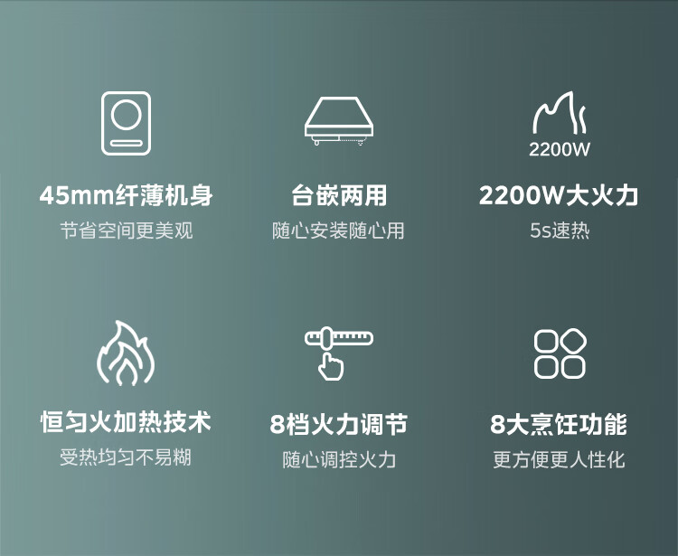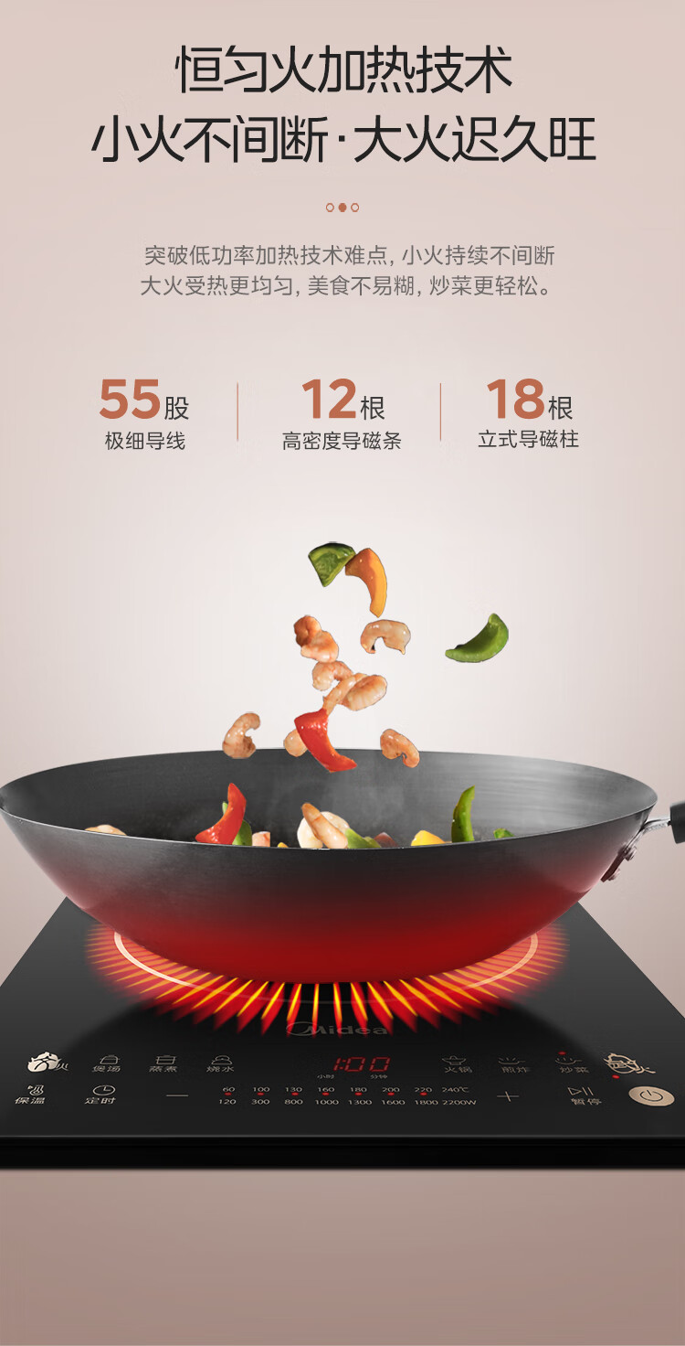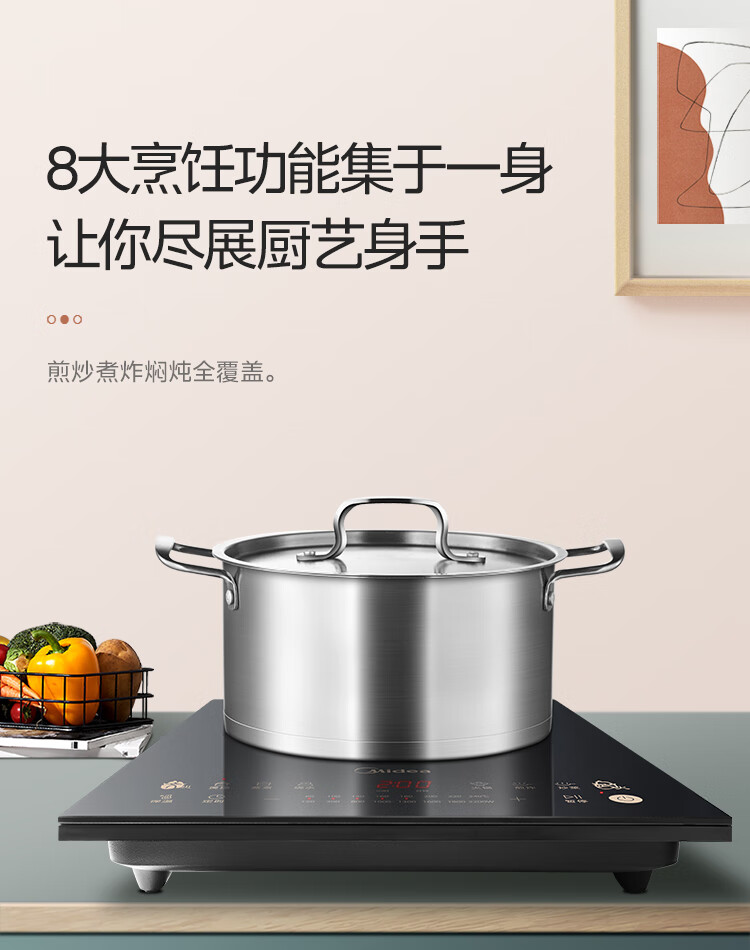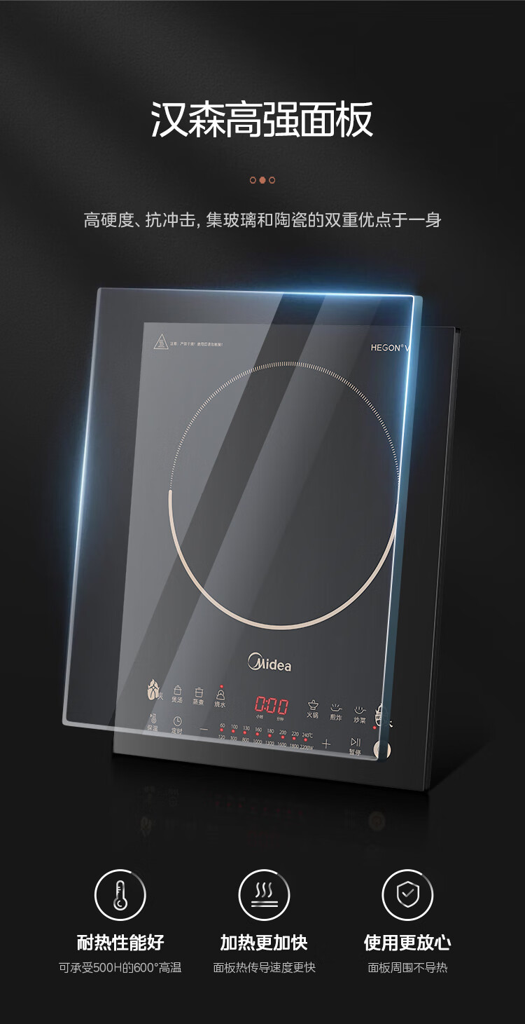 美的(Midea)单灶电磁炉 电磁灶 2200W大功率触控按键面板 八档火力 台嵌两用 定时功能电磁灶火锅炉MC-DZ22S02
