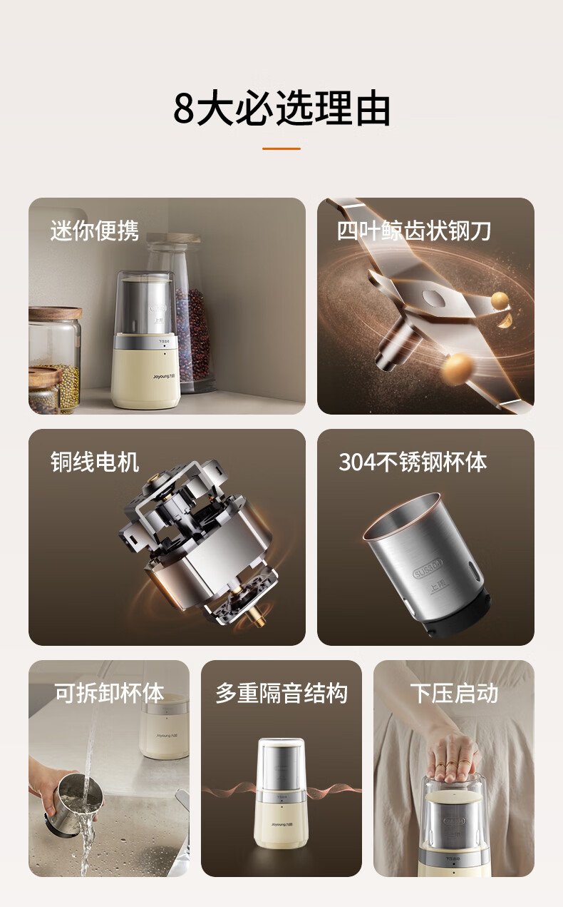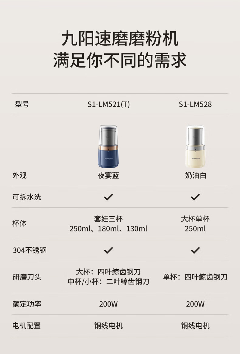 九阳(Joyoung)磨粉机研磨机家用辅食机多功能料理机小型 电动打粉机搅拌机超细五谷杂粮粉碎机S1-LM528