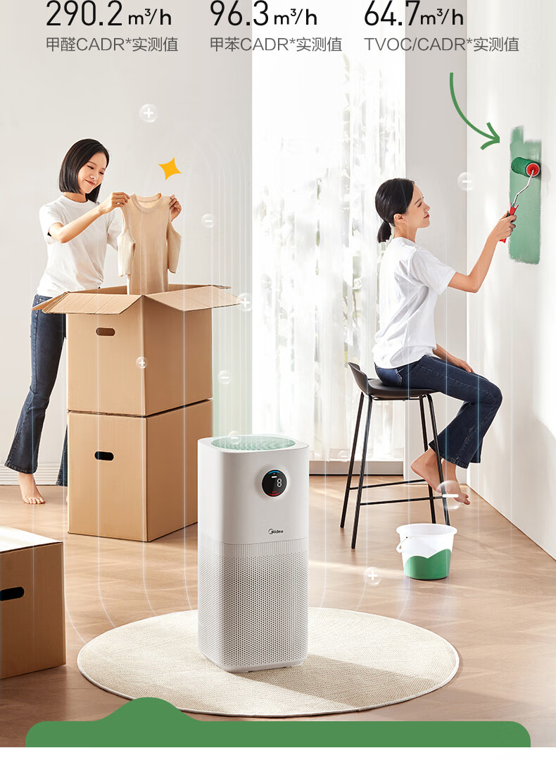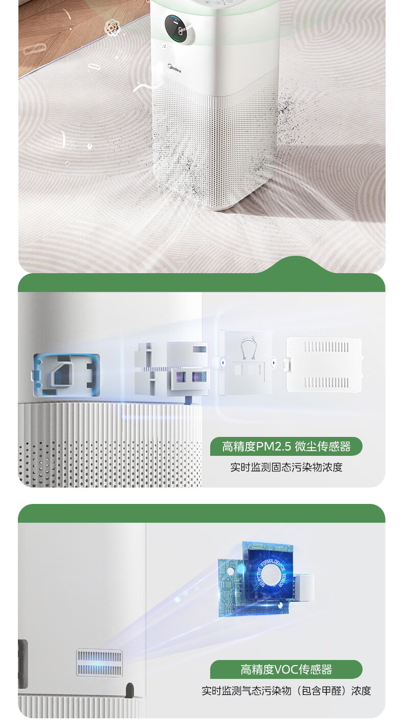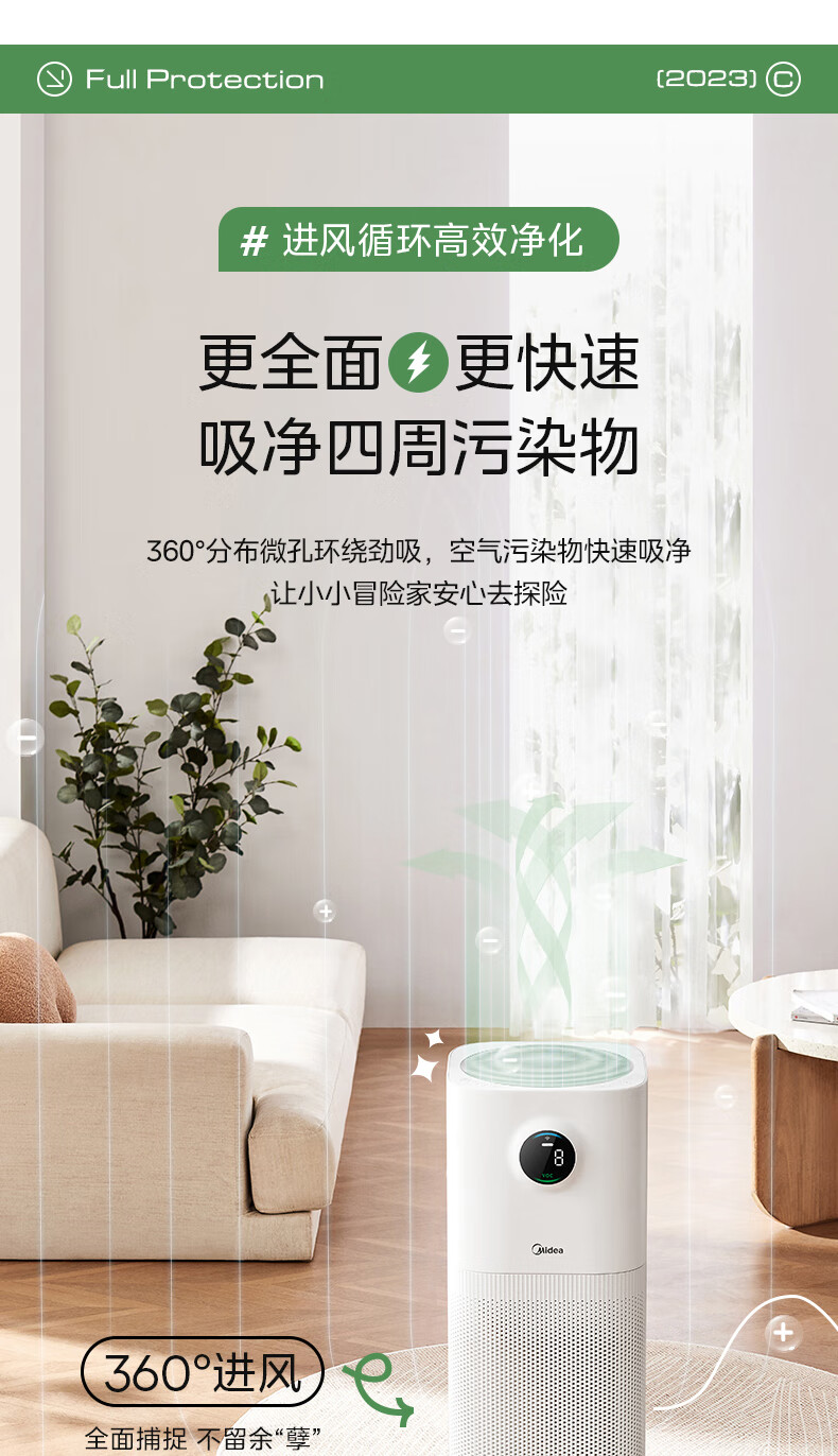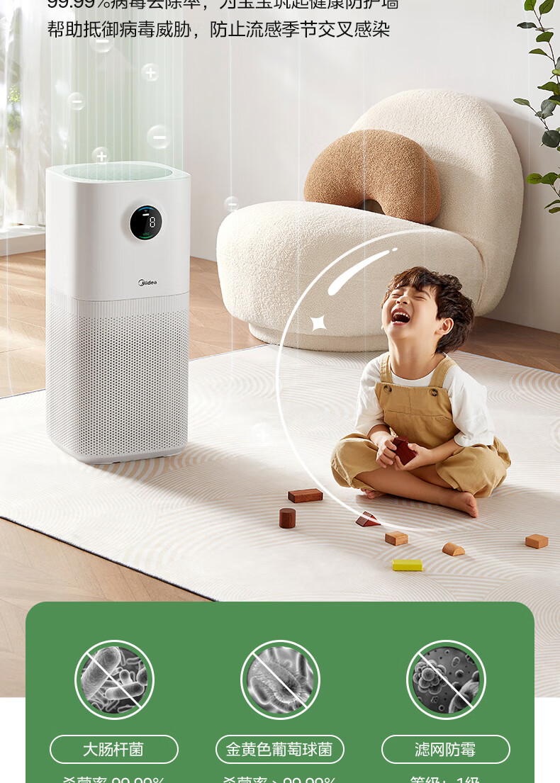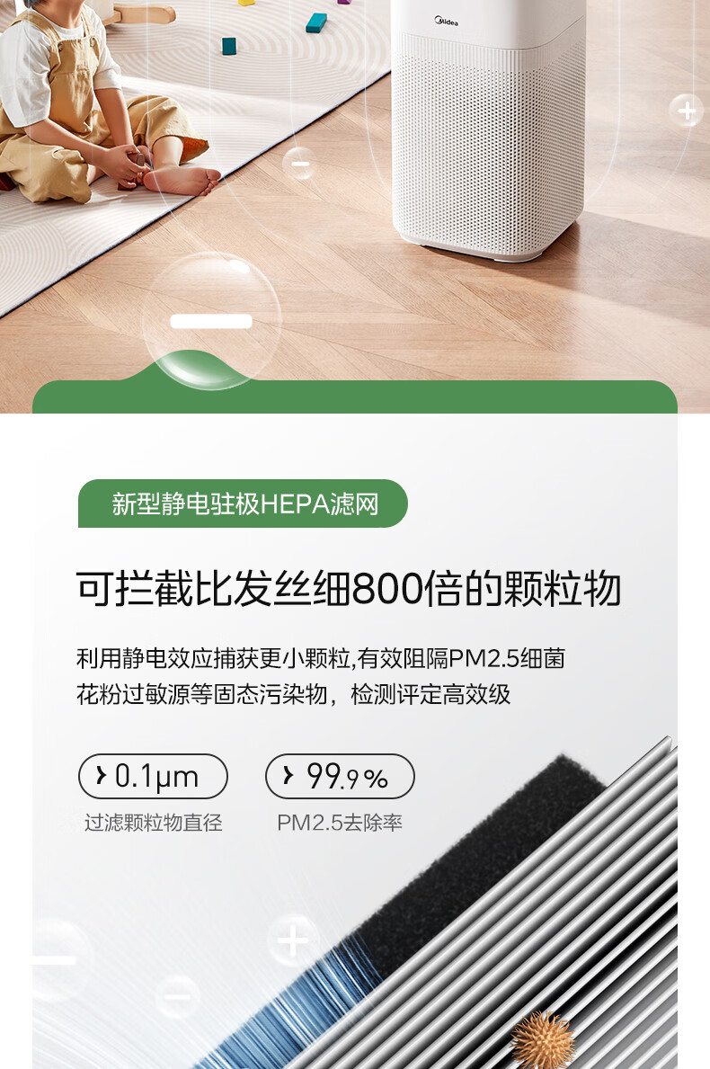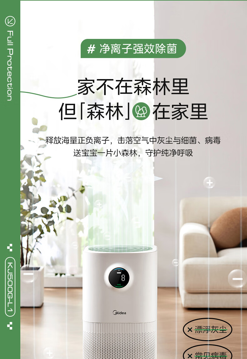 美的(Midea)【六重净化】空气净化器分解甲醛除异味低躁节能家用净化机99.99%病菌去除率空气消毒机KJ500G-L1
