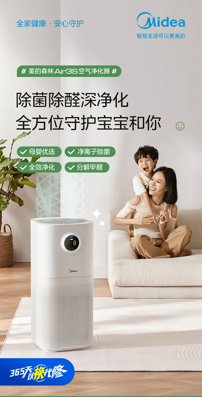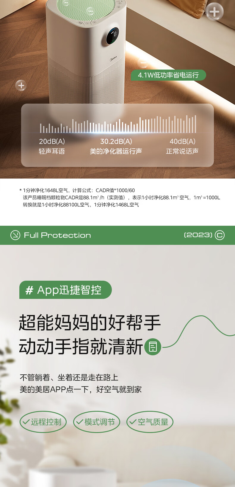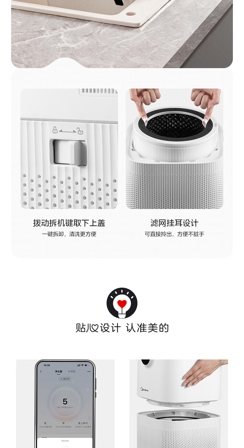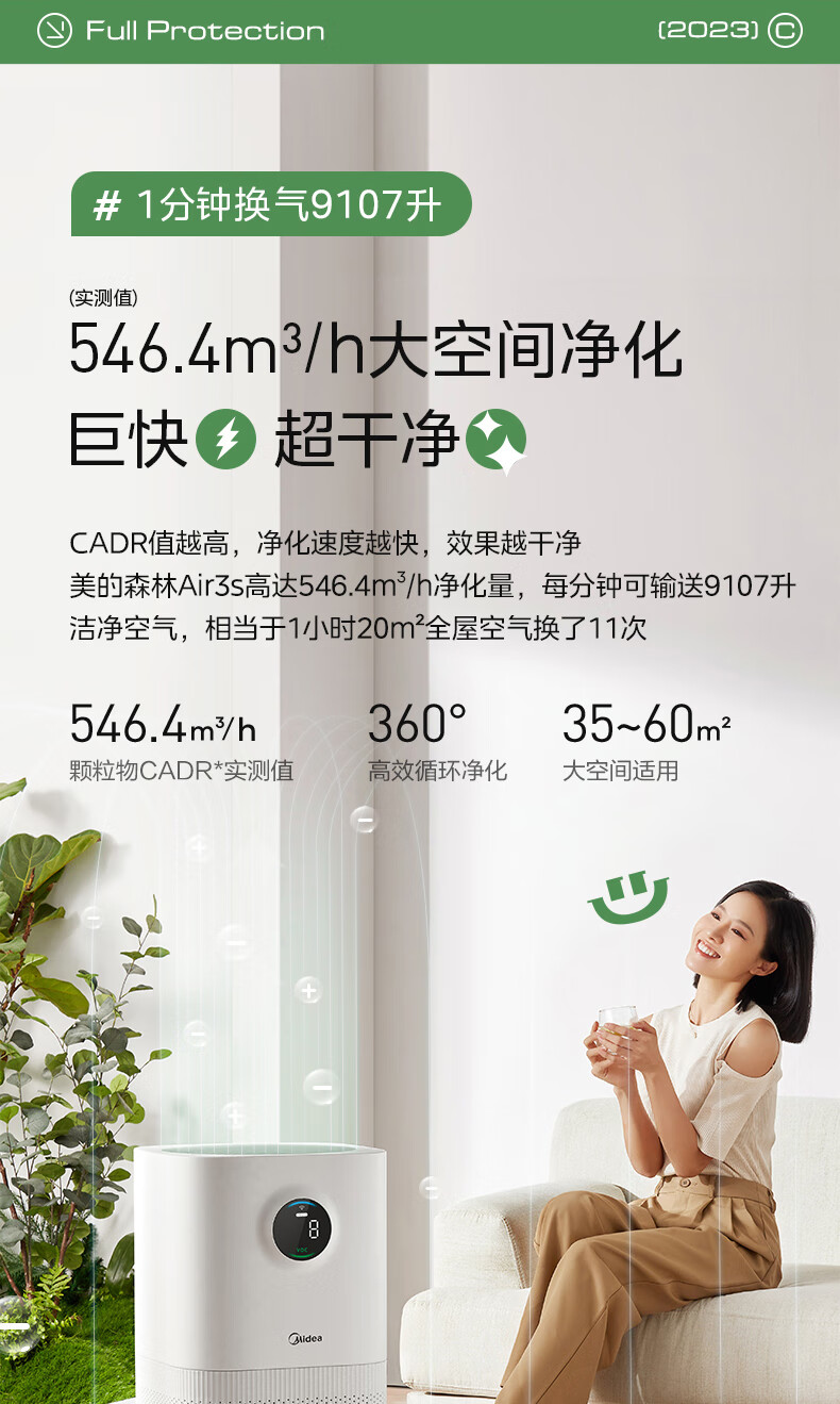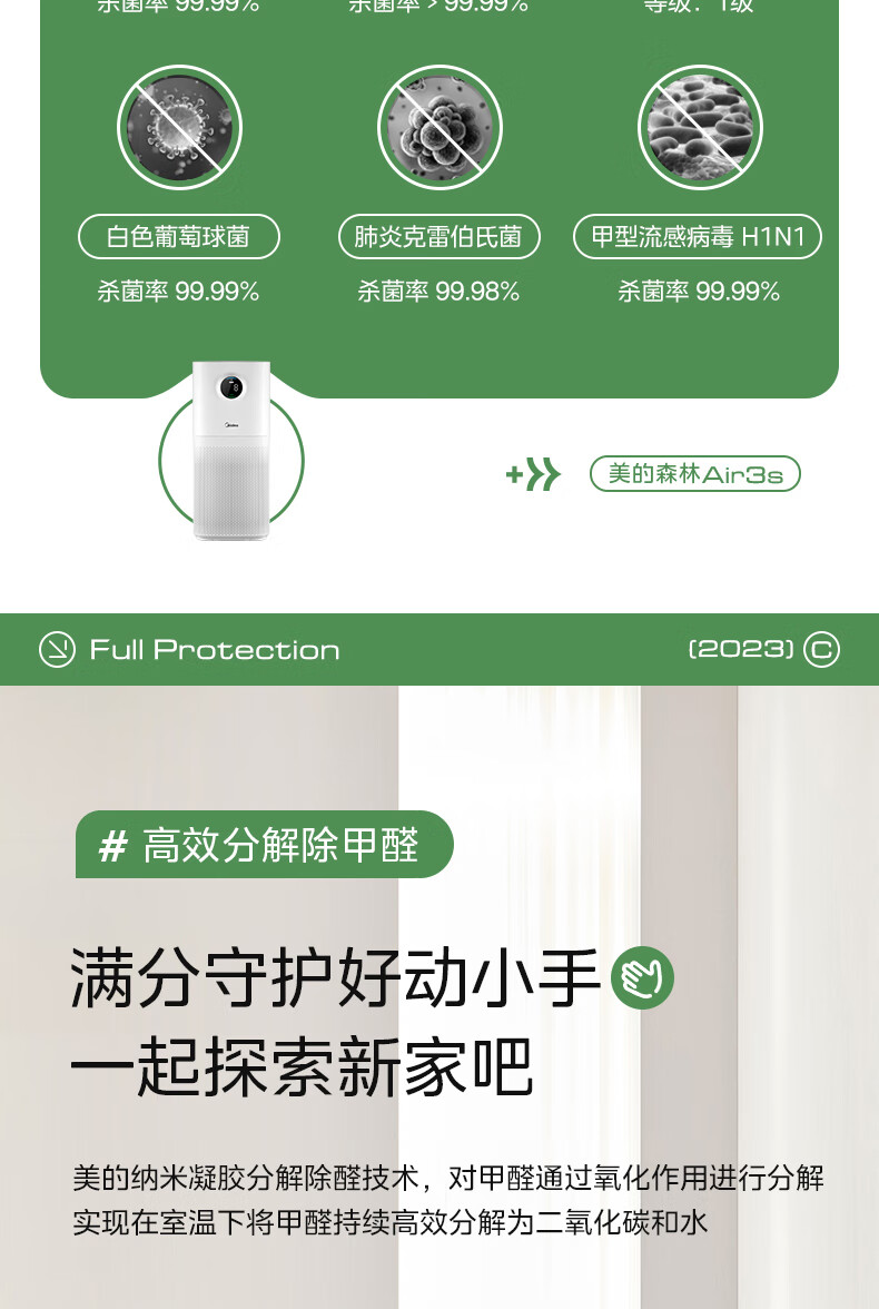 美的(Midea)【六重净化】空气净化器分解甲醛除异味低躁节能家用净化机99.99%病菌去除率空气消毒机KJ500G-L1