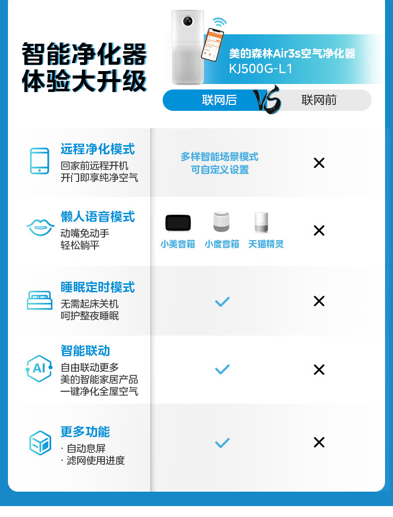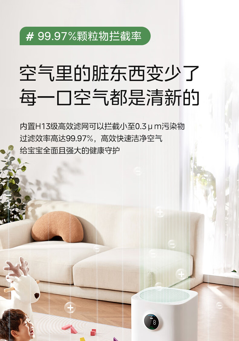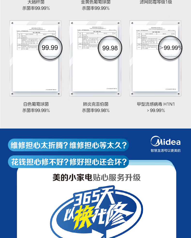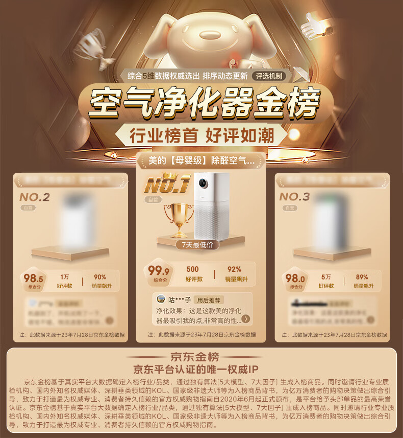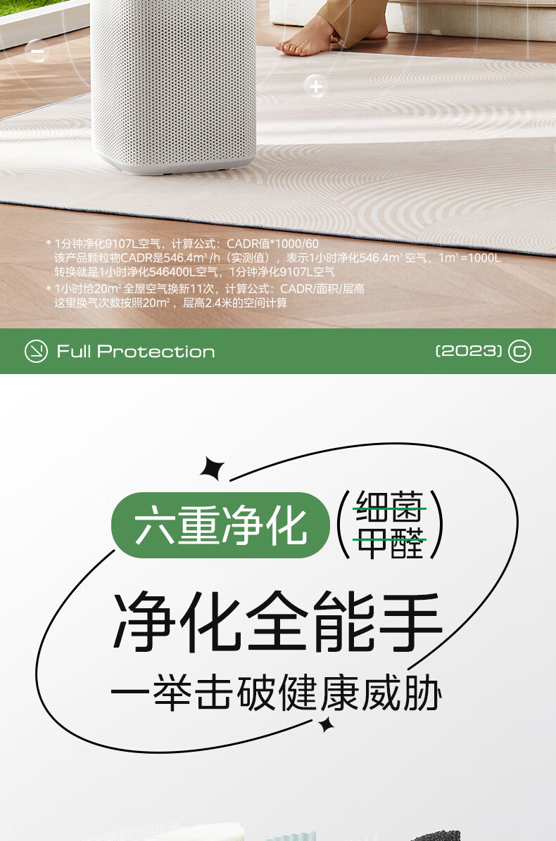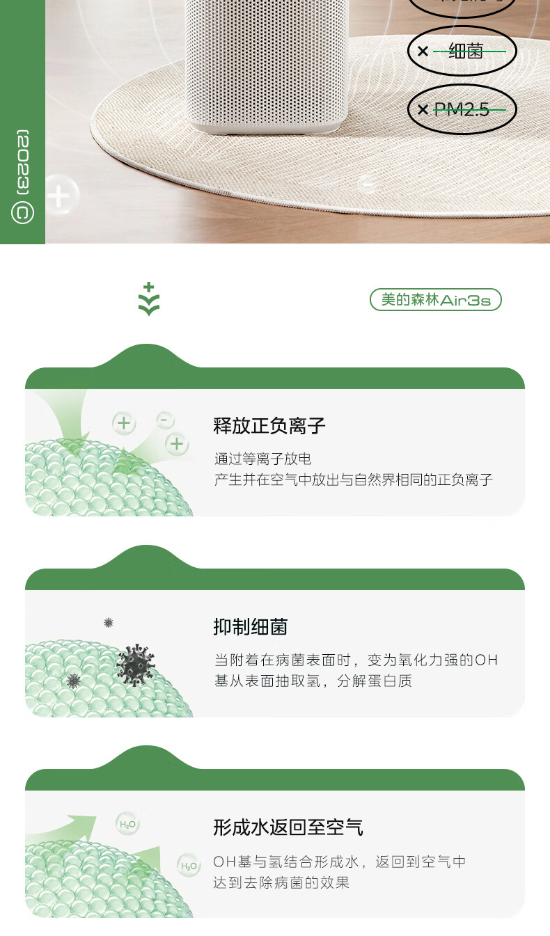 美的(Midea)【六重净化】空气净化器分解甲醛除异味低躁节能家用净化机99.99%病菌去除率空气消毒机KJ500G-L1