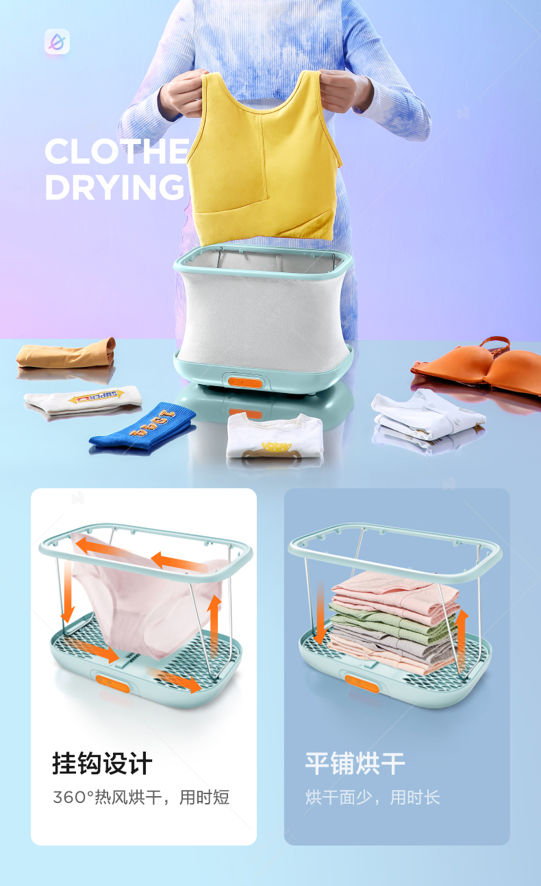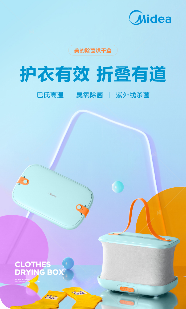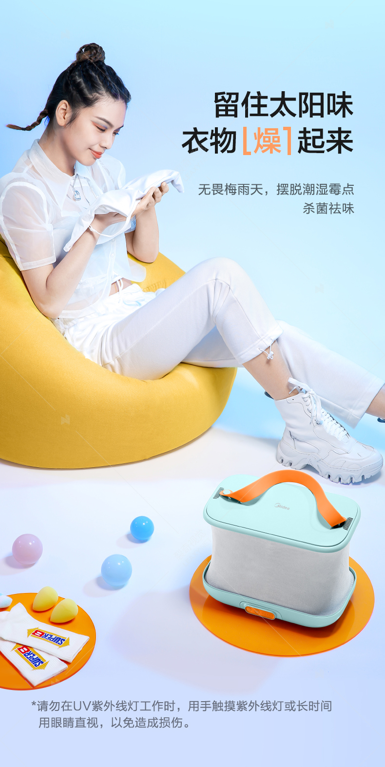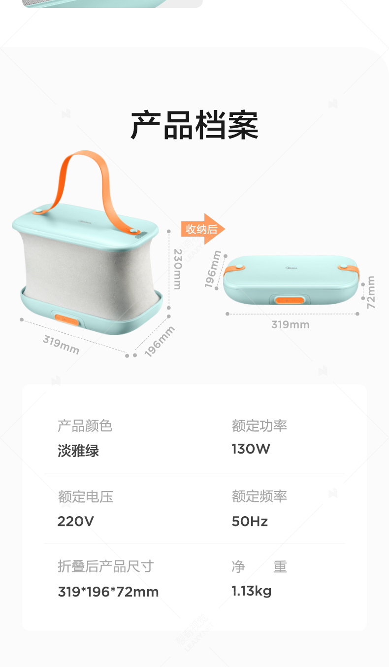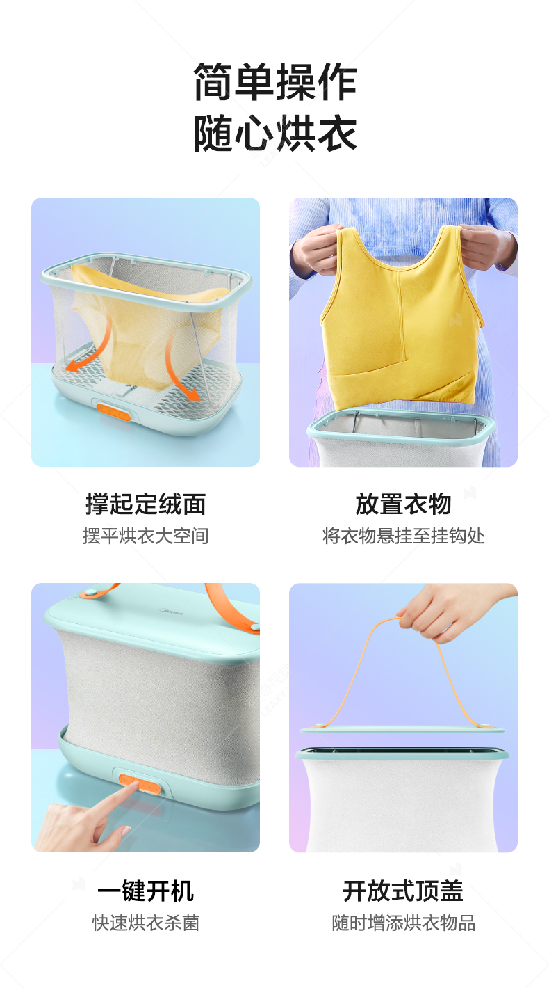 美的(Midea)折叠烘干盒小型家用母婴衣物护理机内衣内裤除菌烘干机便携紫外线干衣盒MH-DB01