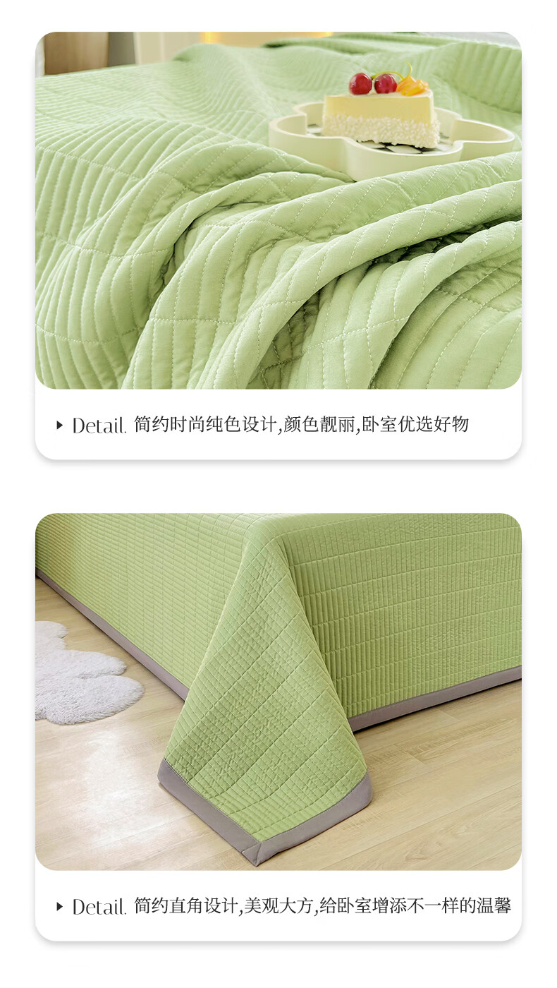 洁丽雅(Grace)夹棉床盖床单单件加厚单人韩版花边款双人小清新床罩 200*230cm绿