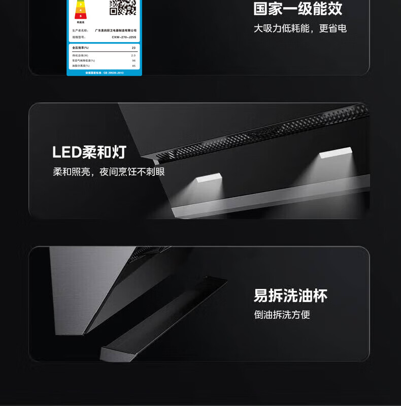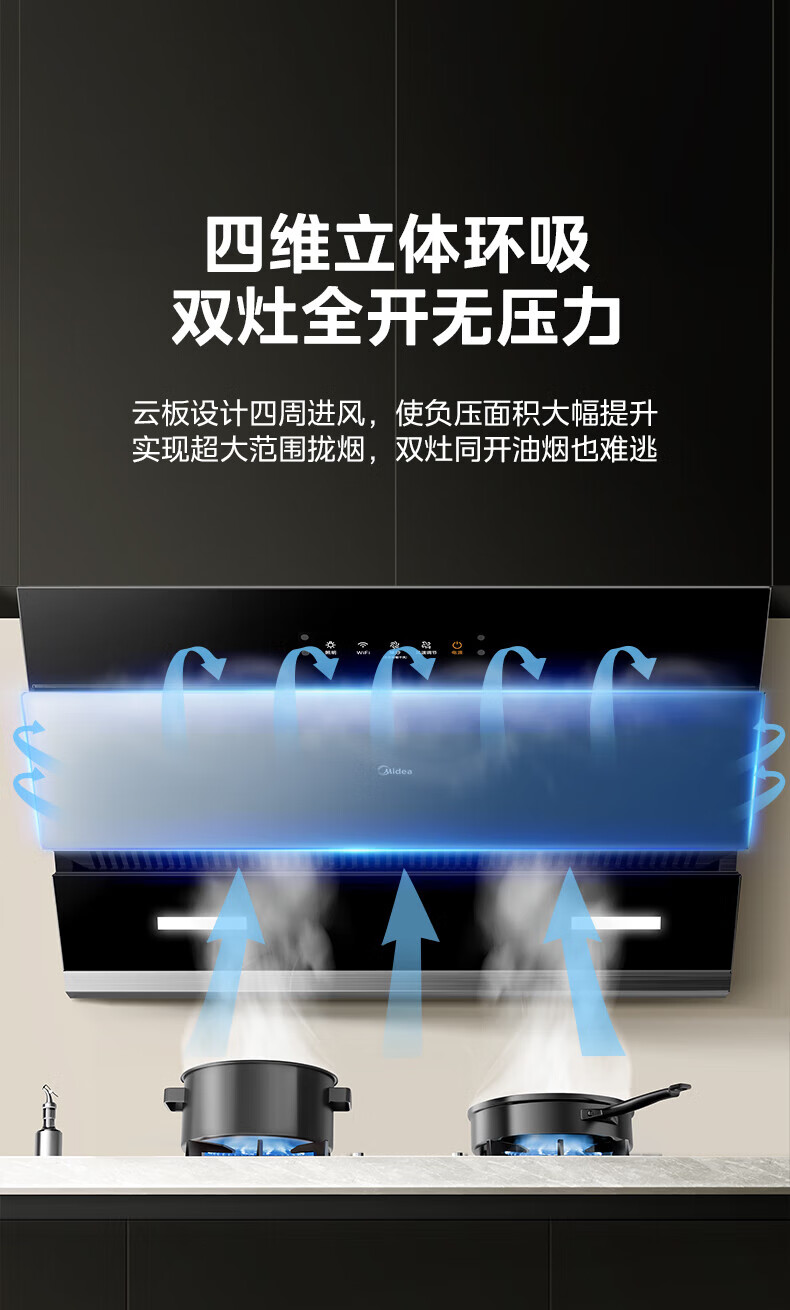 美的(Midea)抽油烟机侧吸式家用厨房油烟机大吸力吸油烟机CXW-270-J25S