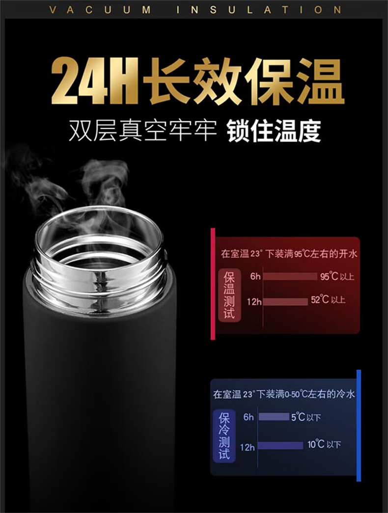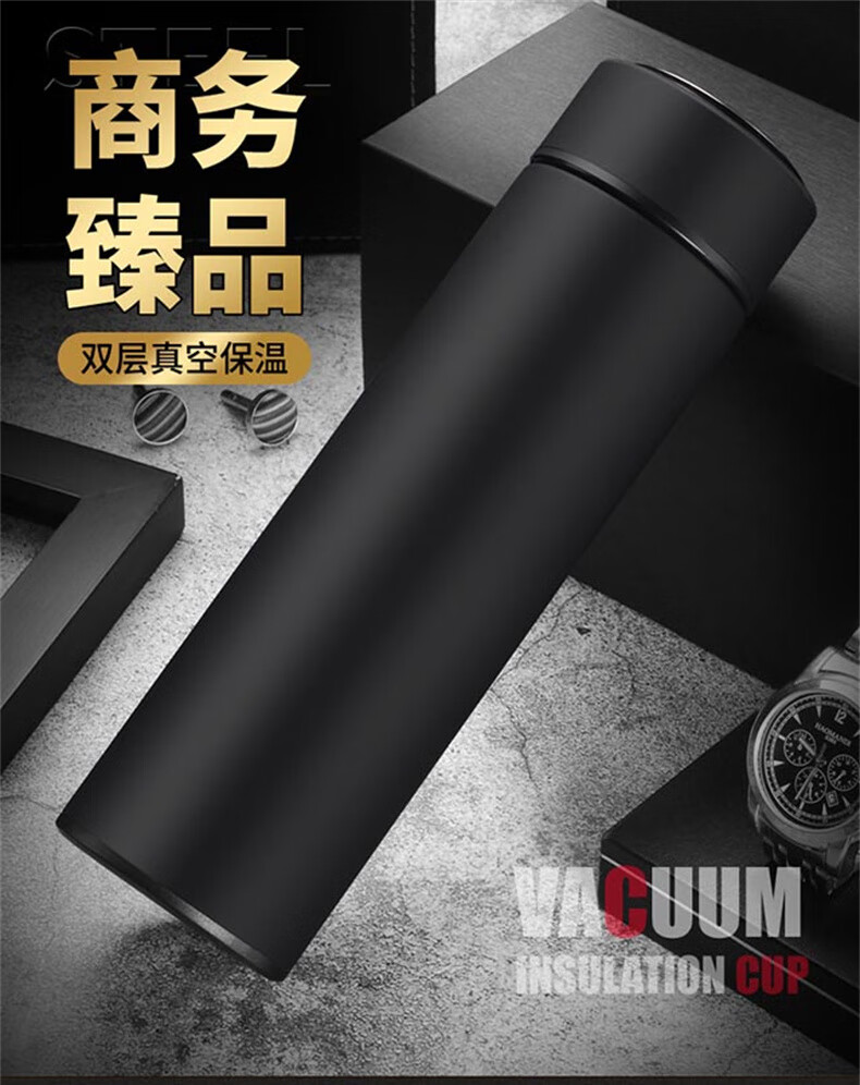 得力8978玻璃杯(黑)320ml盖子锌合金氧化