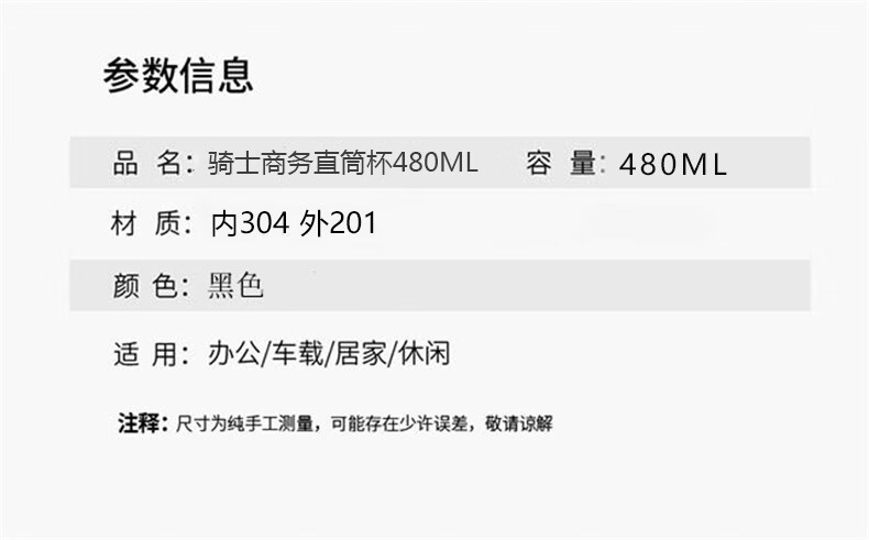 艾逸瑶选 骑士商务直筒杯480ML CJ-21046