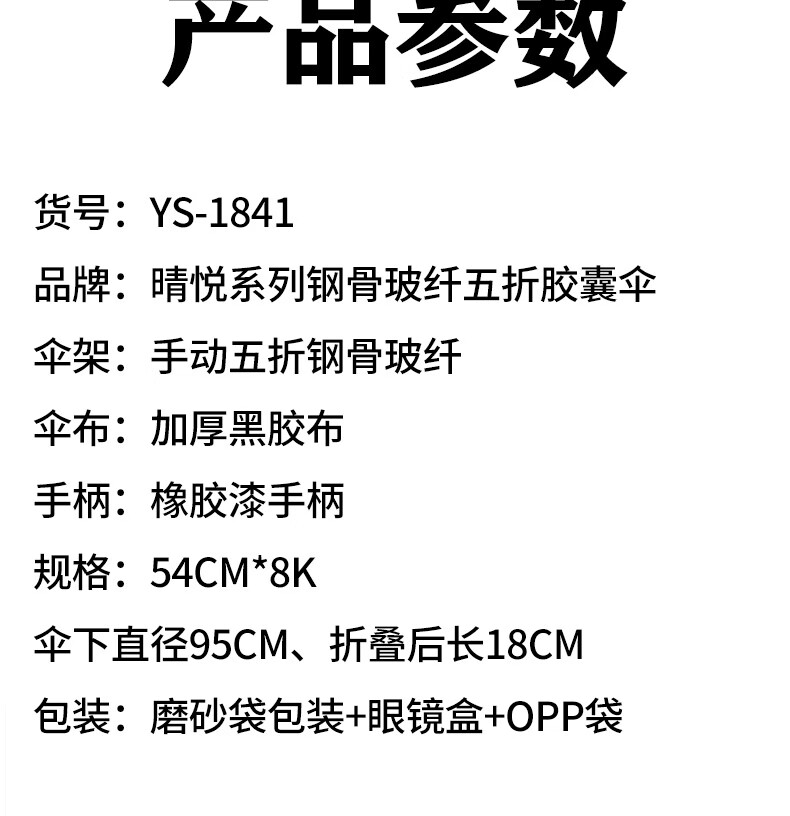 艾逸瑶选 晴悦系列钢骨玻纤五折胶囊伞 YS-1841