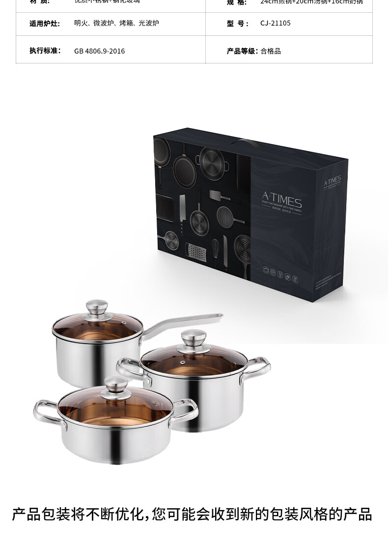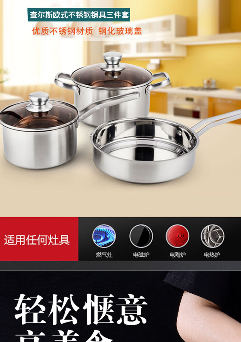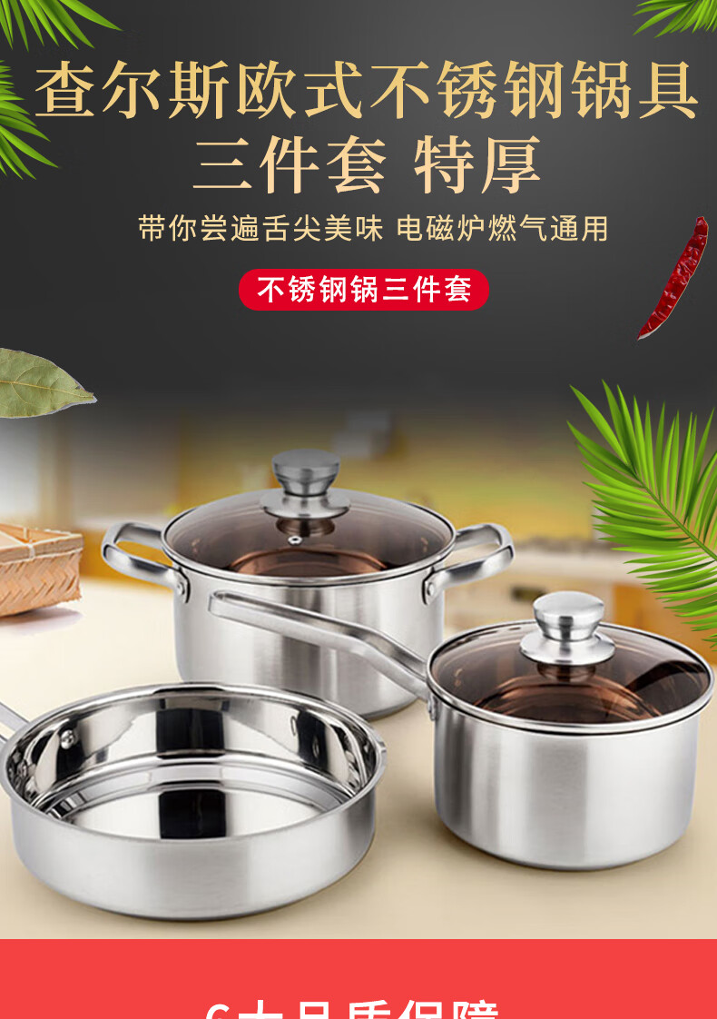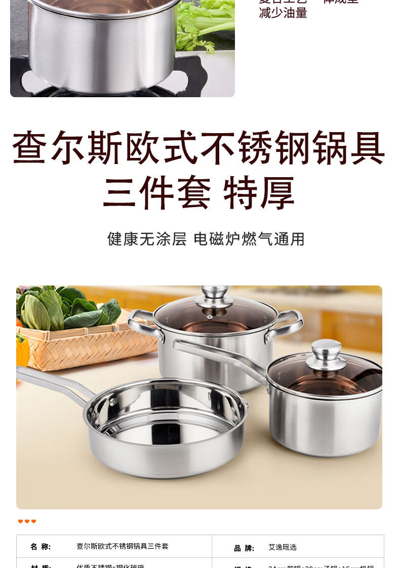 艾逸瑶选 查尔斯欧式不锈钢锅具三件套 特厚CJ-21105