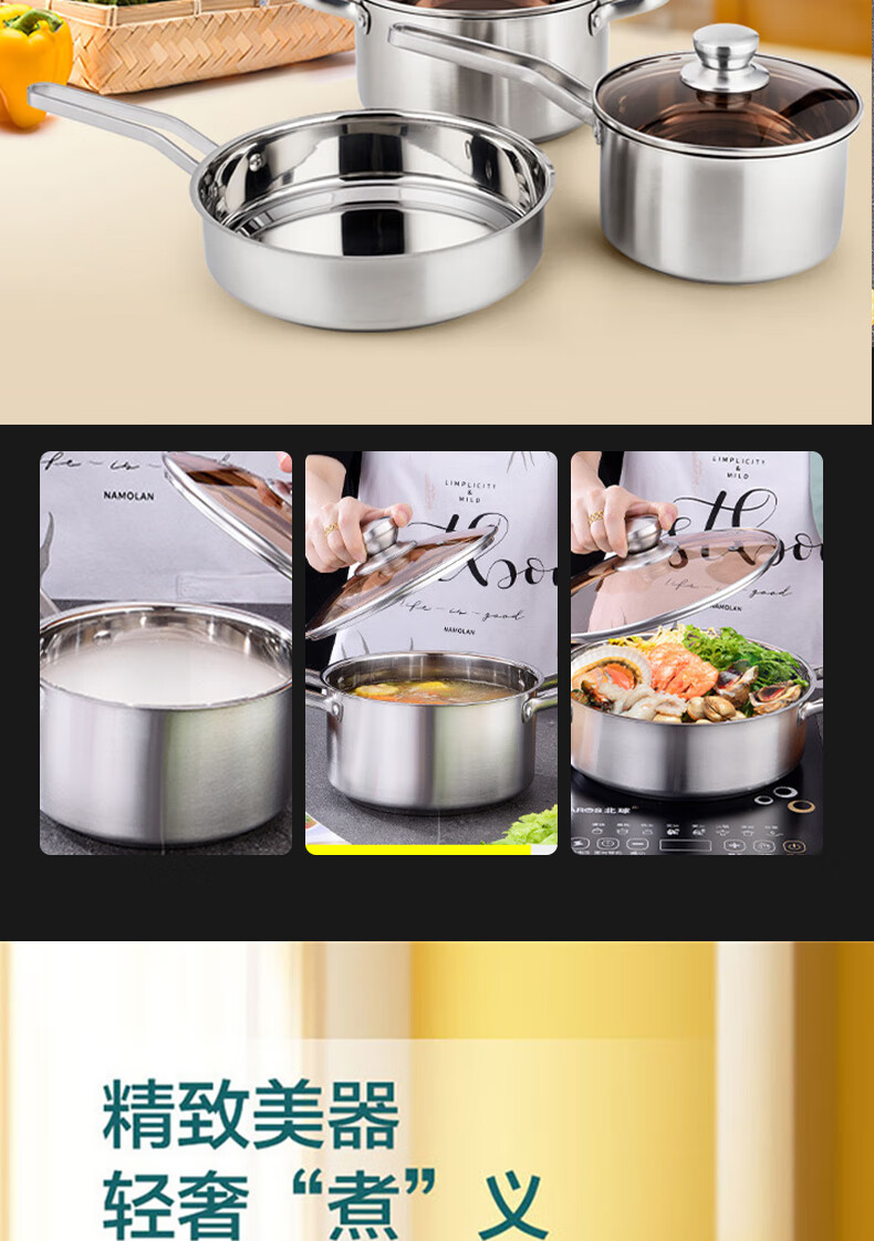 艾逸瑶选 查尔斯欧式不锈钢锅具...