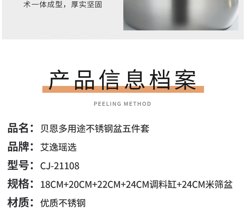 艾逸瑶选 贝恩多用途不锈钢盆五件套CJ-21108