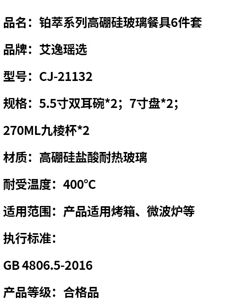 艾逸瑶选 铂萃系列高硼硅玻璃餐具6件套CJ-21132