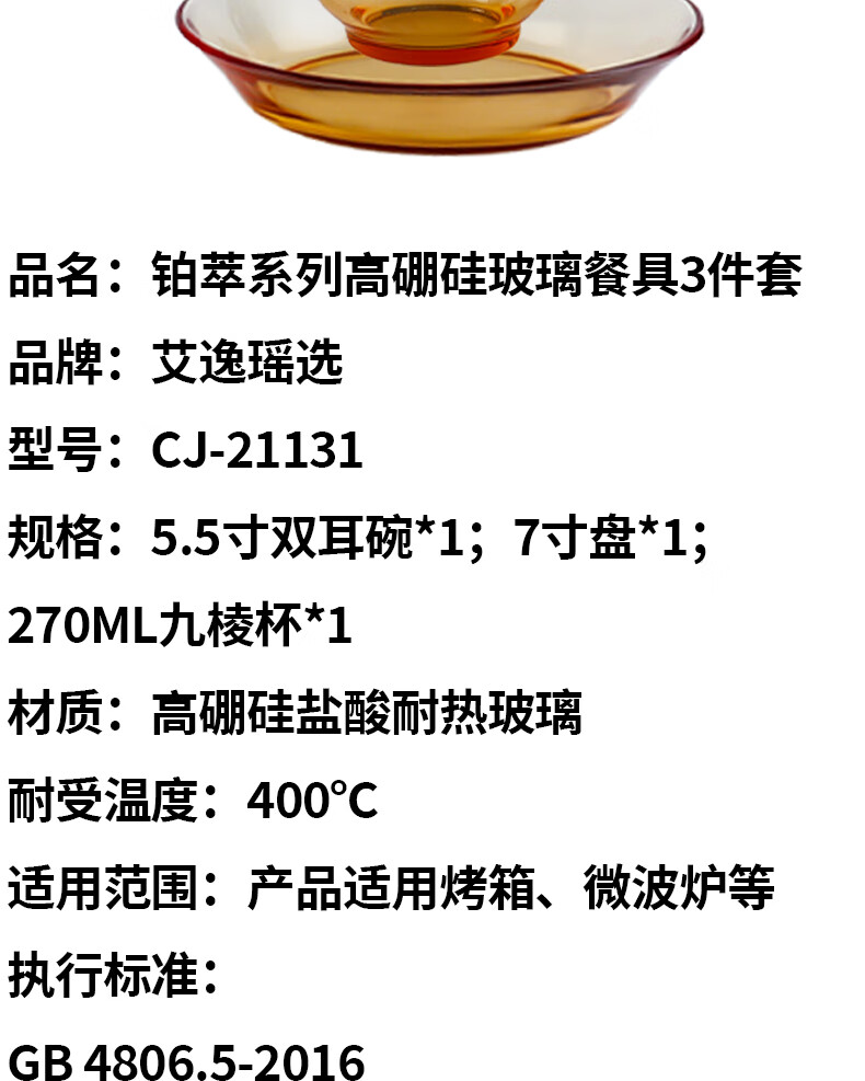 艾逸瑶选 铂萃系列高硼硅玻璃餐具3件套CJ-21131