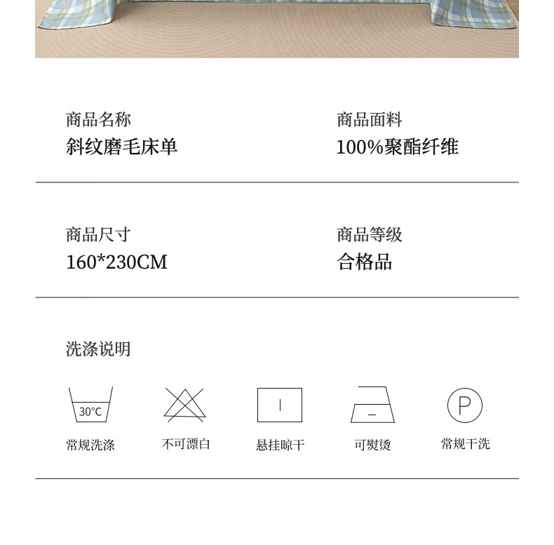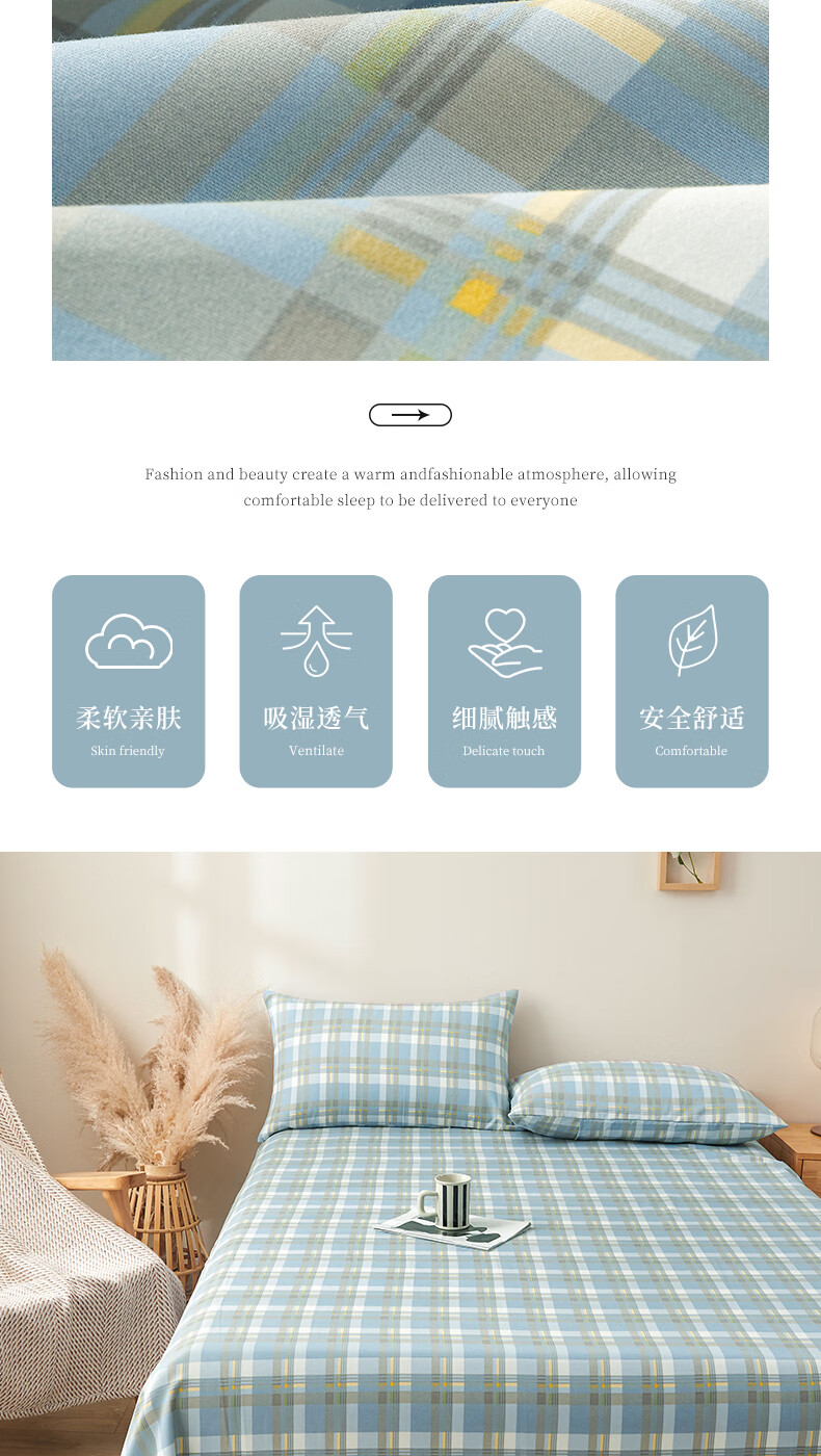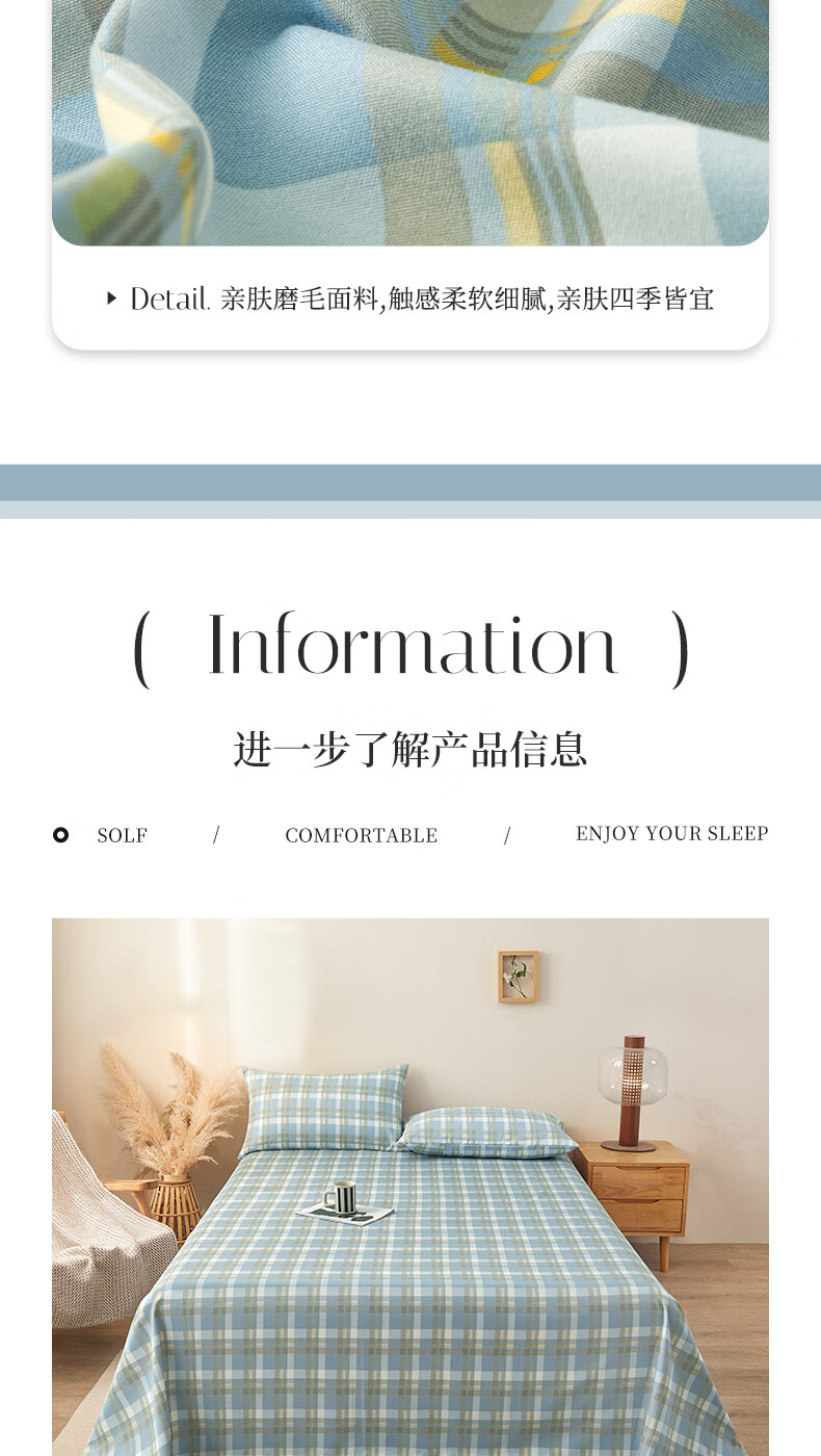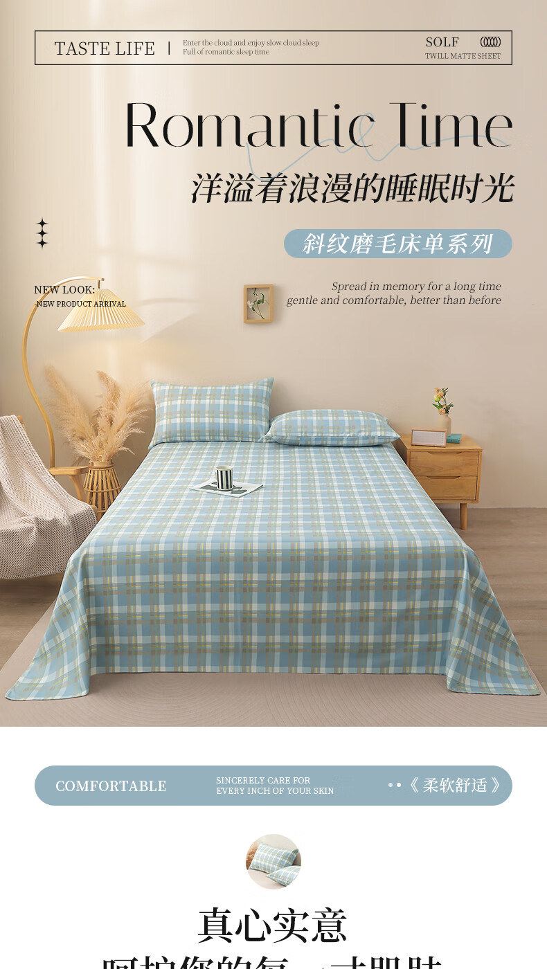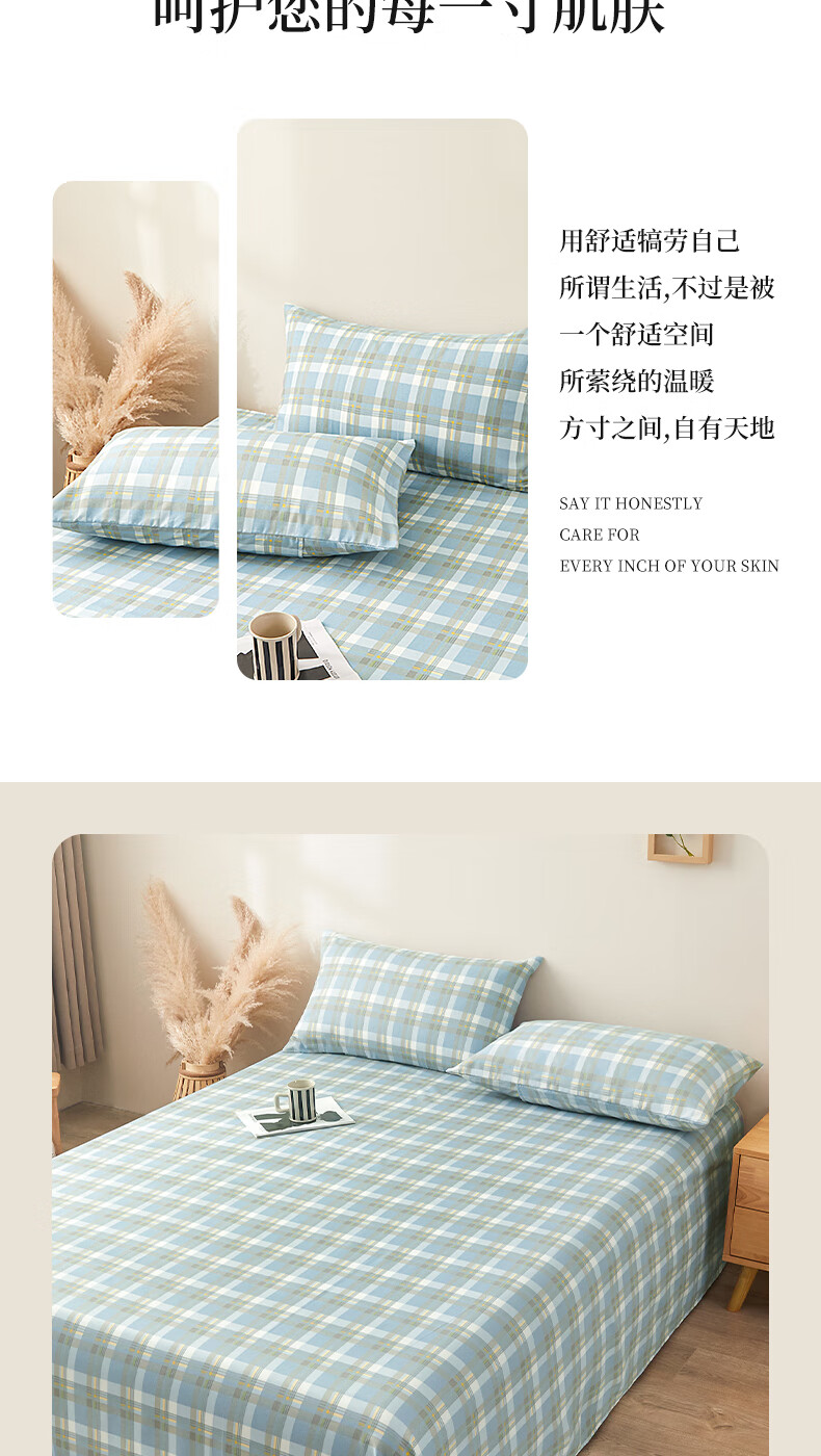 洁丽雅(Grace)床单单件 亲肤柔软双人家用学生宿舍床单1米/1.2米床 160*230cm