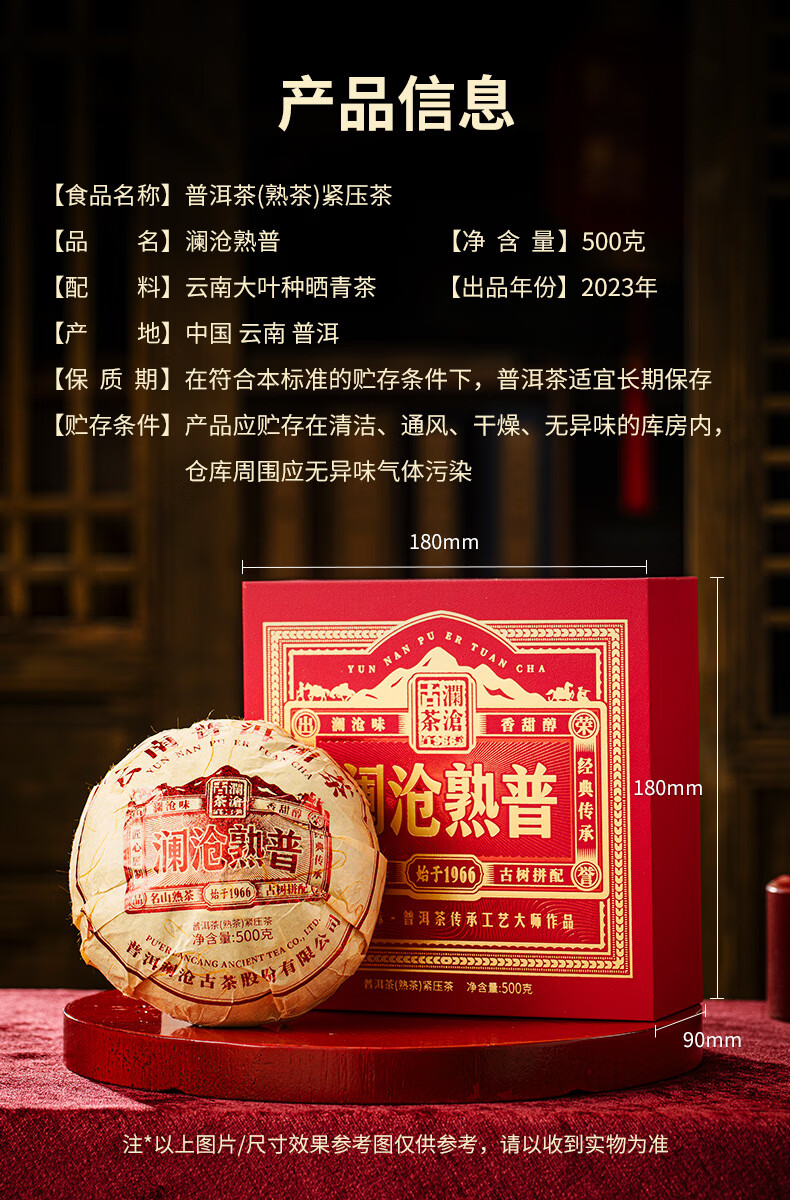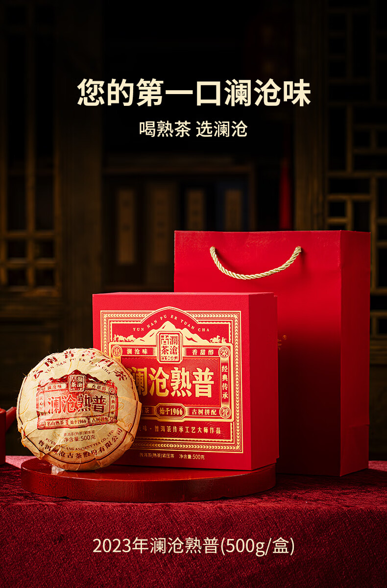 澜沧古茶叶普洱熟茶 2023年云南普洱澜沧熟普瓜茶礼盒装500g