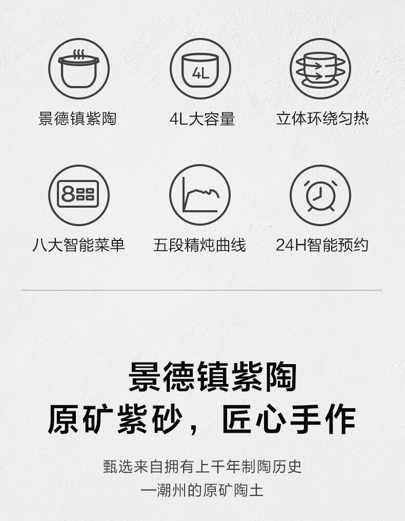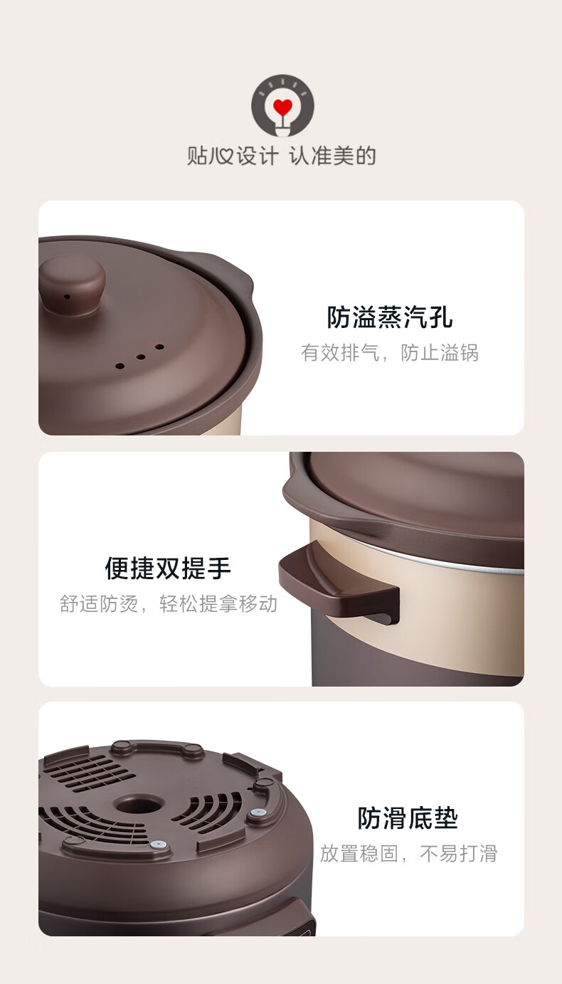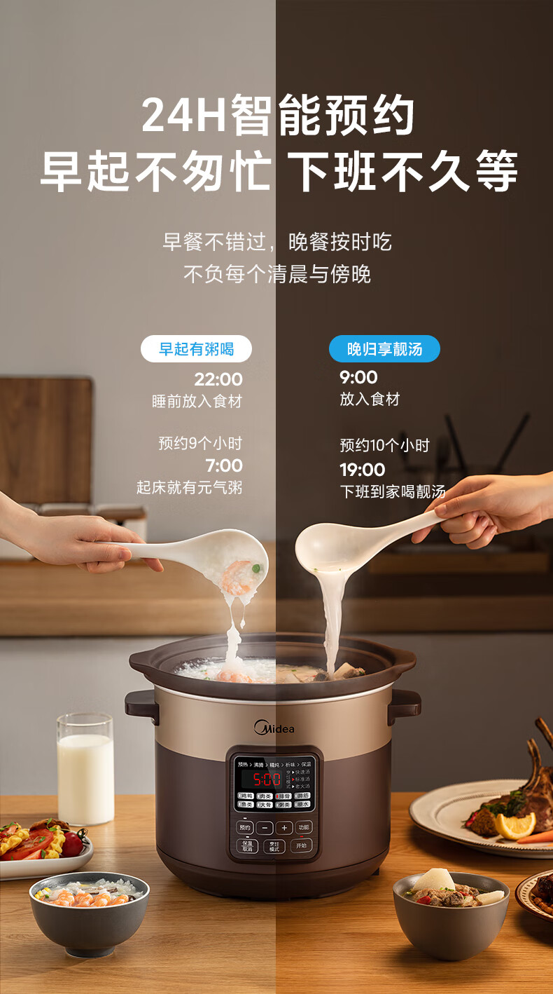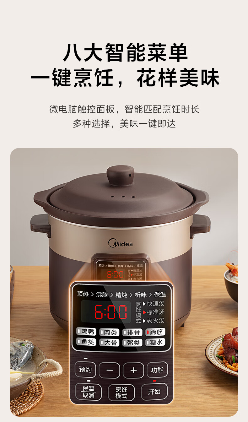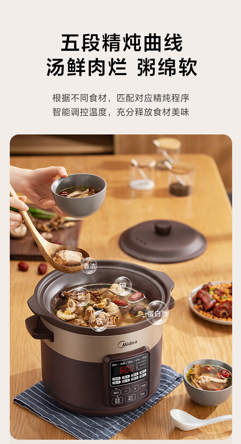 美的(Midea)电炖锅 电炖盅 煲汤锅炖汤锅 电砂锅 煮粥锅 紫砂内胆 4升煲汤电炖锅家用智能预约WTGS401
