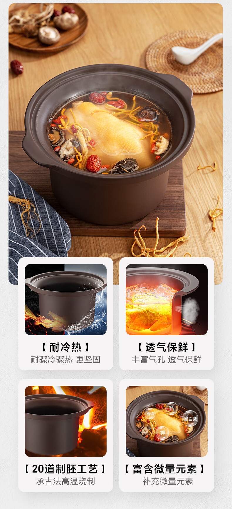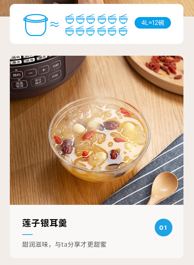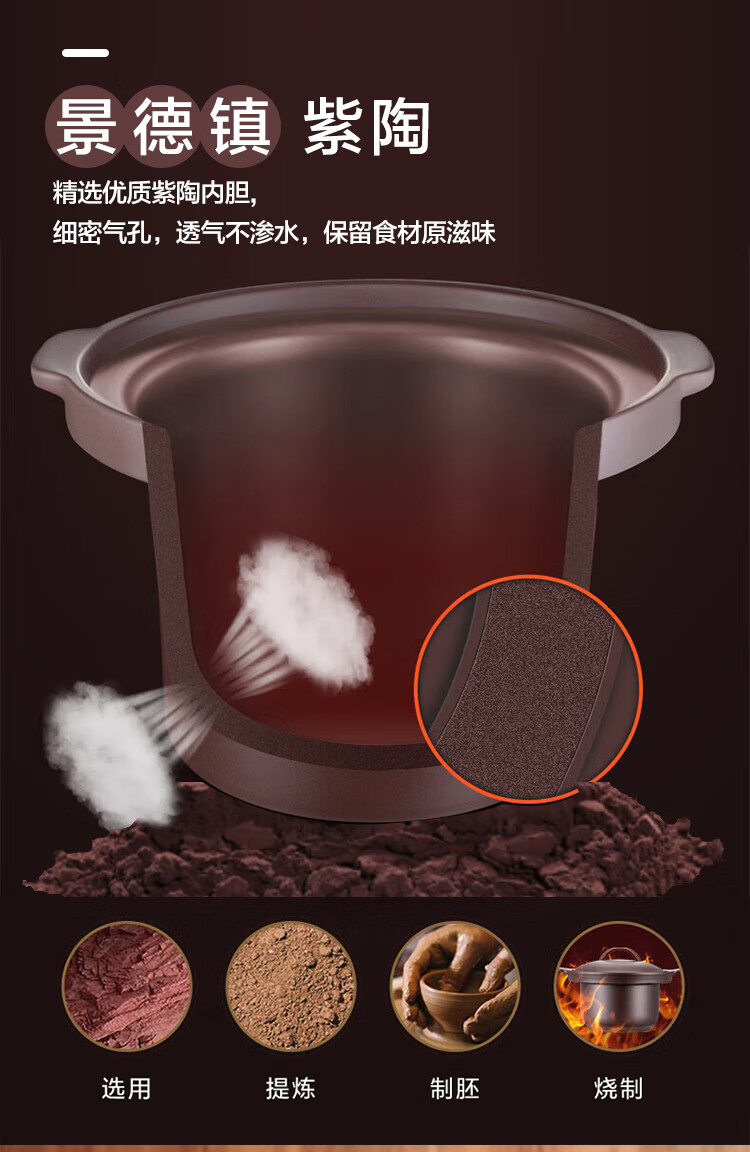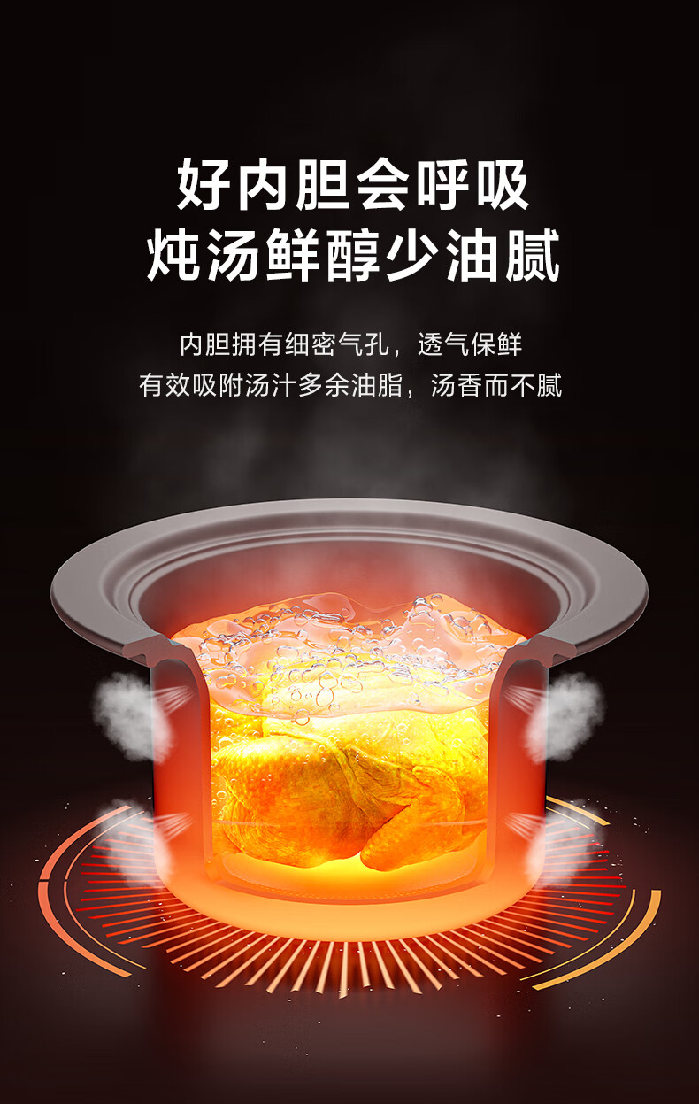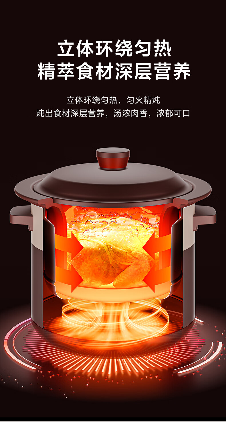 美的(Midea)电炖锅 电炖盅 煲汤锅炖汤锅 电砂锅 煮粥锅 紫砂内胆 4升煲汤电炖锅家用智能预约WTGS401