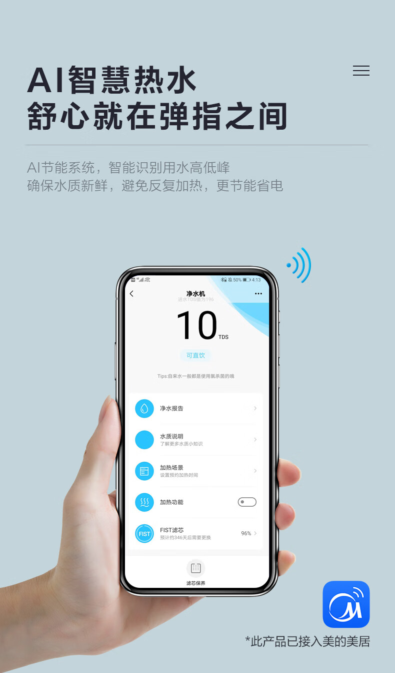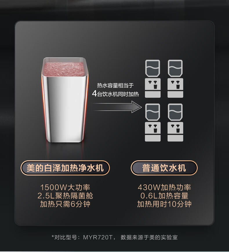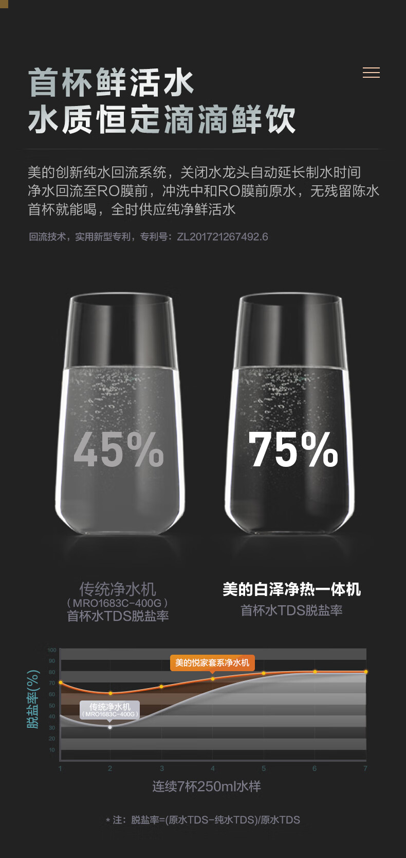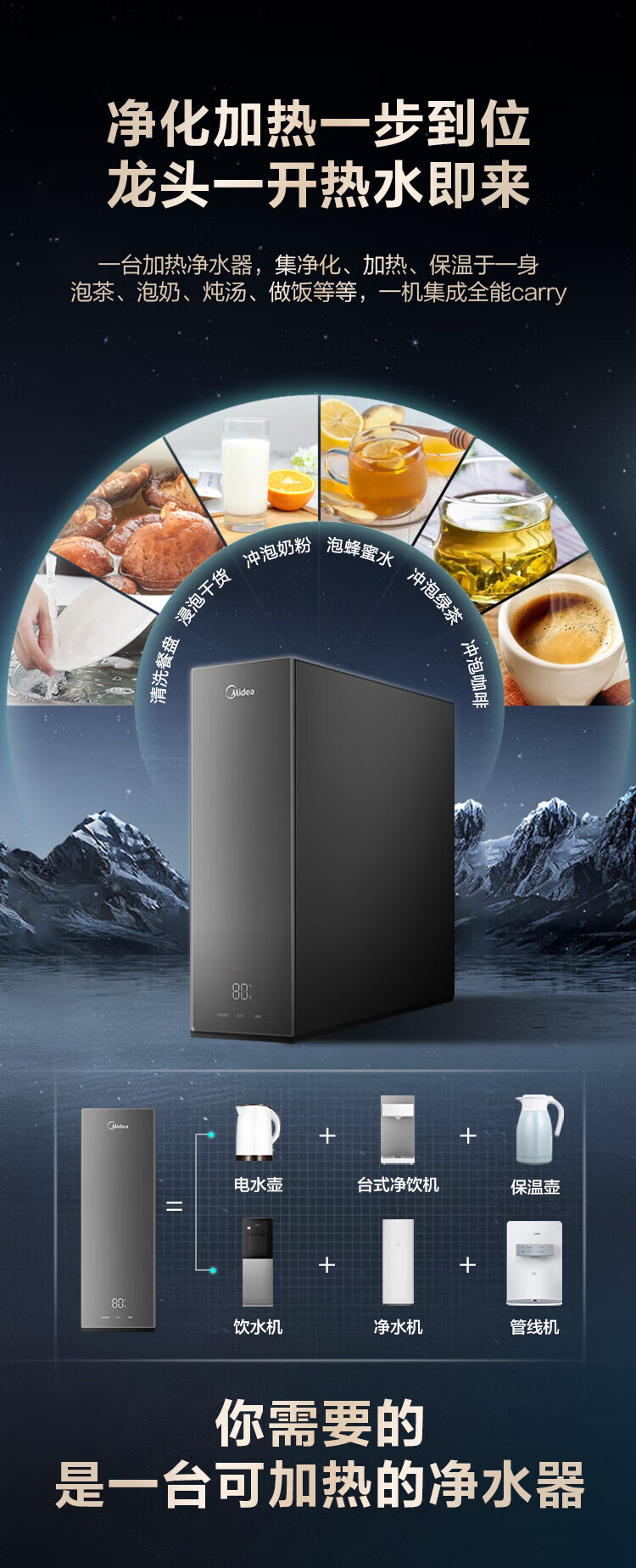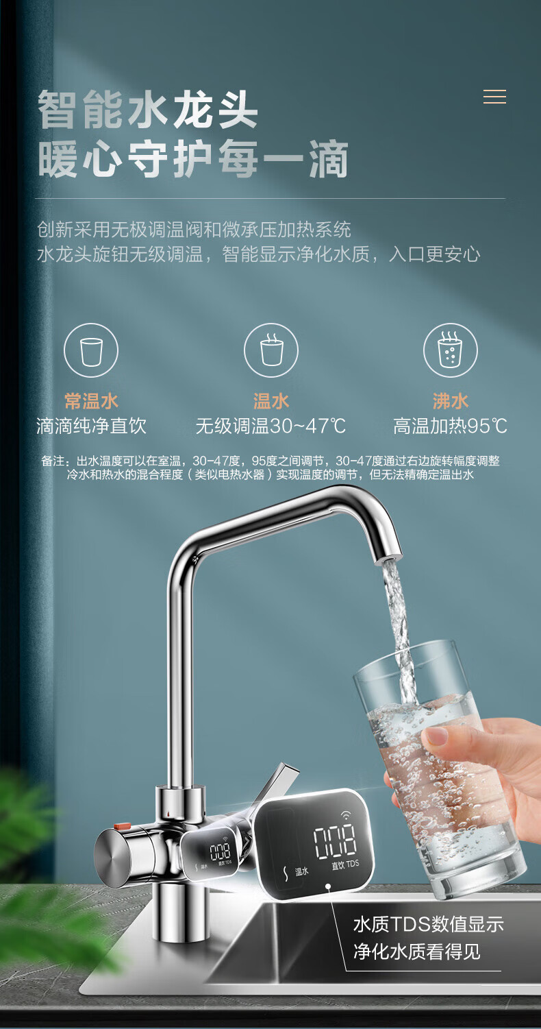 美的(Midea)白泽600G加热净水器 无级调温TDS数显 热水流速1.5L/min 家用直饮厨下即热净饮一体机 MRO635-R