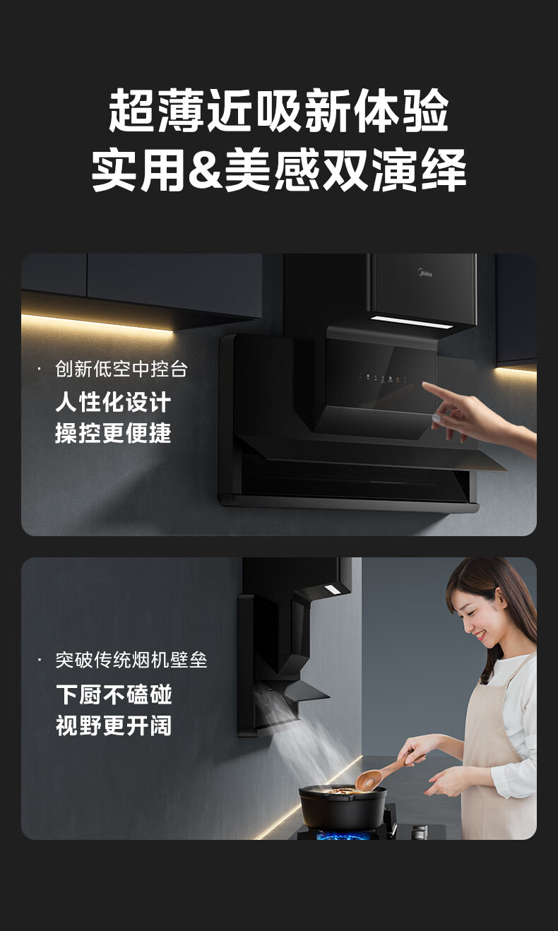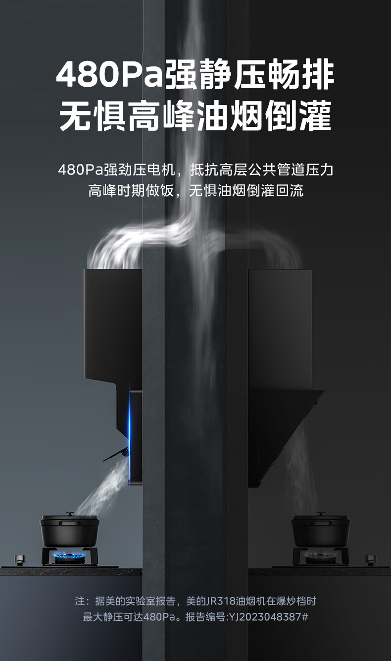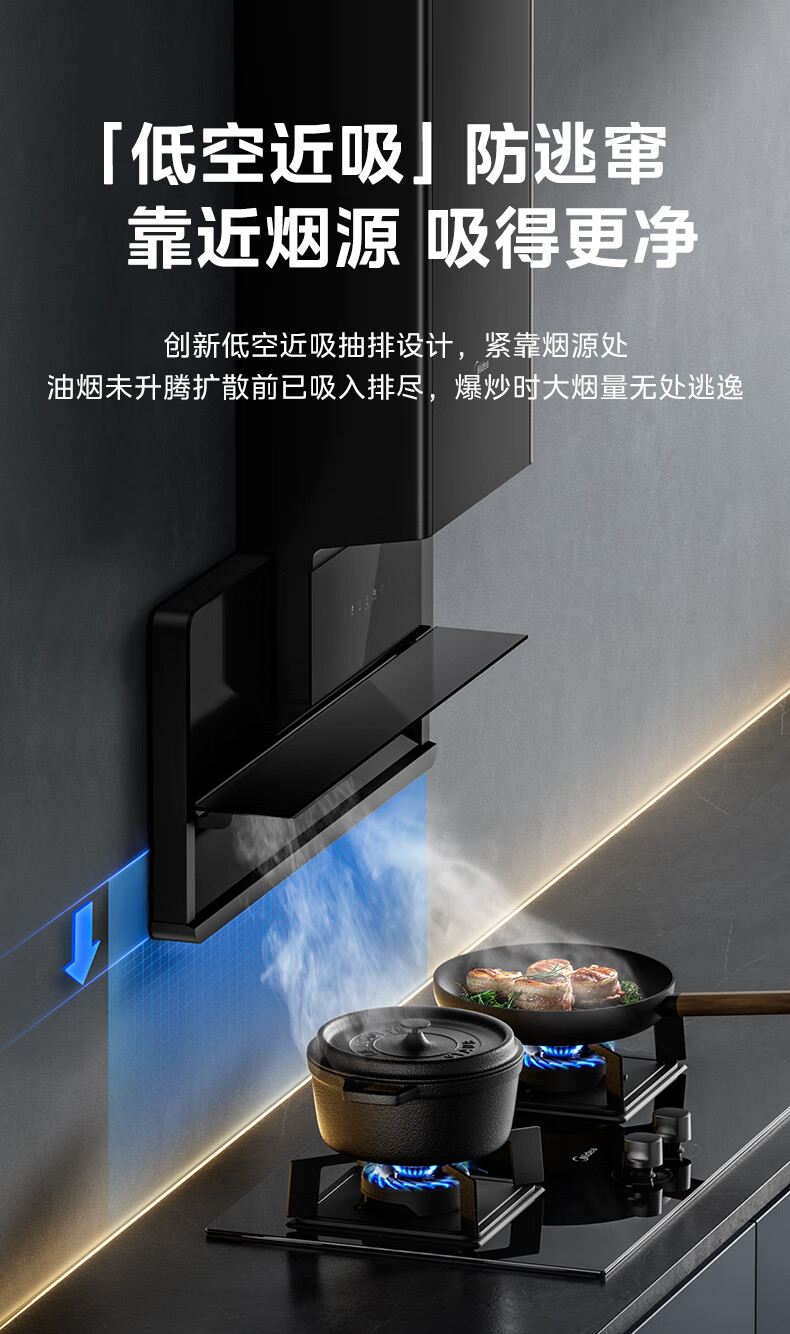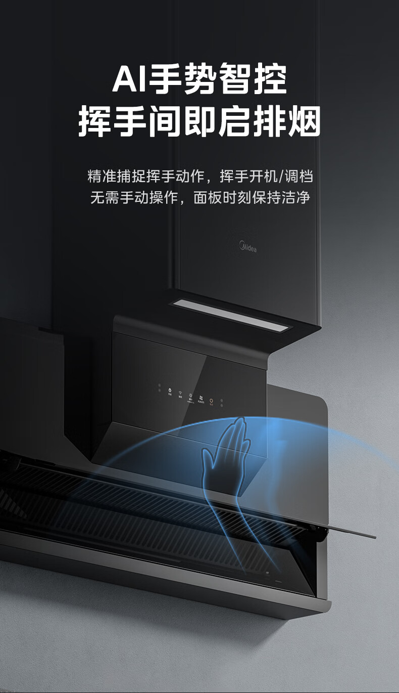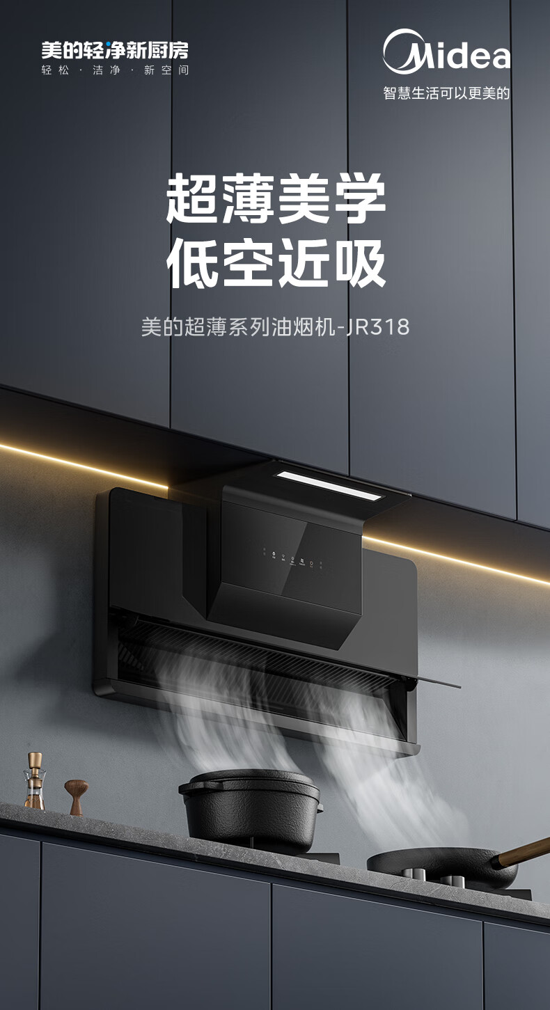 美的(Midea)抽油烟机燃气灶 家用侧吸23风量大吸力 超薄近吸挥手智控自清洗烟灶套装JR318+Q330天然气