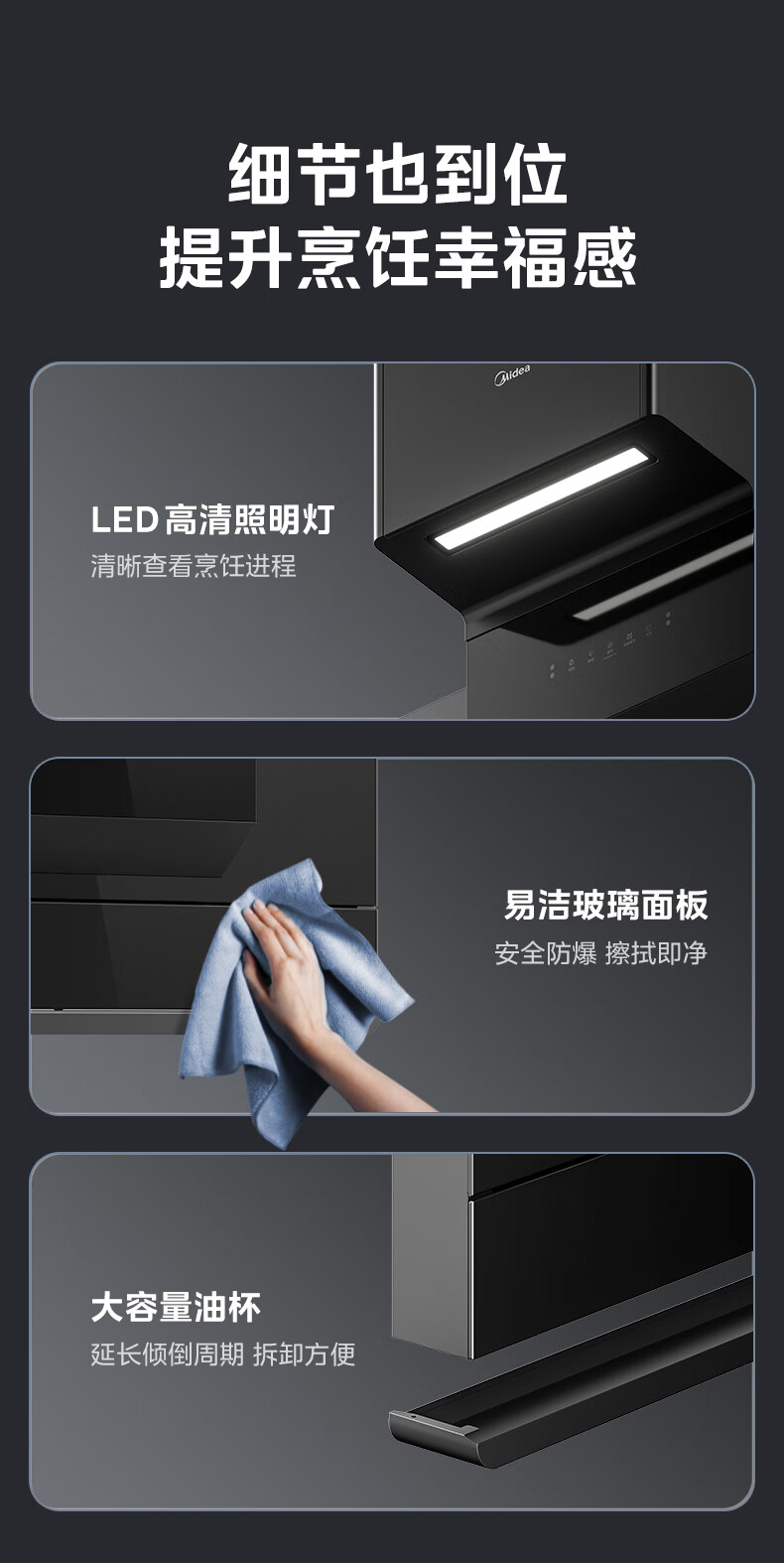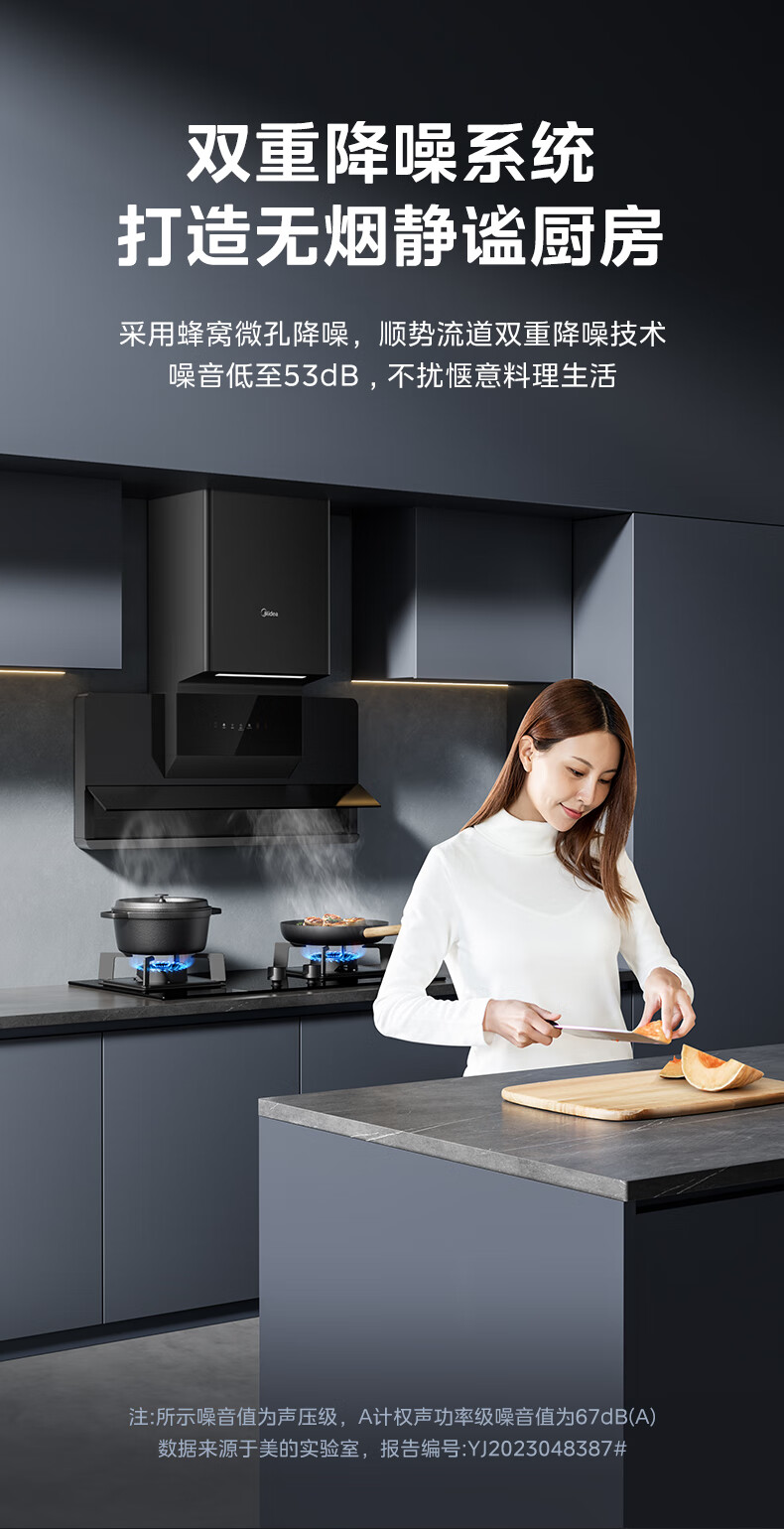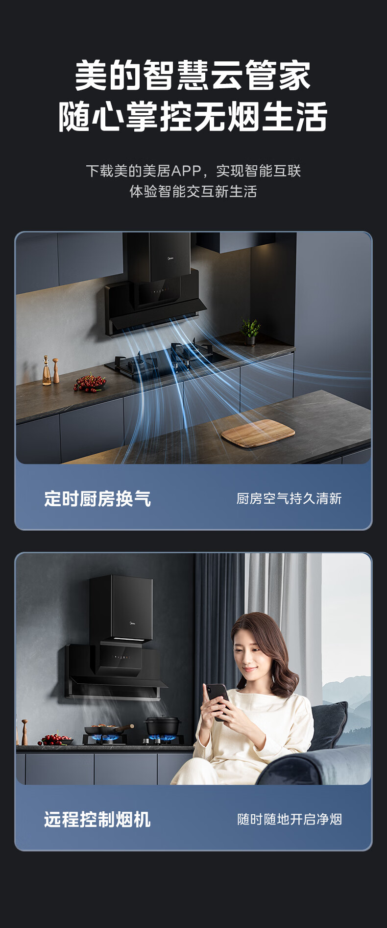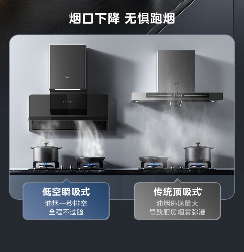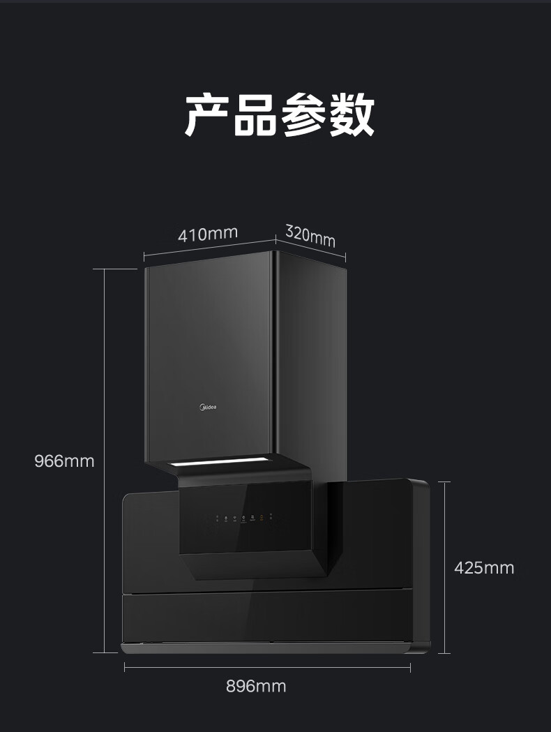 美的(Midea)抽油烟机燃气灶 家用侧吸23风量大吸力 超薄近吸挥手智控自清洗烟灶套装JR318+Q330天然气