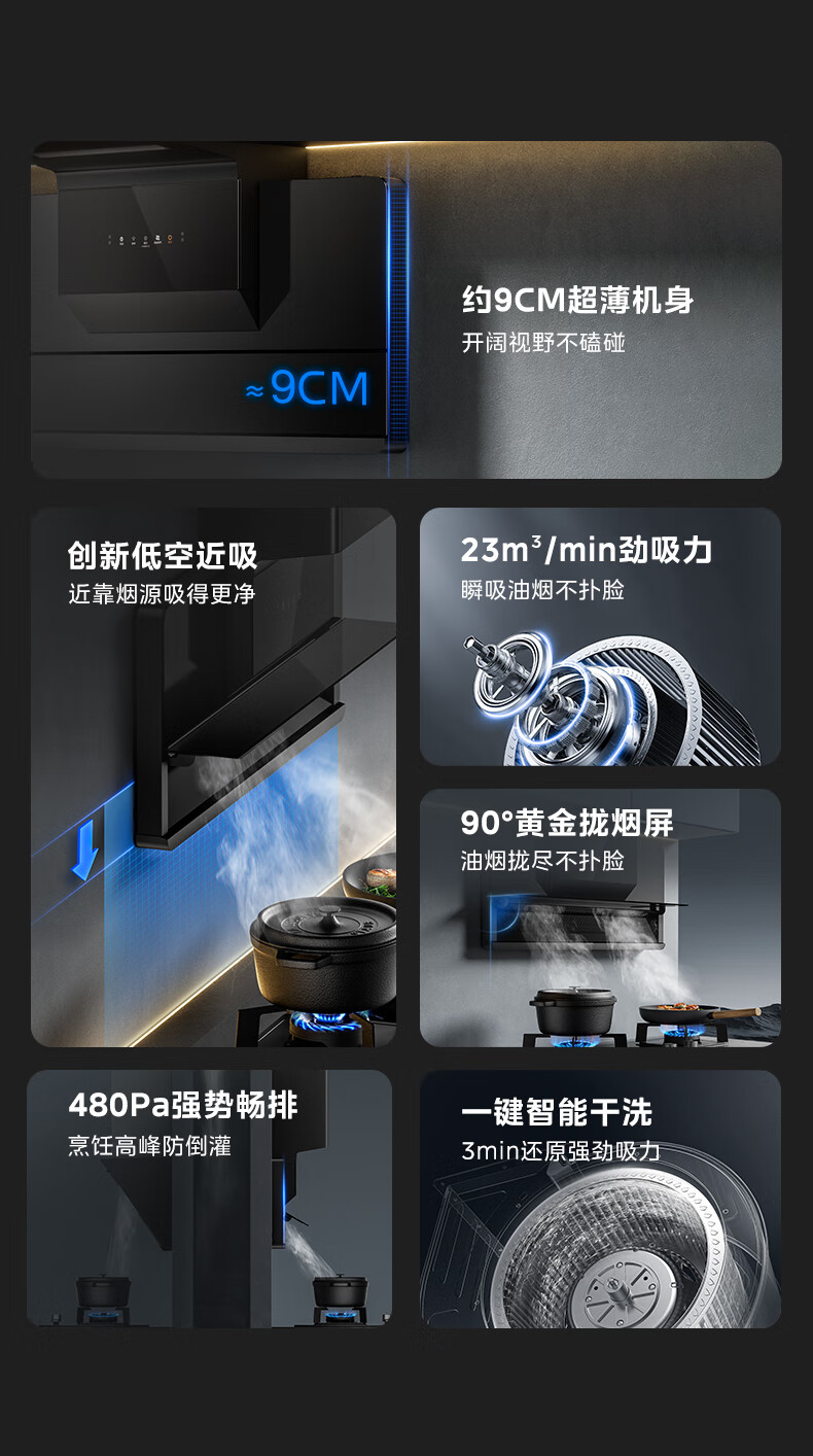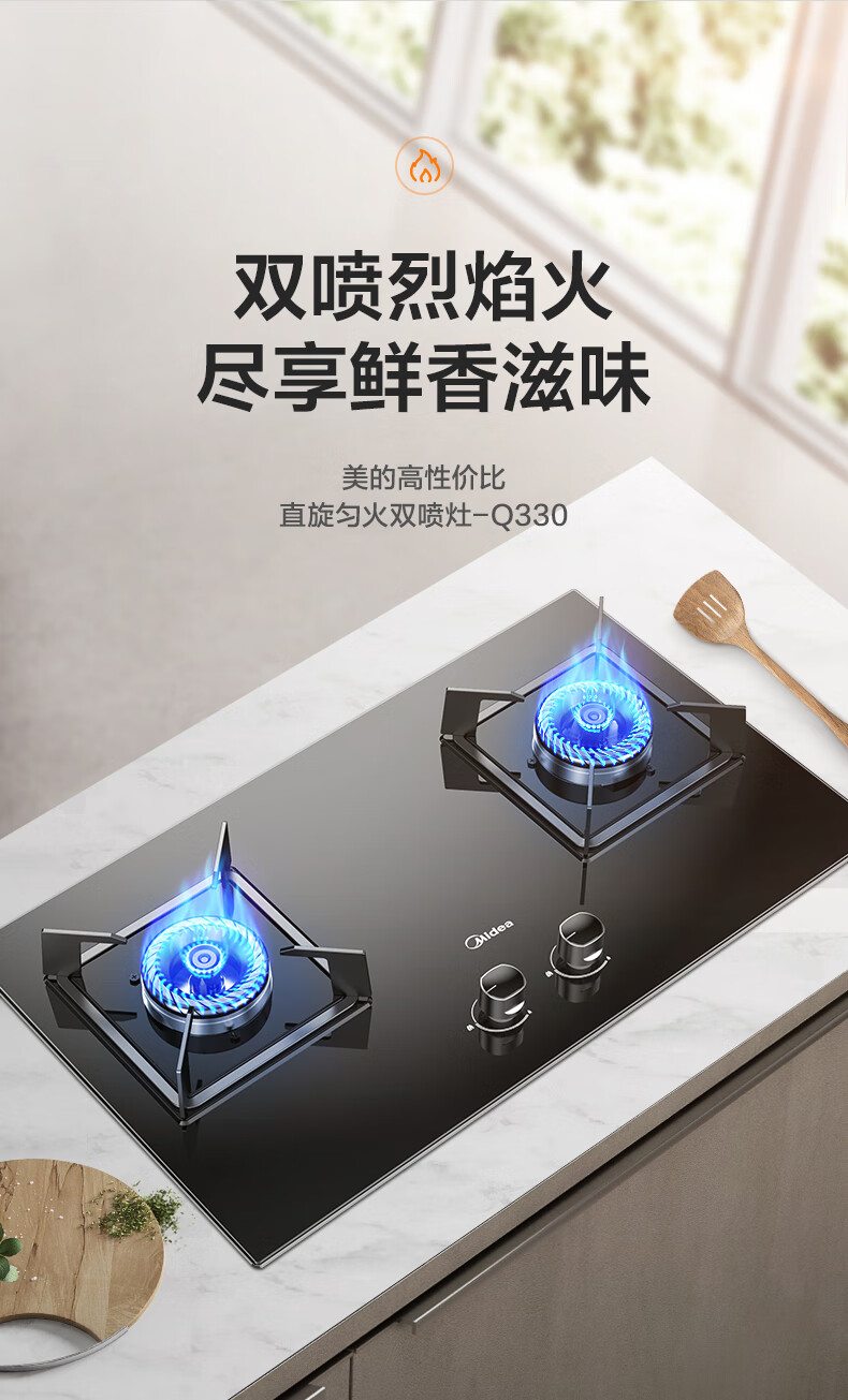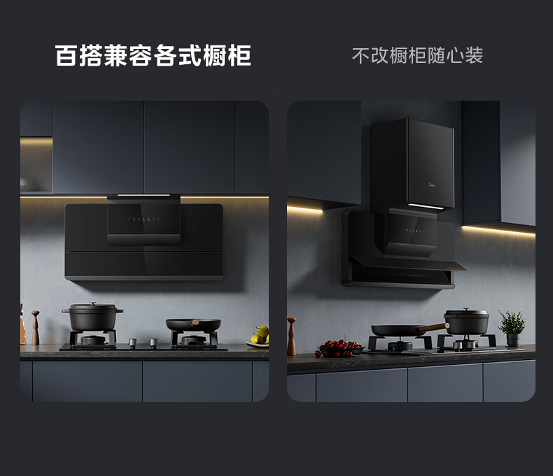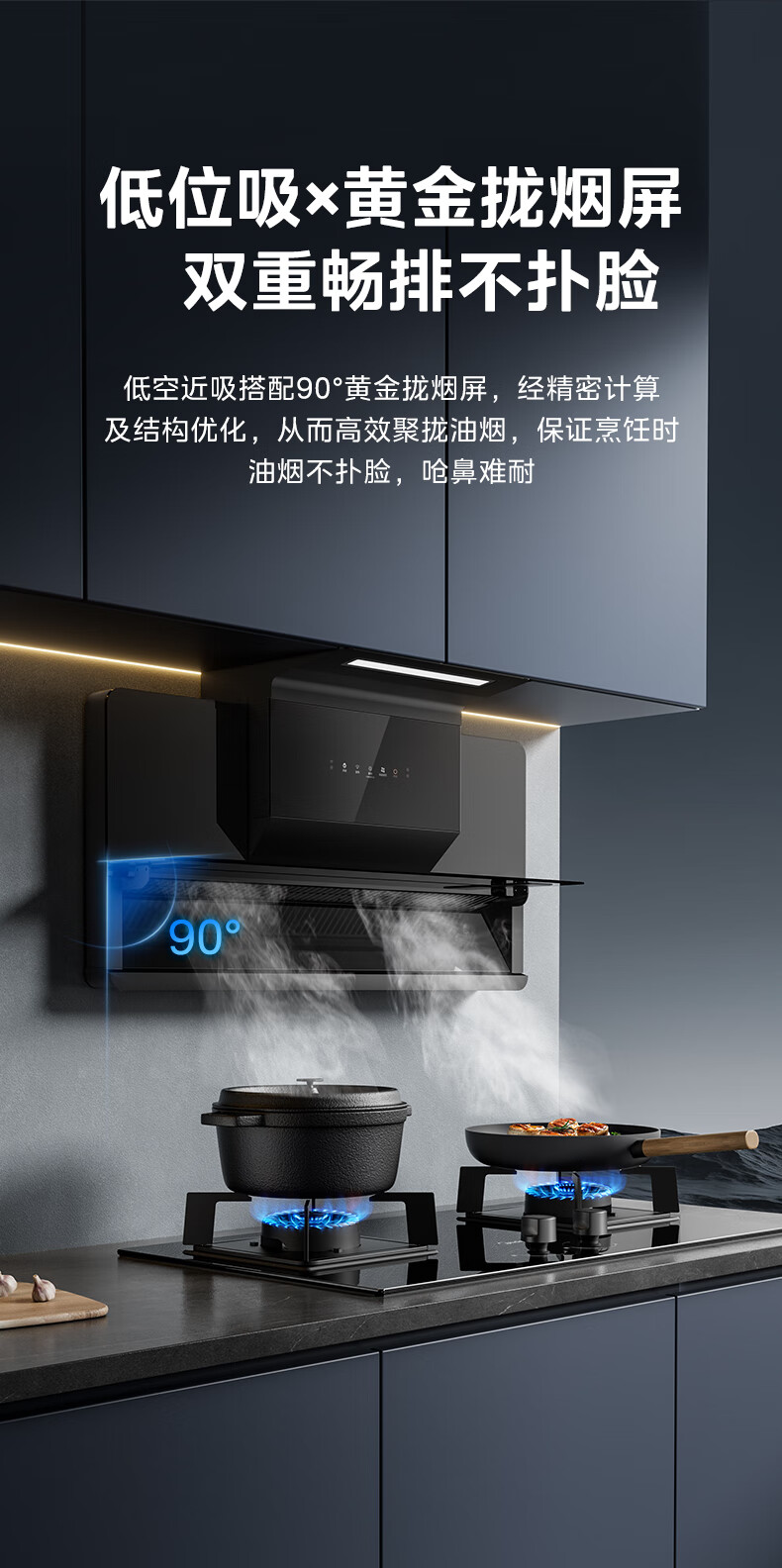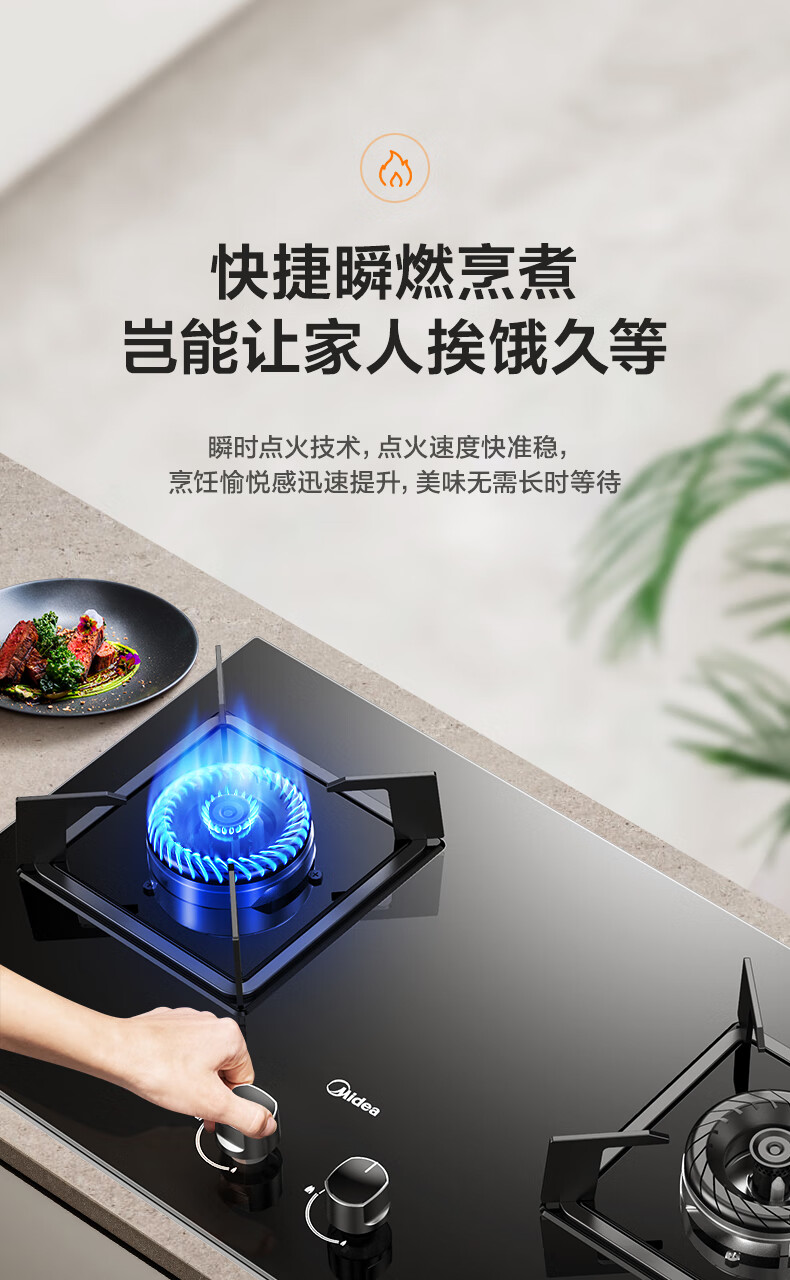 美的(Midea)抽油烟机燃气灶 家用侧吸23风量大吸力 超薄近吸挥手智控自清洗烟灶套装JR318+Q330天然气