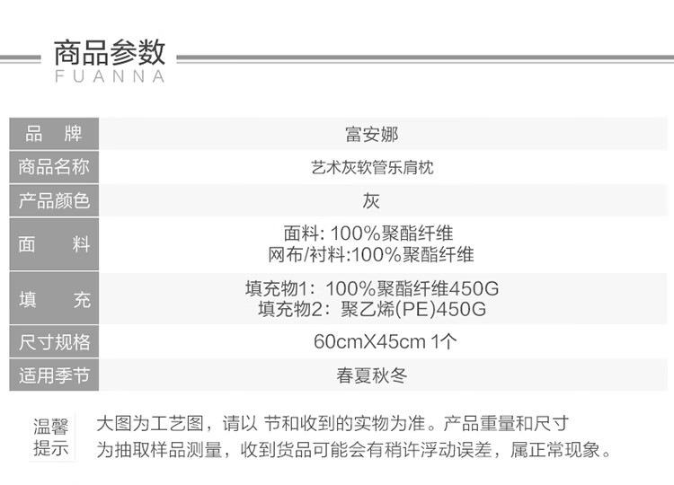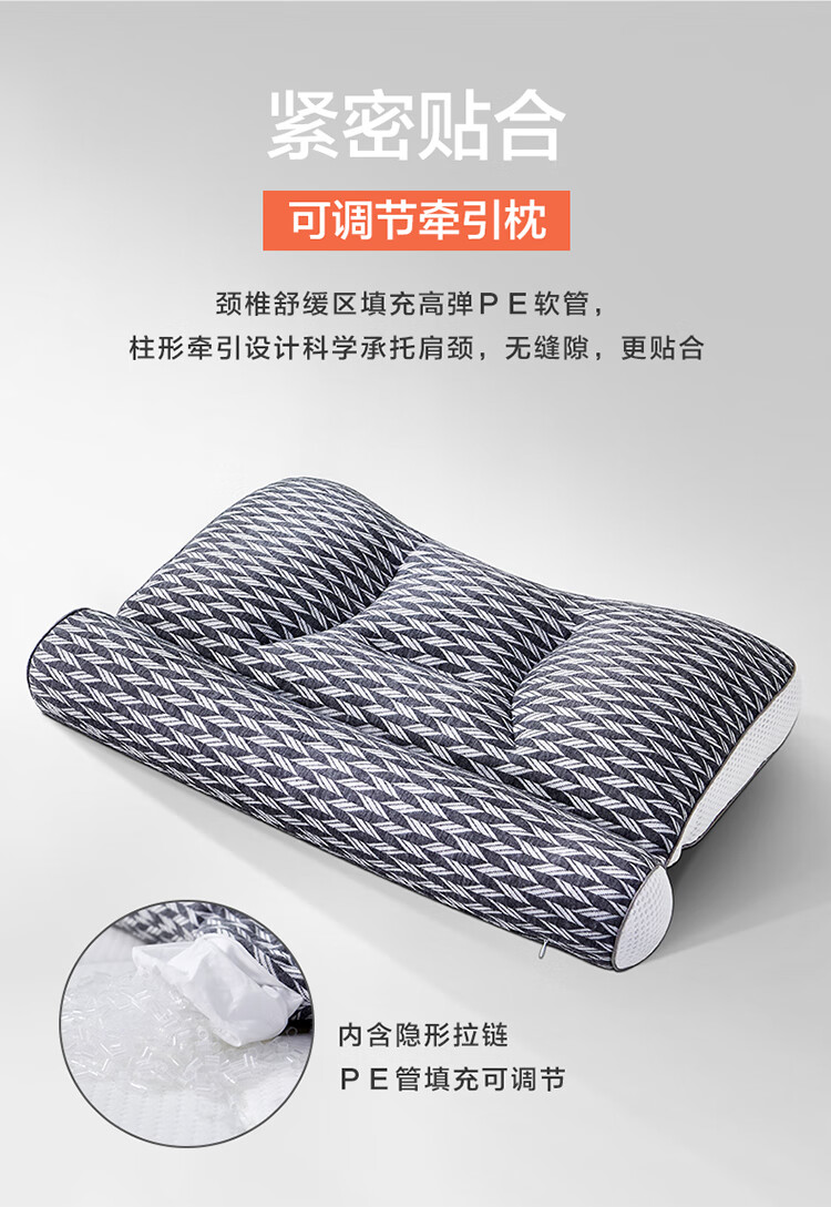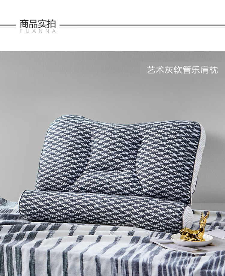 富安娜家纺枕头 牵引枕护颈枕芯软管枕成人颈椎枕单个装60*45cm灰