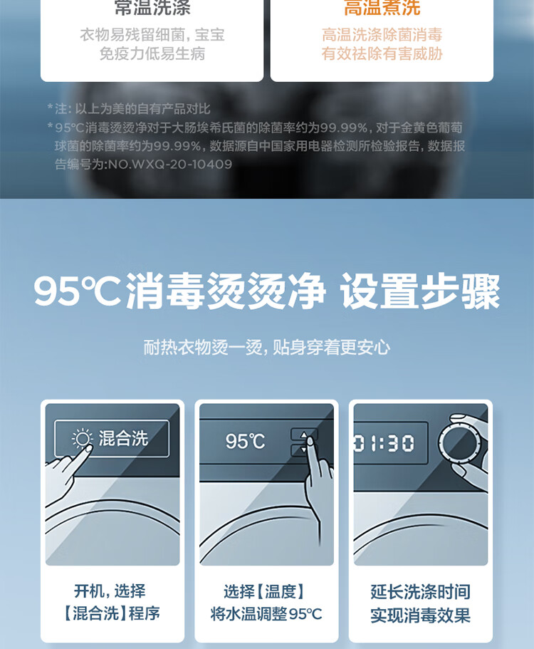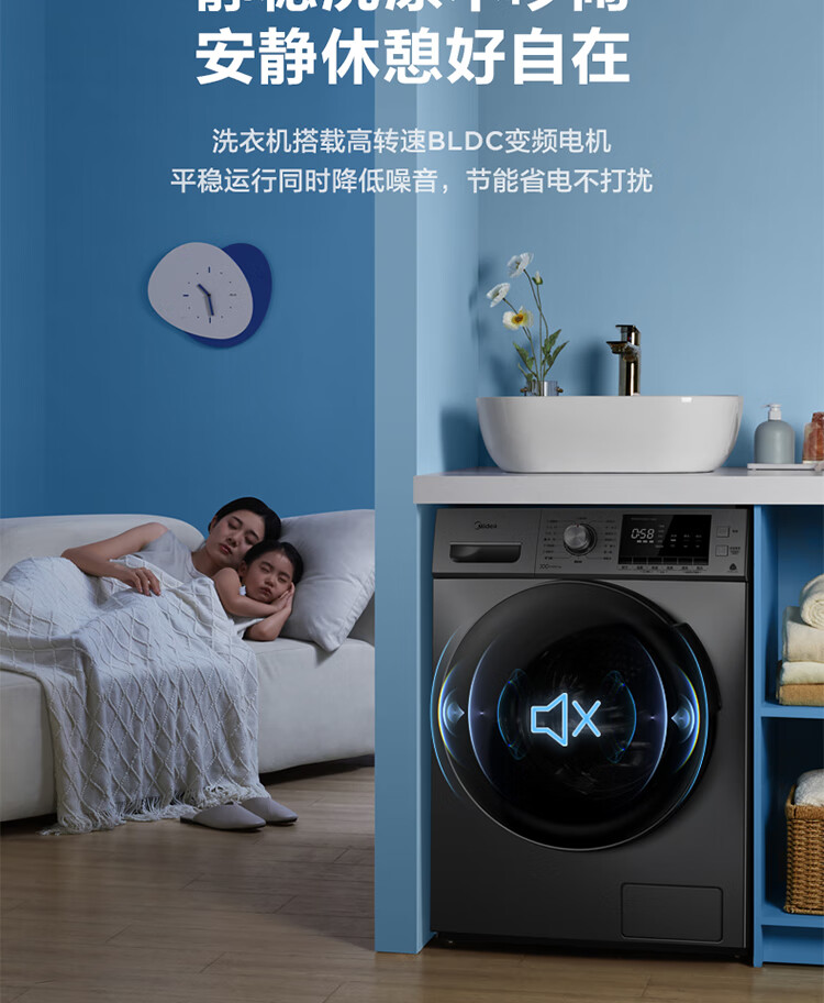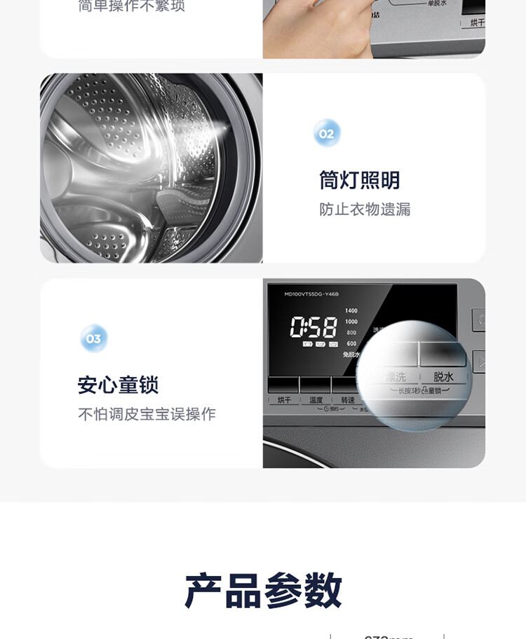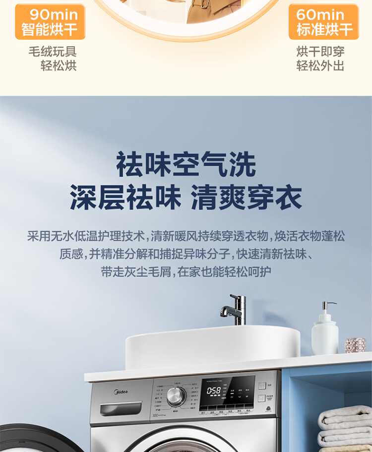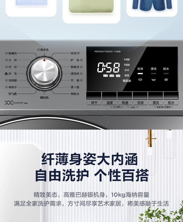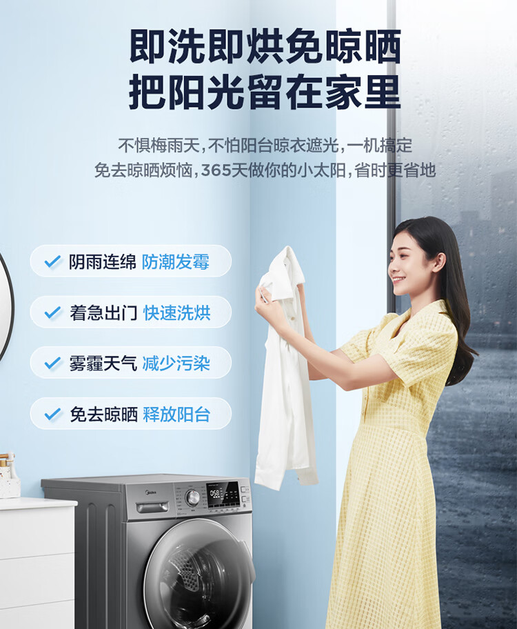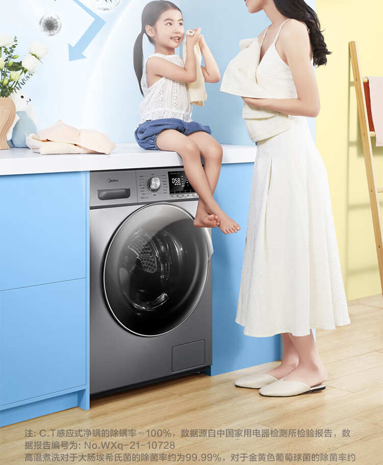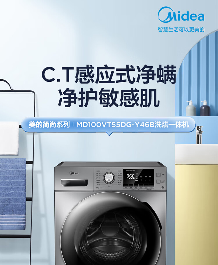 美的滚筒洗衣机全自动 洗烘一体机 蒸汽柔烘 健康除螨 巴氏除菌 MD100VT55DG-Y46B