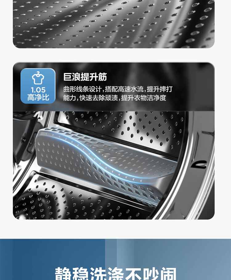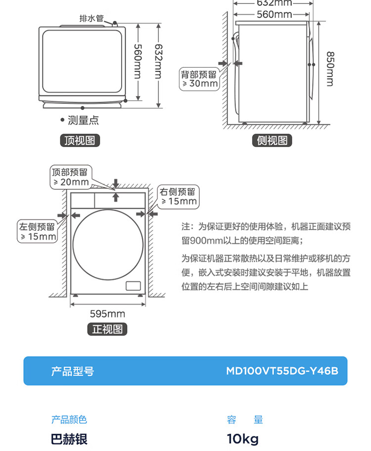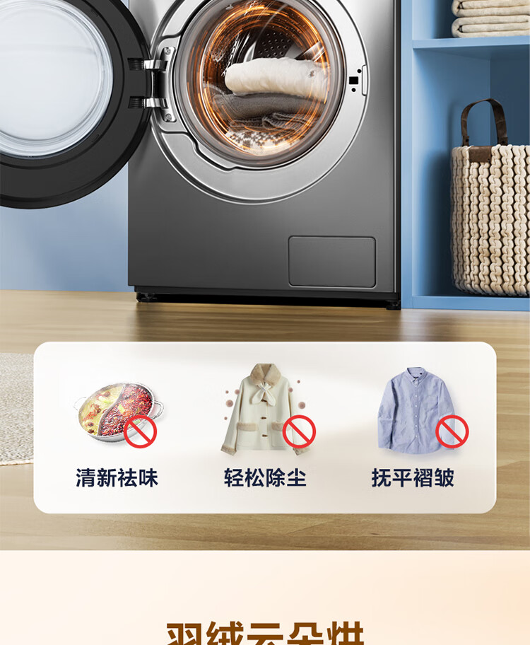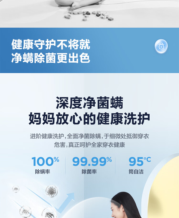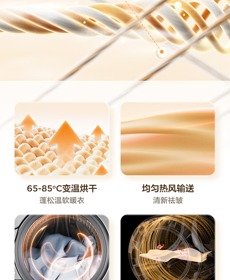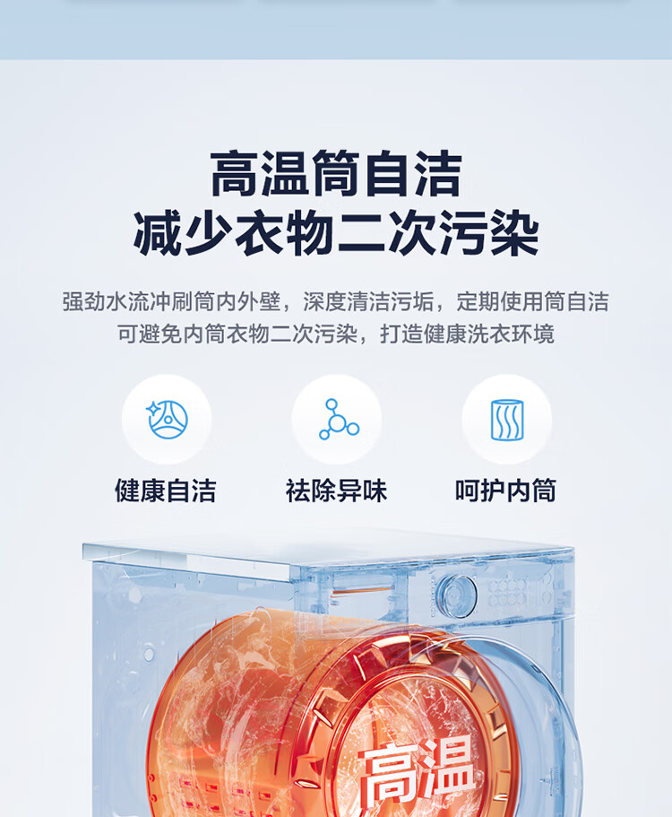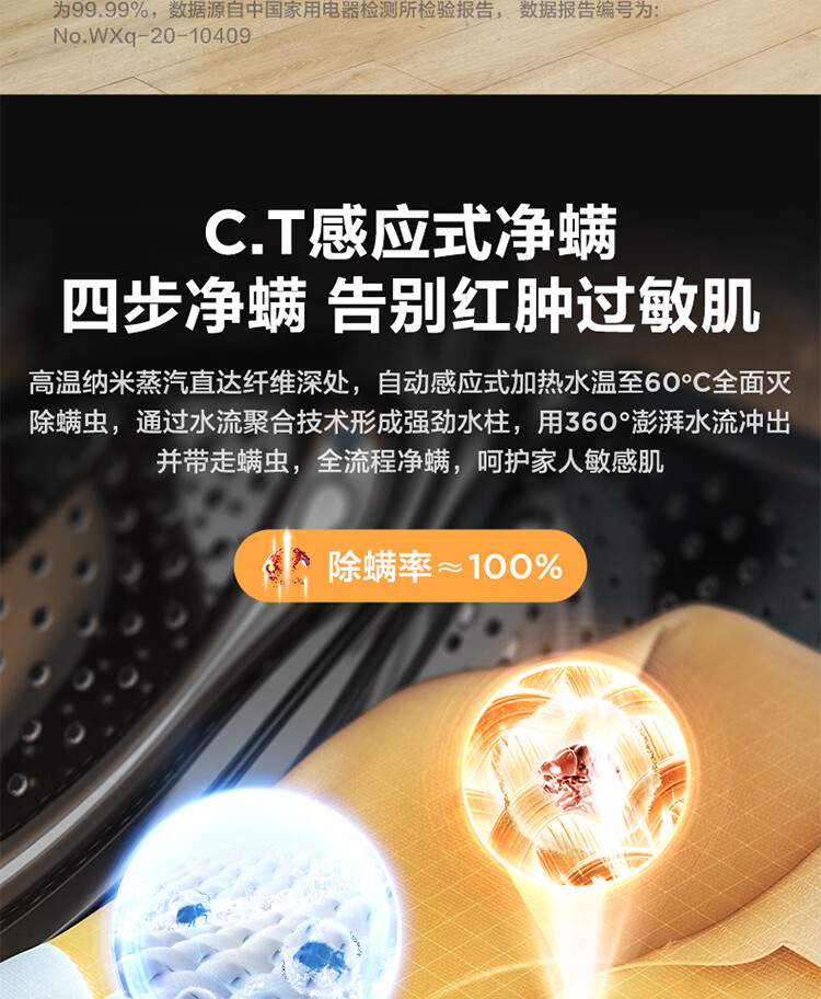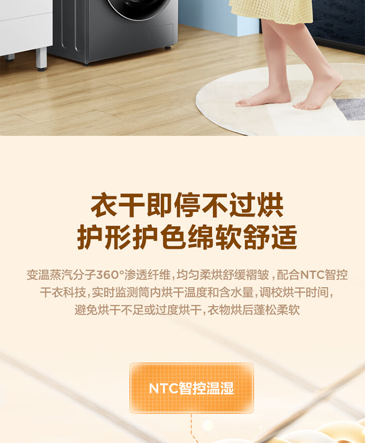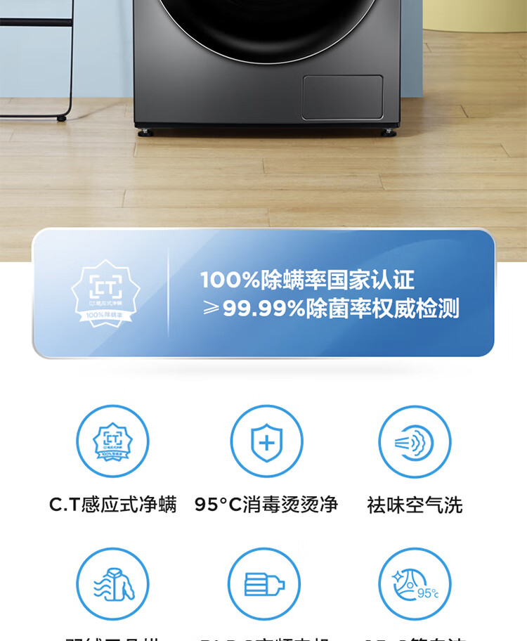 美的滚筒洗衣机全自动 洗烘一体机 蒸汽柔烘 健康除螨 巴氏除菌 MD100VT55DG-Y46B