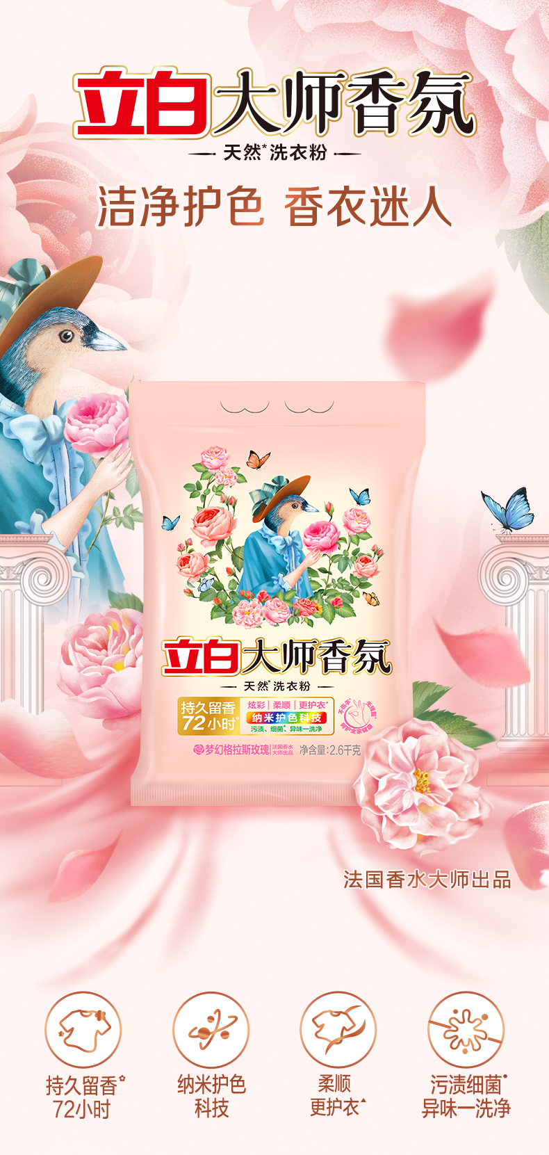 立白大师香氛洗衣粉5.2斤装 洁净护色 柔顺护衣 72小时持久留香