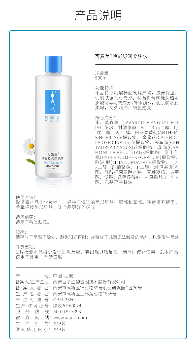 可复美焕能舒润柔肤水肌肤爽肤水 柔肤水500ml