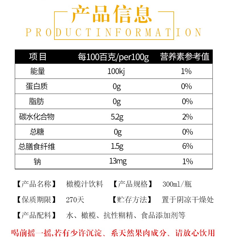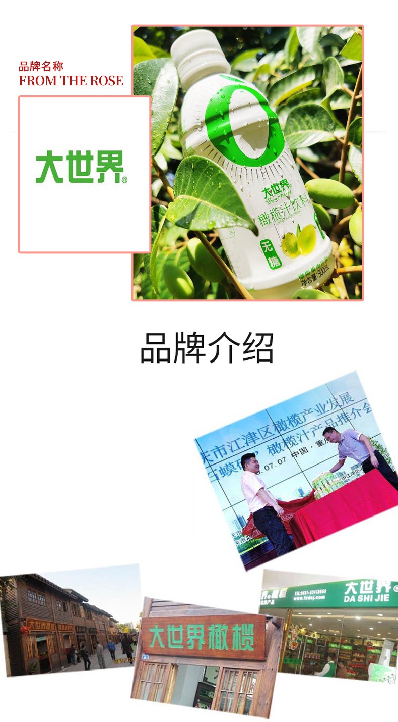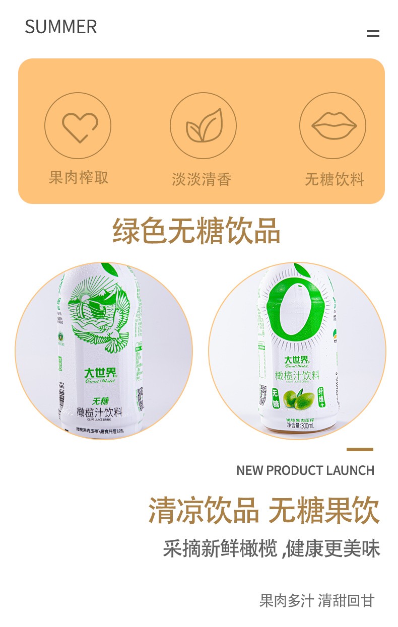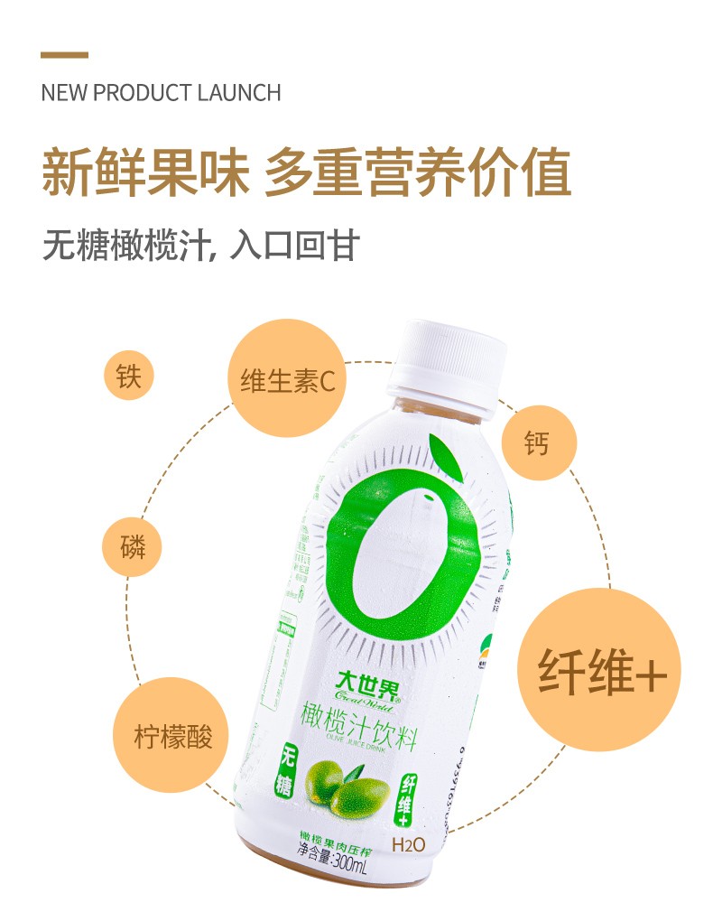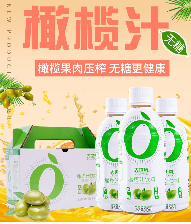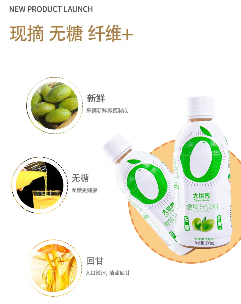大世界 无糖橄榄汁福建特产橄榄汁饮料果汁饮料橄榄绿色果汁纤维300ml