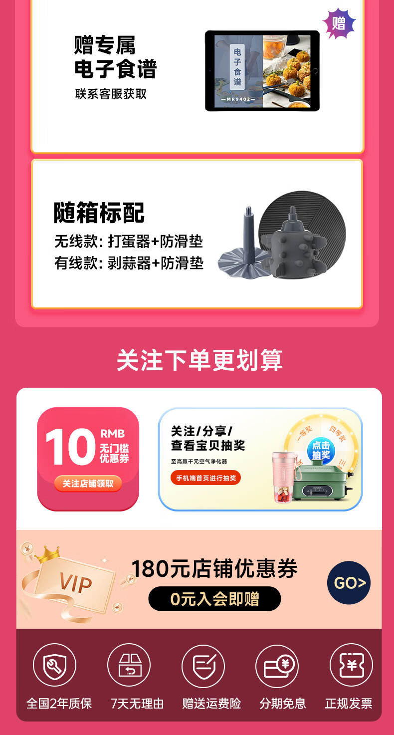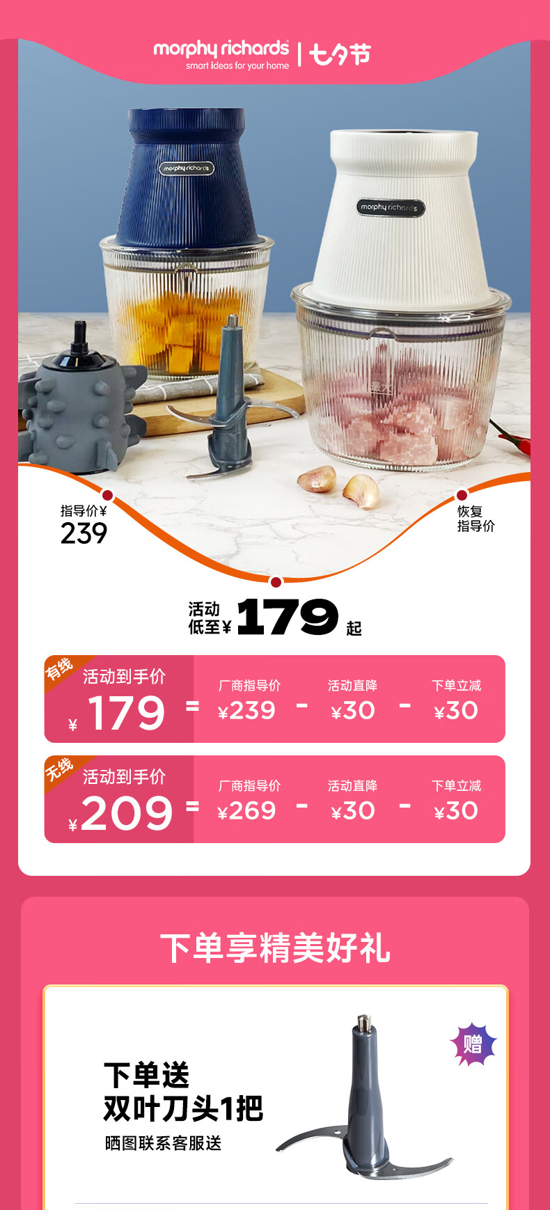 摩飞电器(Morphyrichards) 绞肉机家用无线电动辅食机料理机多功能绞馅机MR9402 A 经典有线款(蓝色)