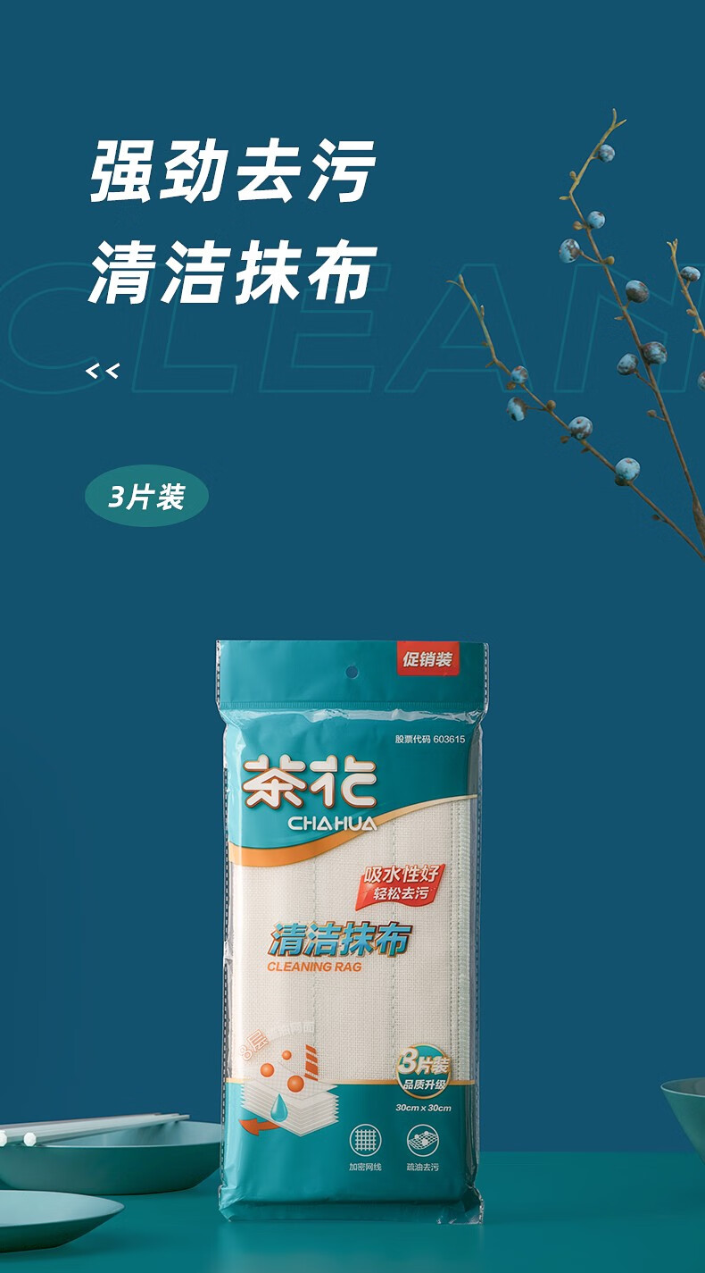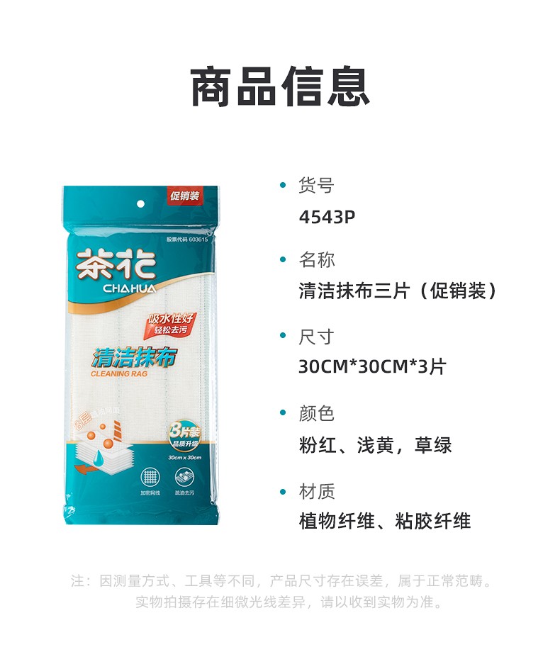 茶花(CHAHUA)茶花夹层棉柔抹布(3包9片装)加厚清洁洗碗布 【1包3片装】颜色随机 30CM*30CM