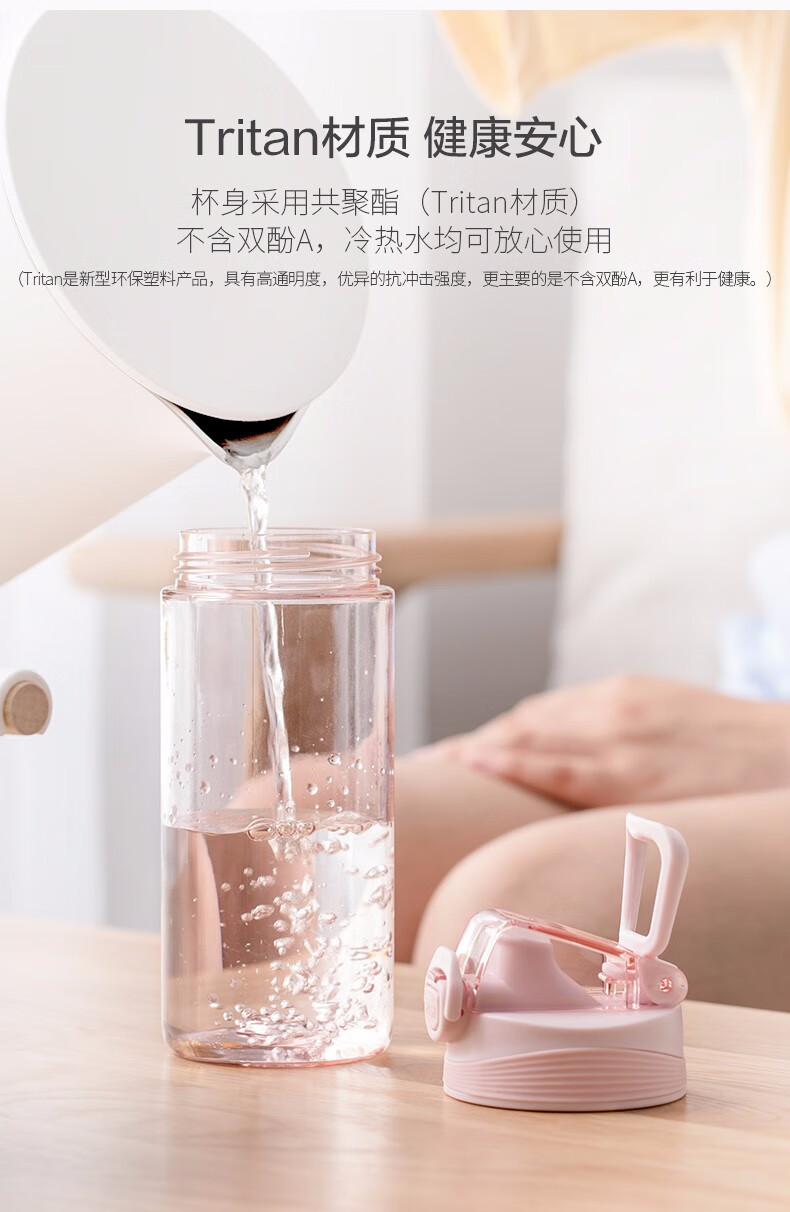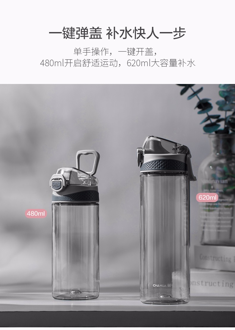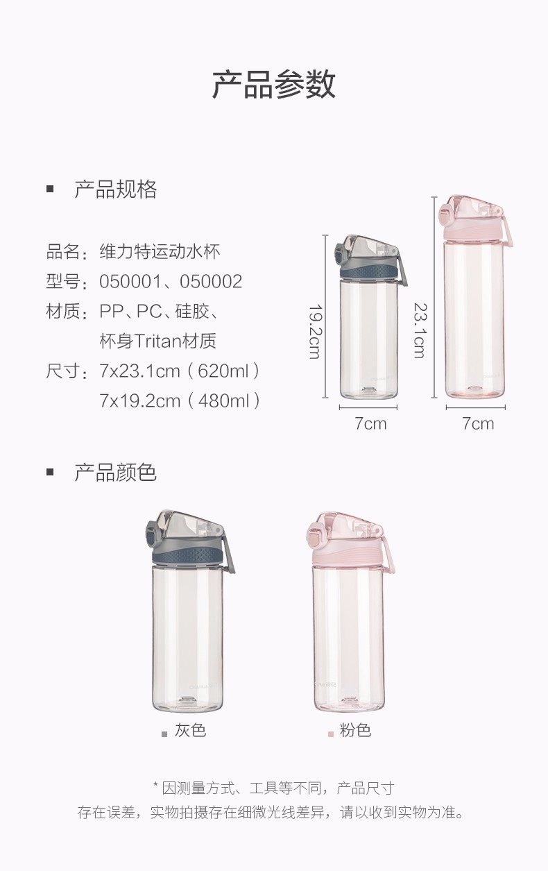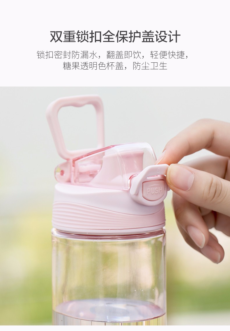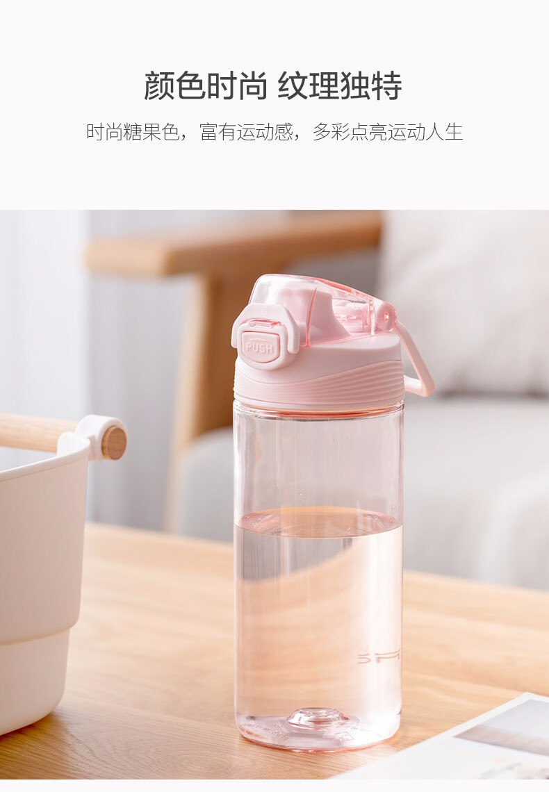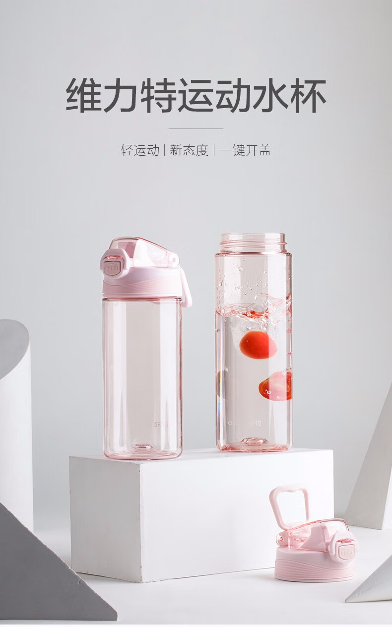 茶花(CHAHUA) 茶花塑料水杯运动旅行便携简约水杯050002 050002粉色 480ml