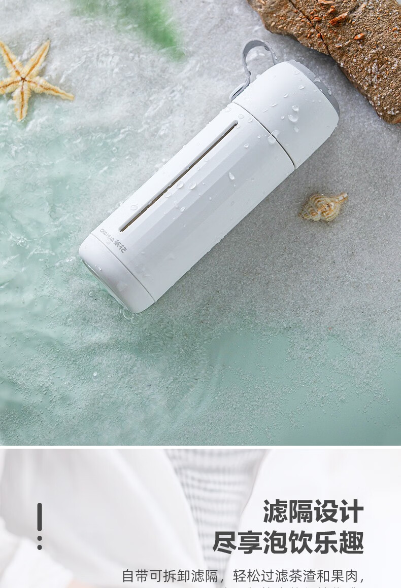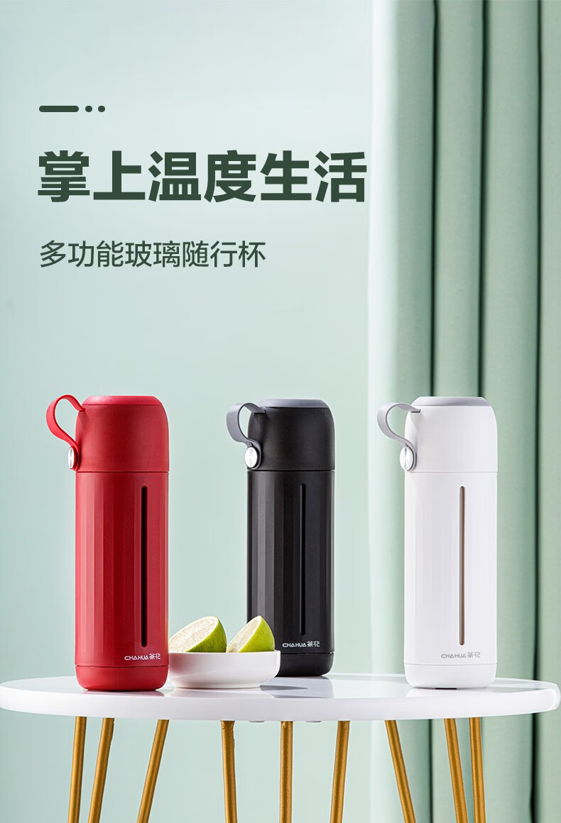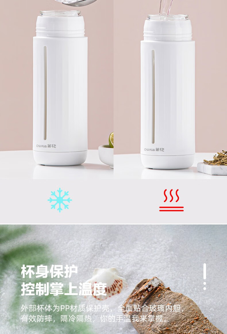 茶花家用带盖玻璃杯男女学生水杯便携泡茶杯带盖两用杯子随手杯 白色310ml