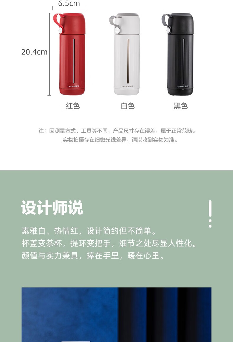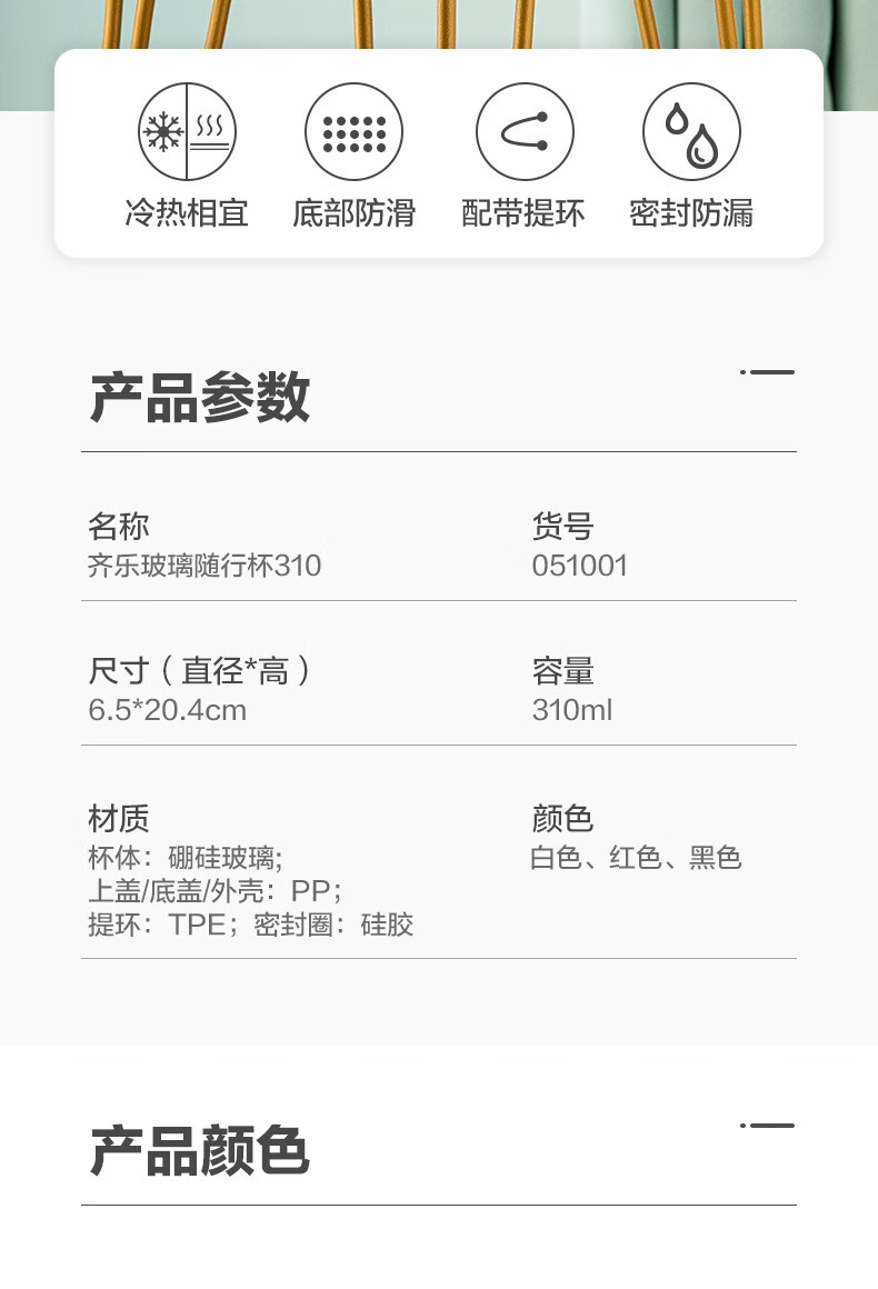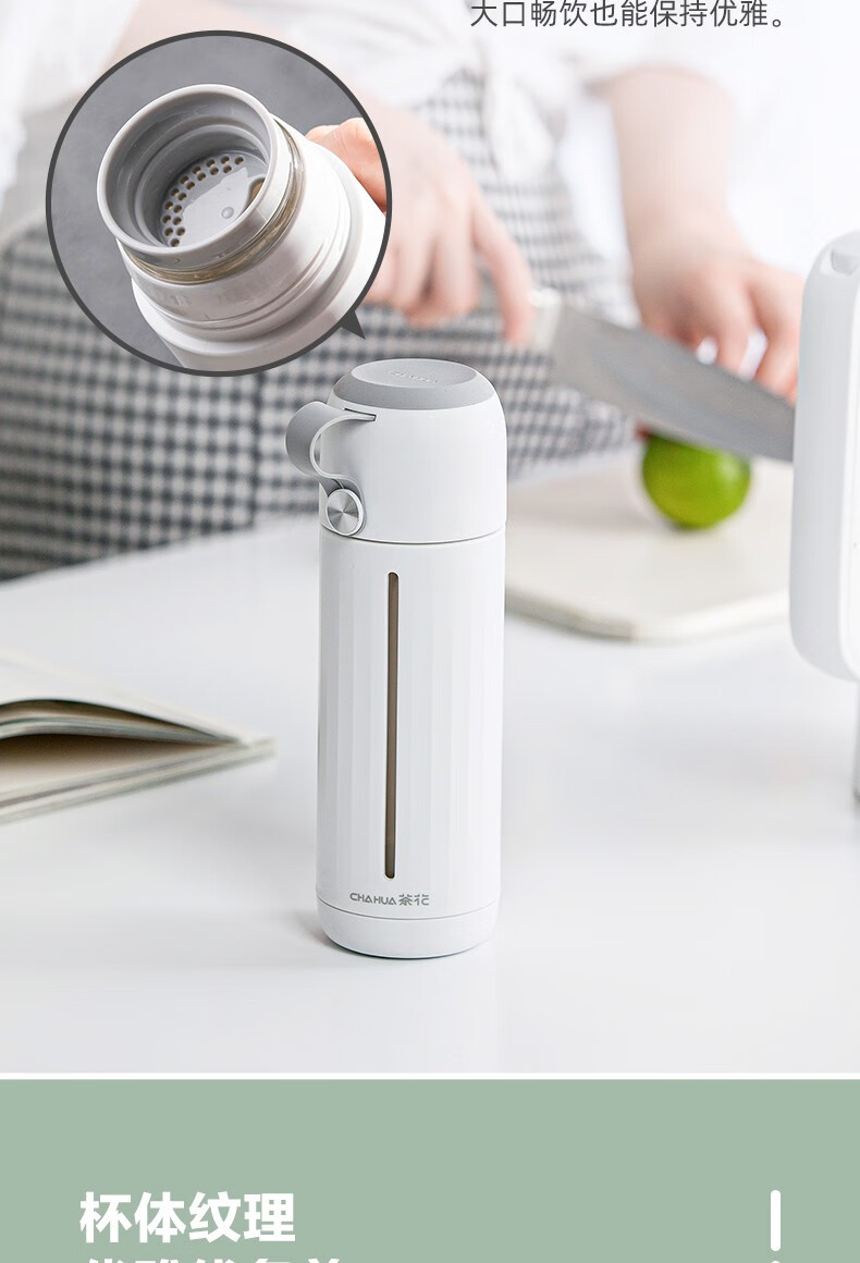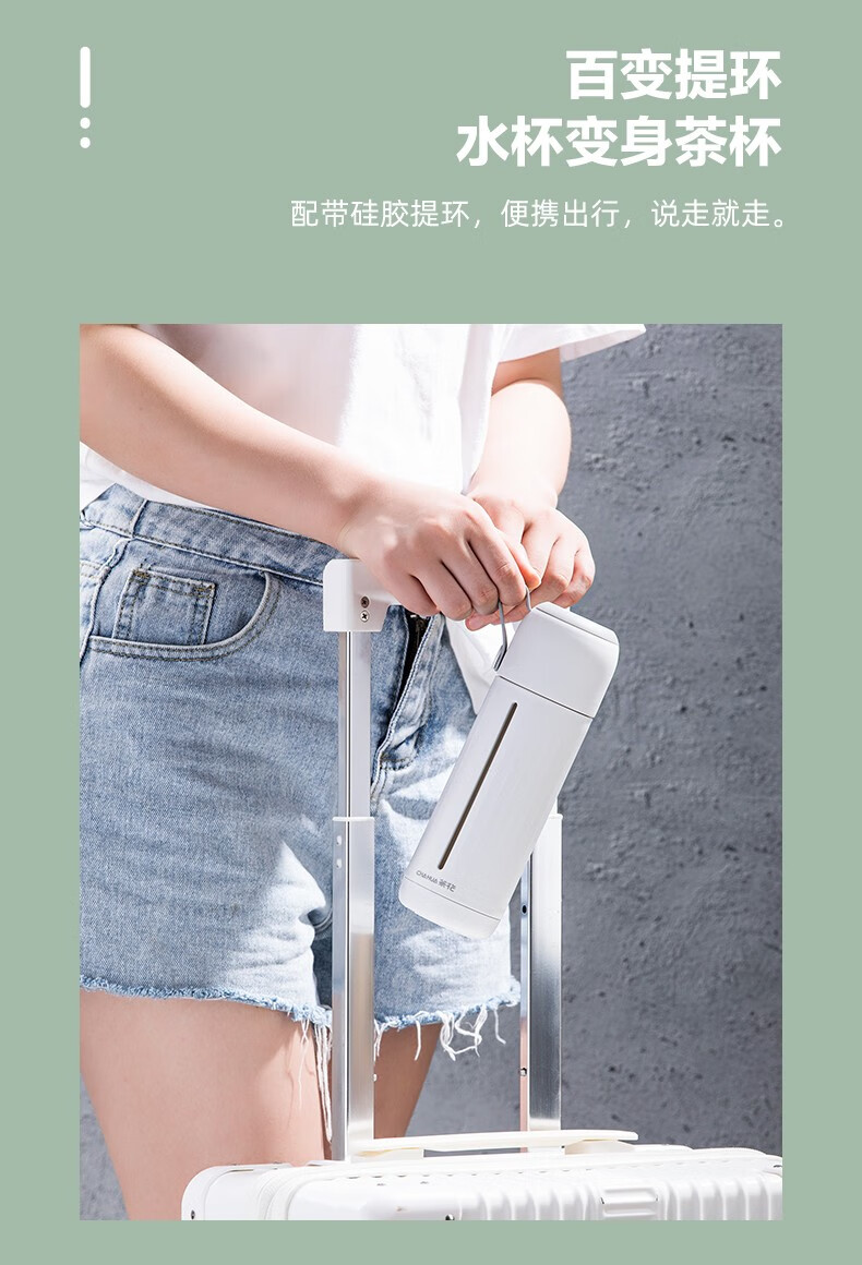 茶花家用带盖玻璃杯男女学生水杯便携泡茶杯带盖两用杯子随手杯 白色310ml