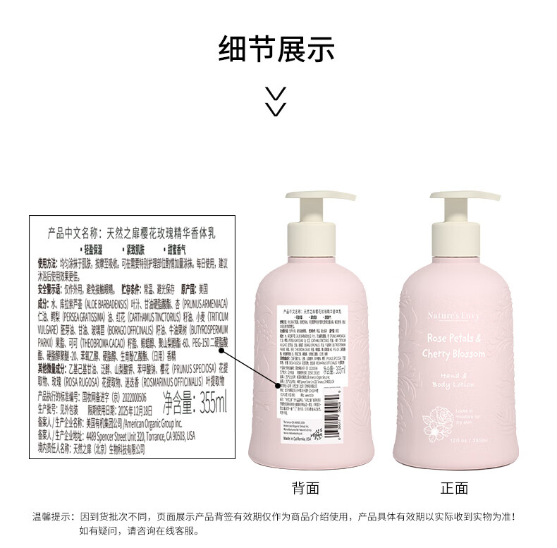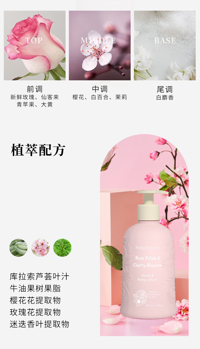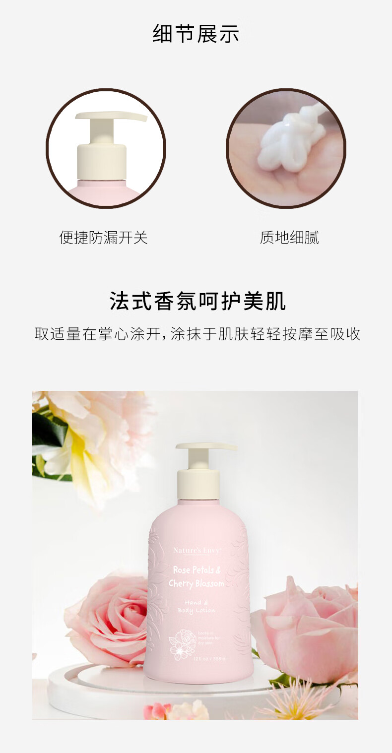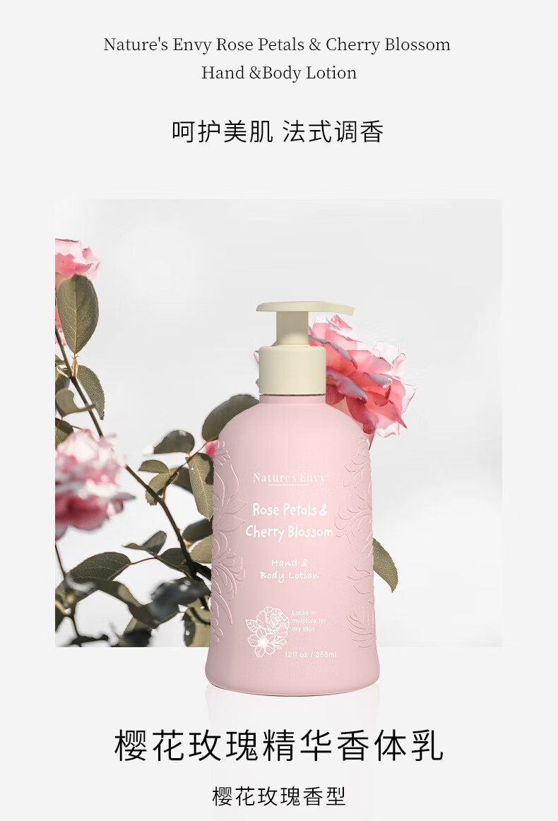 天然之扉 樱花玫瑰精华香体乳355ml滑润保湿身体乳身体护理润肤露 樱花玫瑰精华润肤乳355ml