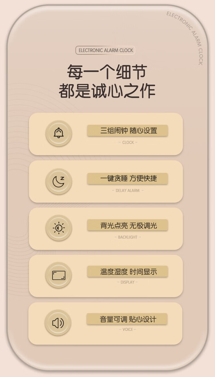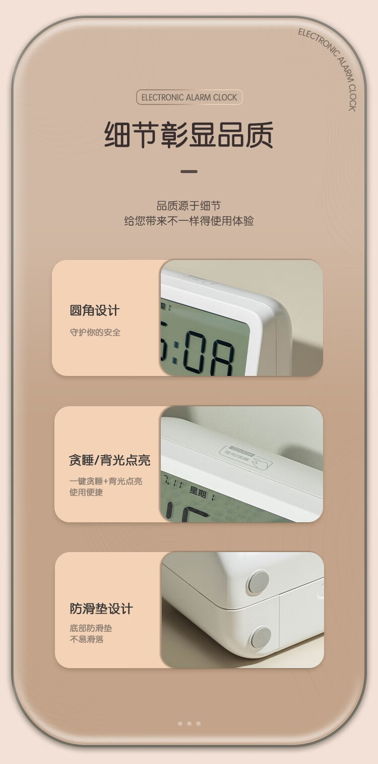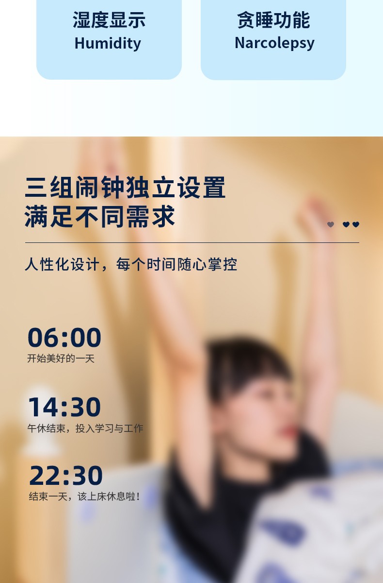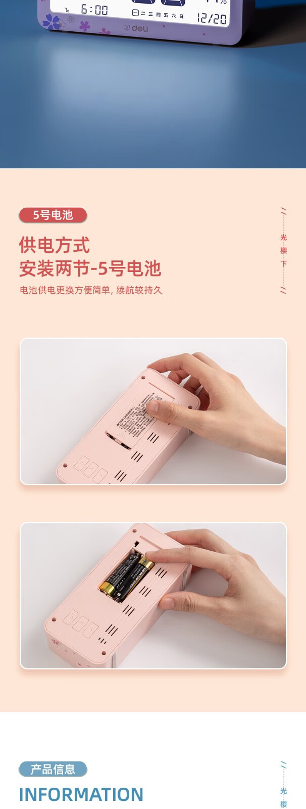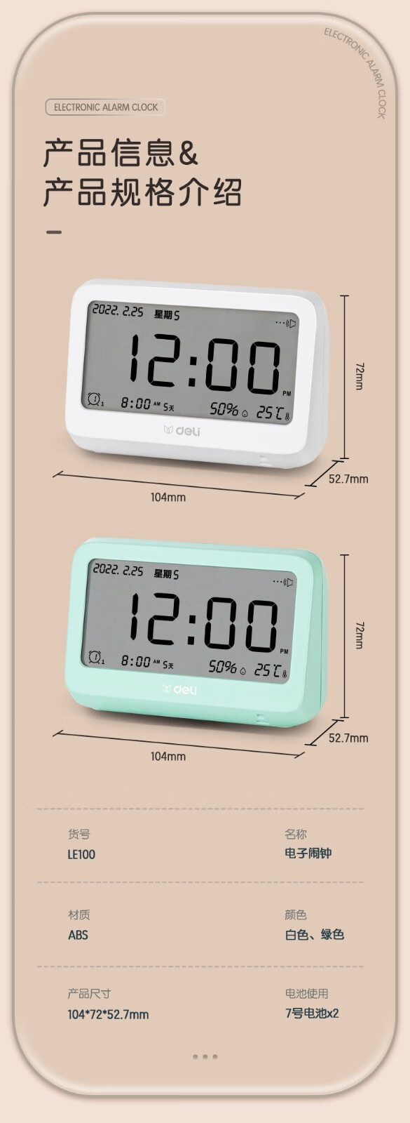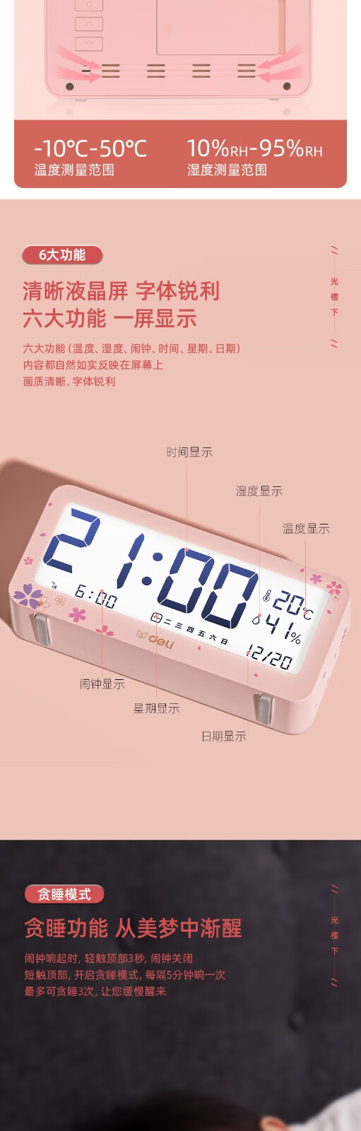 得力(deli)学生电子闹钟 智能背光电子时钟床头钟 温湿度计专用起床神器时间 【推荐】中号简洁白-起床神器