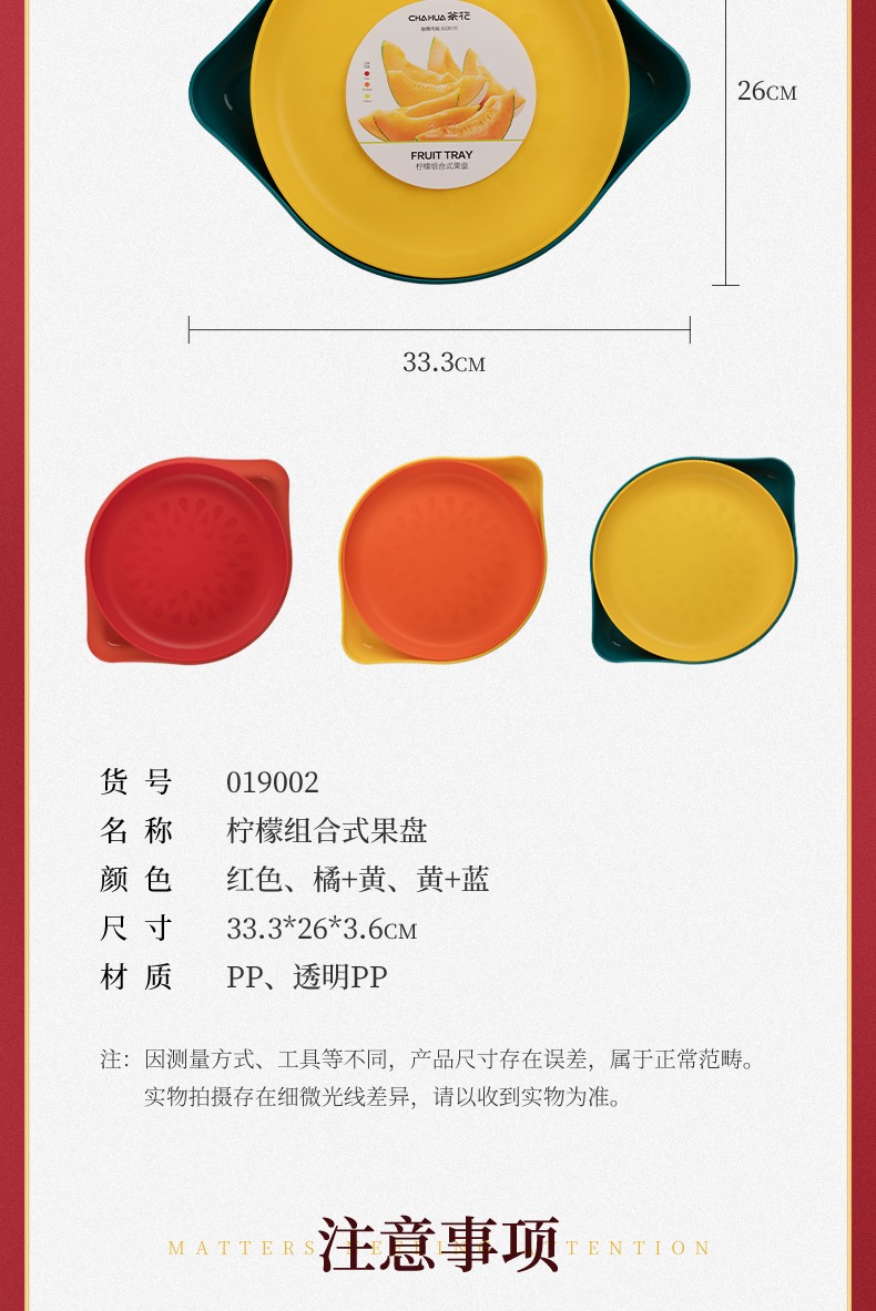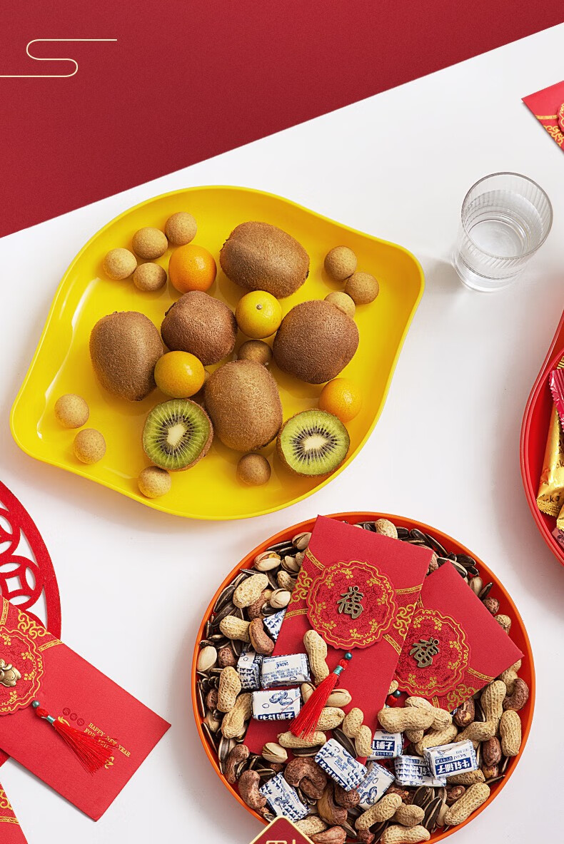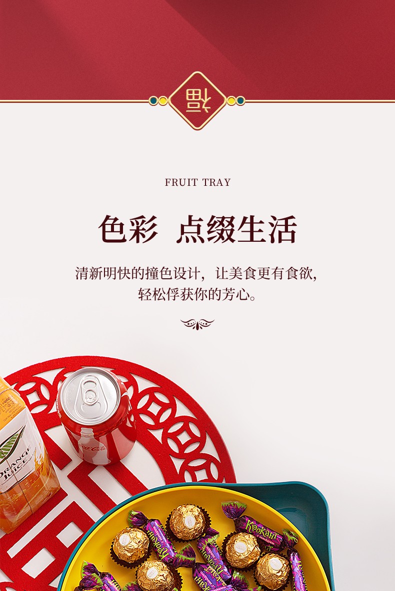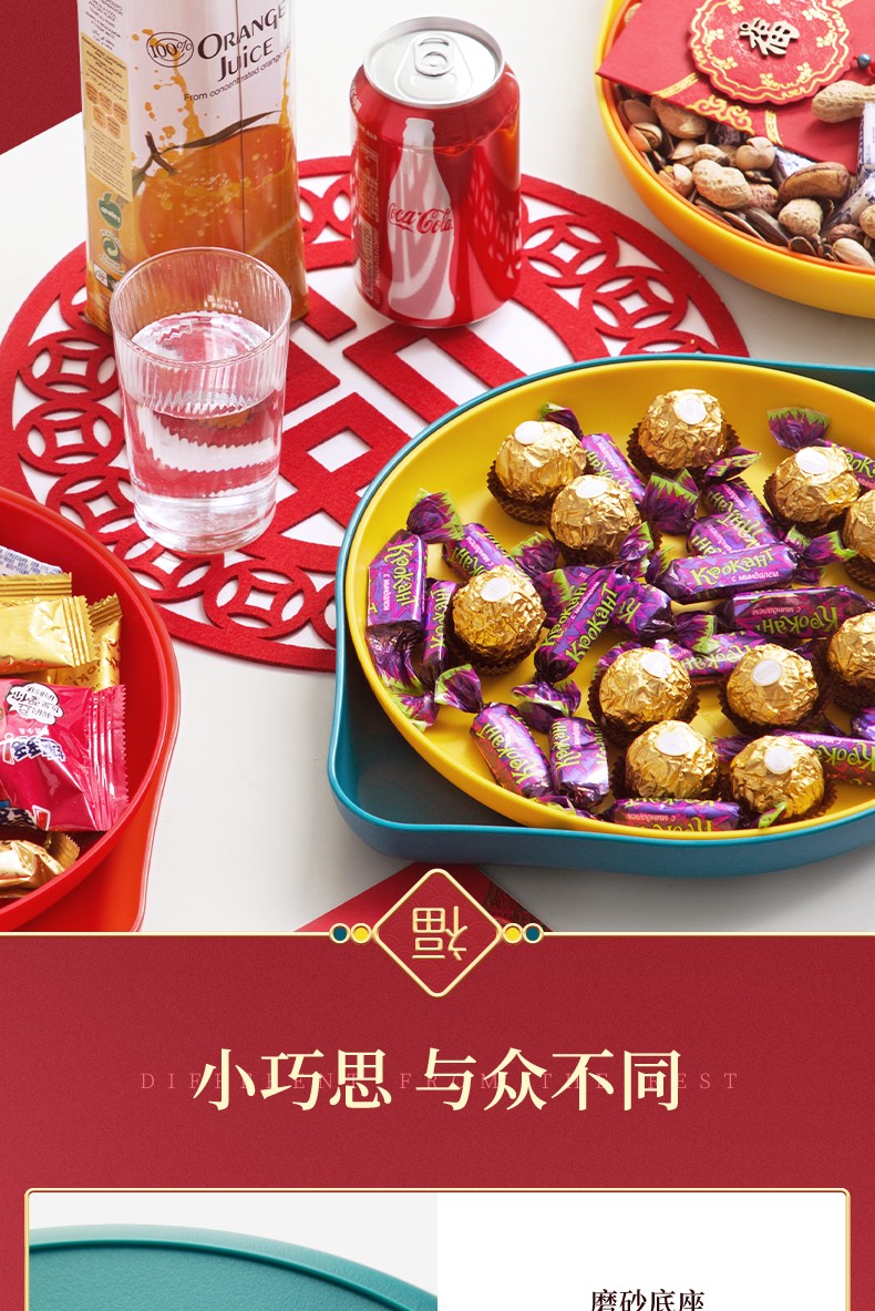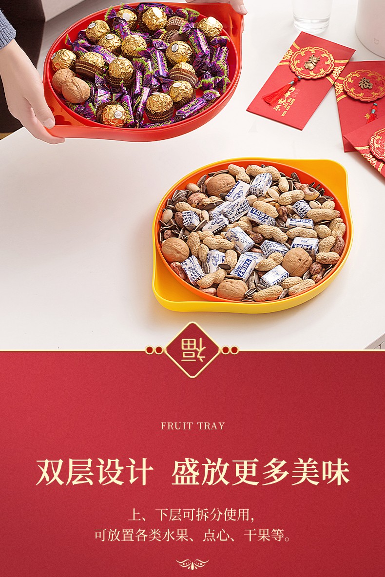 茶花果盘塑料双层糖果盒干果盒水果盘客厅茶几瓜子盘零食盘瓜子盒 【双层、大敞口随意放】橘色