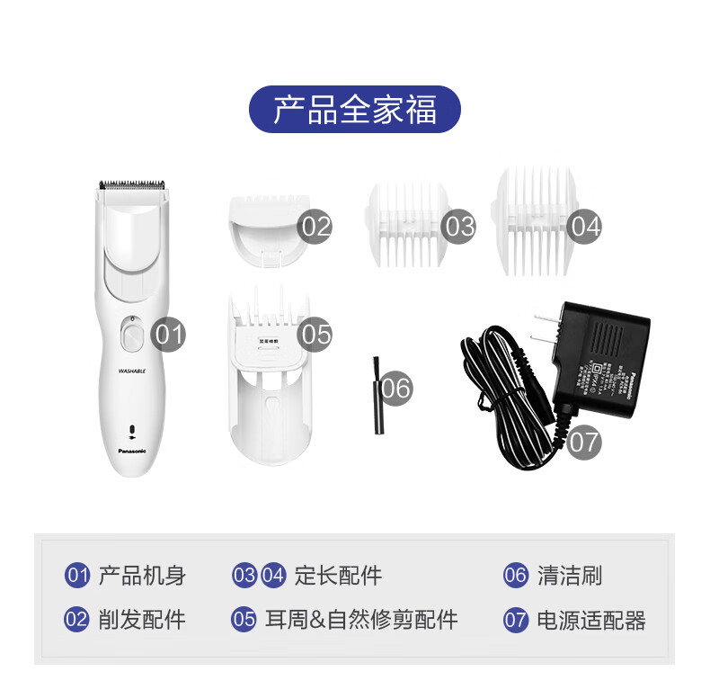 松下(Panasonic) 电推子理发器成人剃发器充电式理发器电动剃头器PGF40 ER-PGF40W405 白色