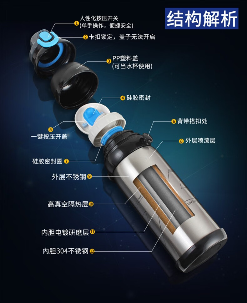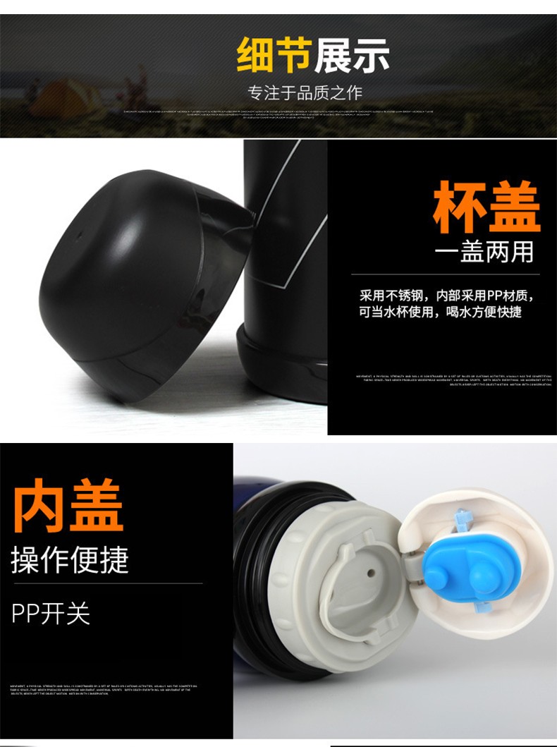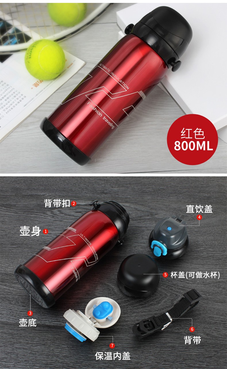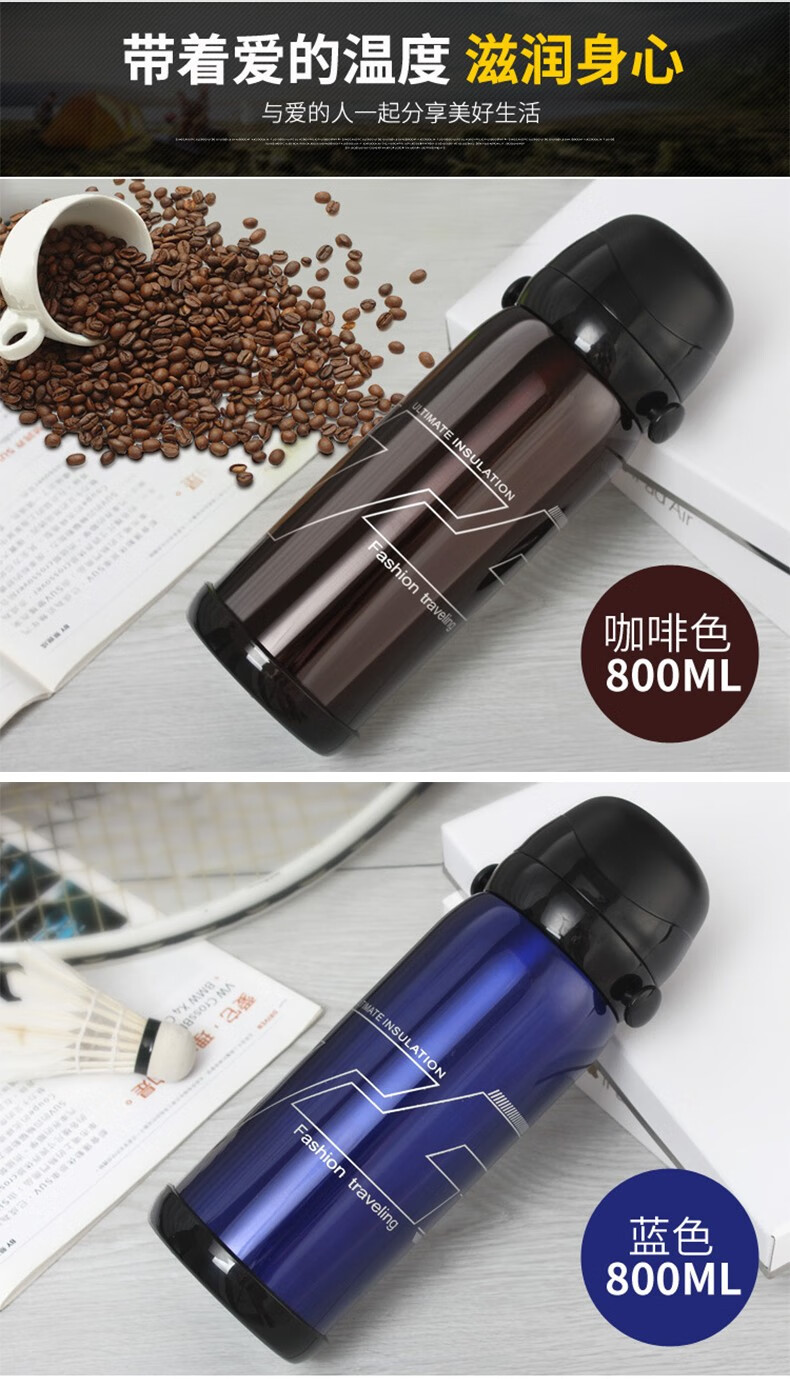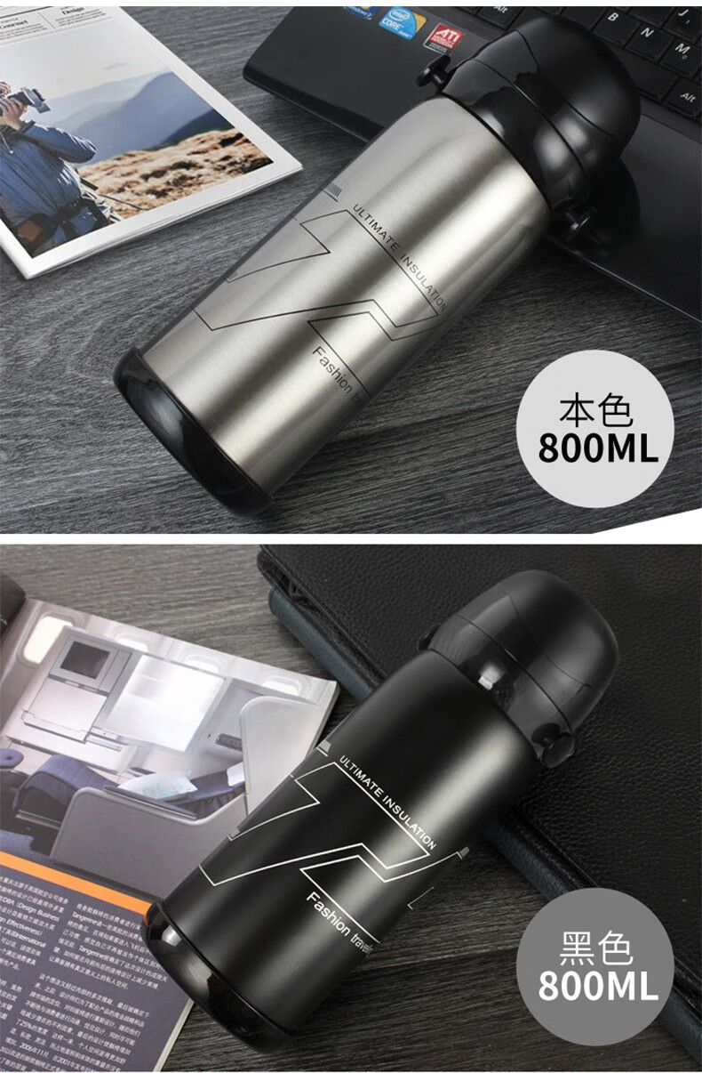 Tri-polar 不锈钢真空保温杯水杯户外自驾车载运动水瓶礼品大容量保温壶TP3608 本色 800ml