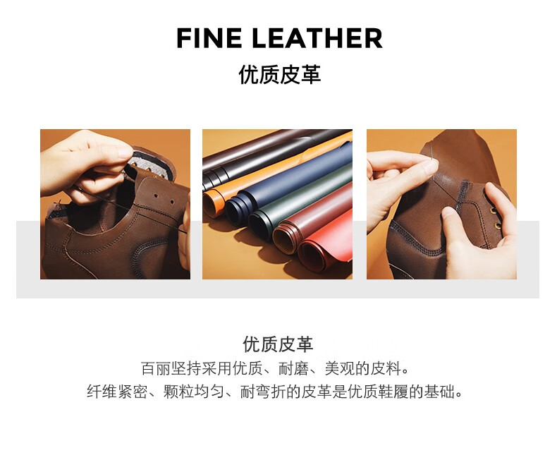 百丽牛皮商务休闲皮鞋男百搭马丁鞋子橡胶底86181CM0 黑 42