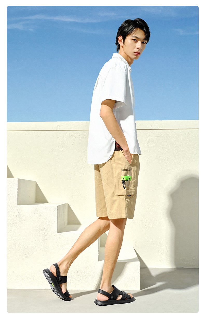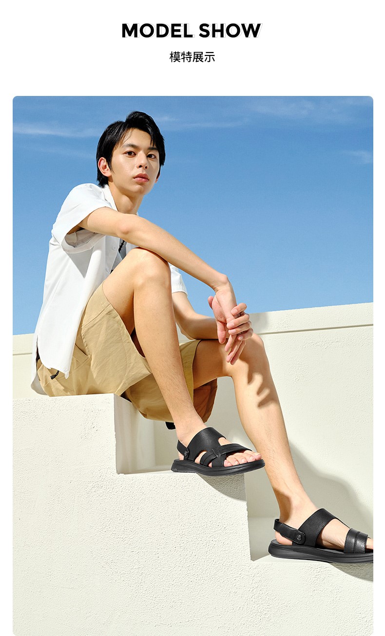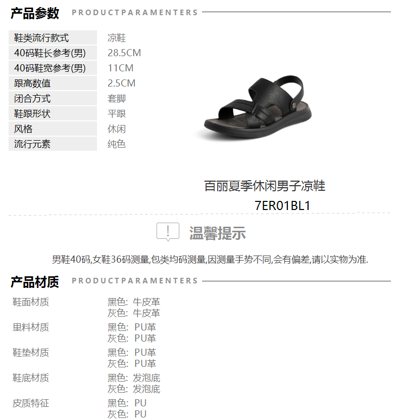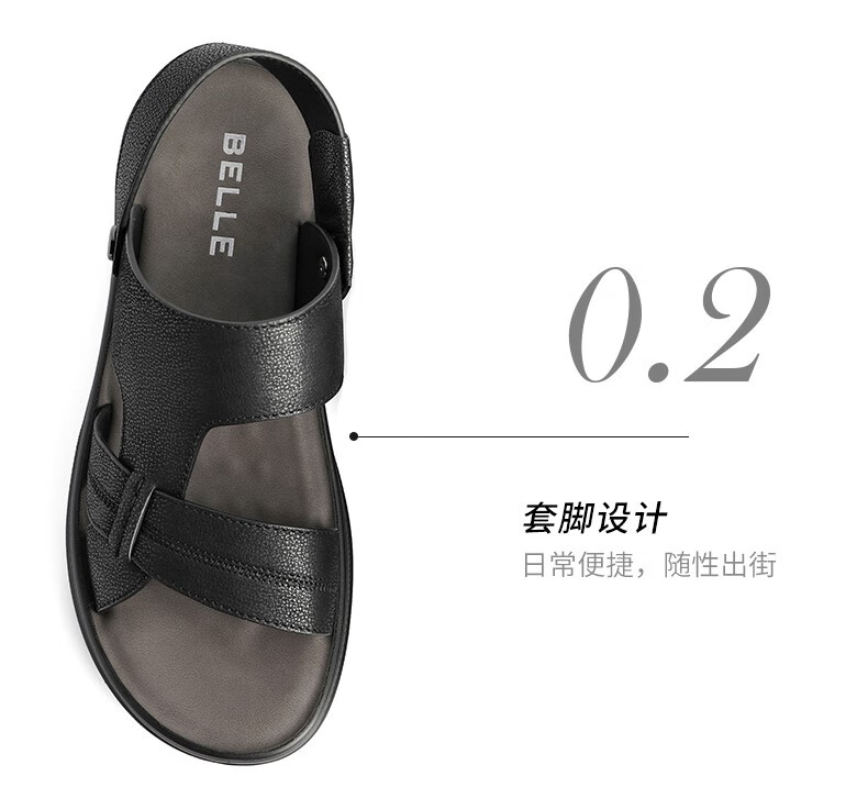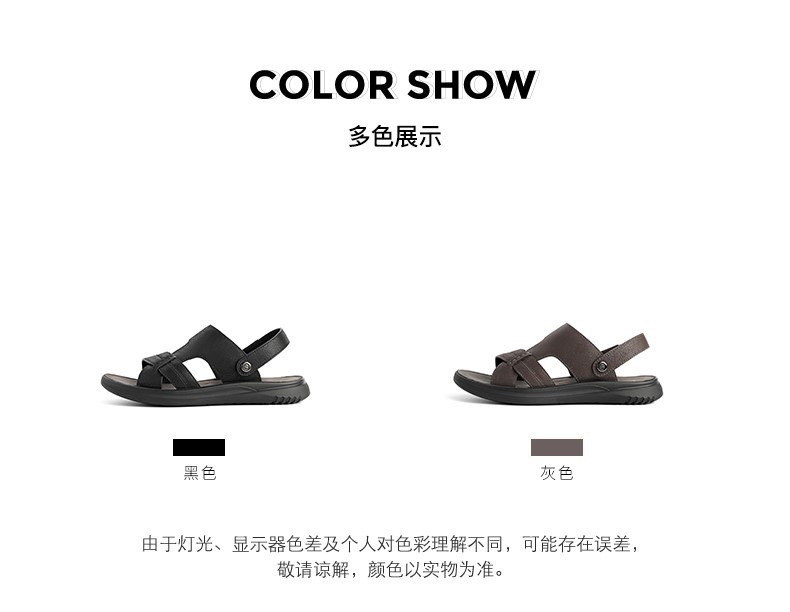 百丽商场同款牛皮男休闲凉鞋7ER01BL1 灰色 42