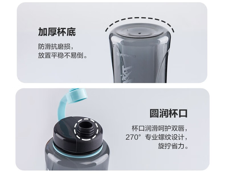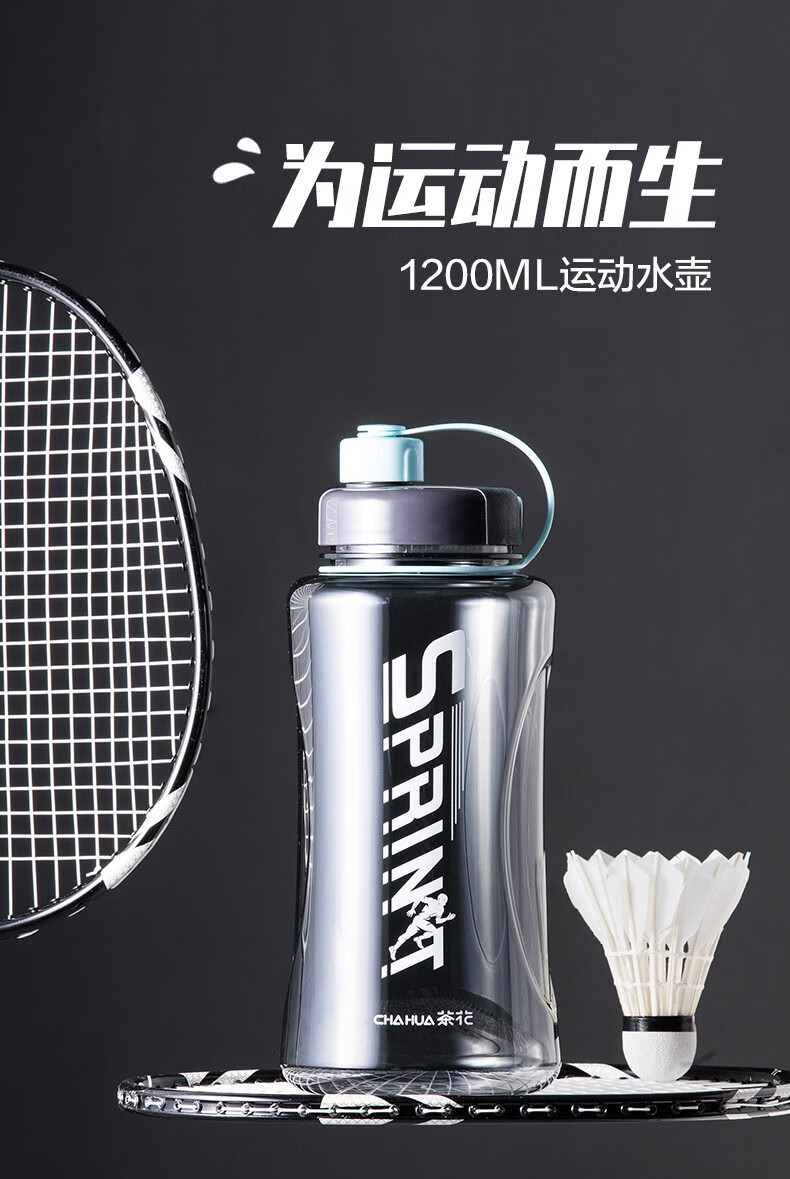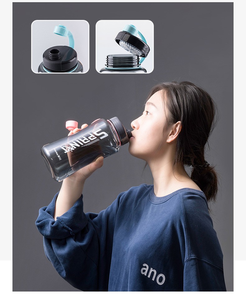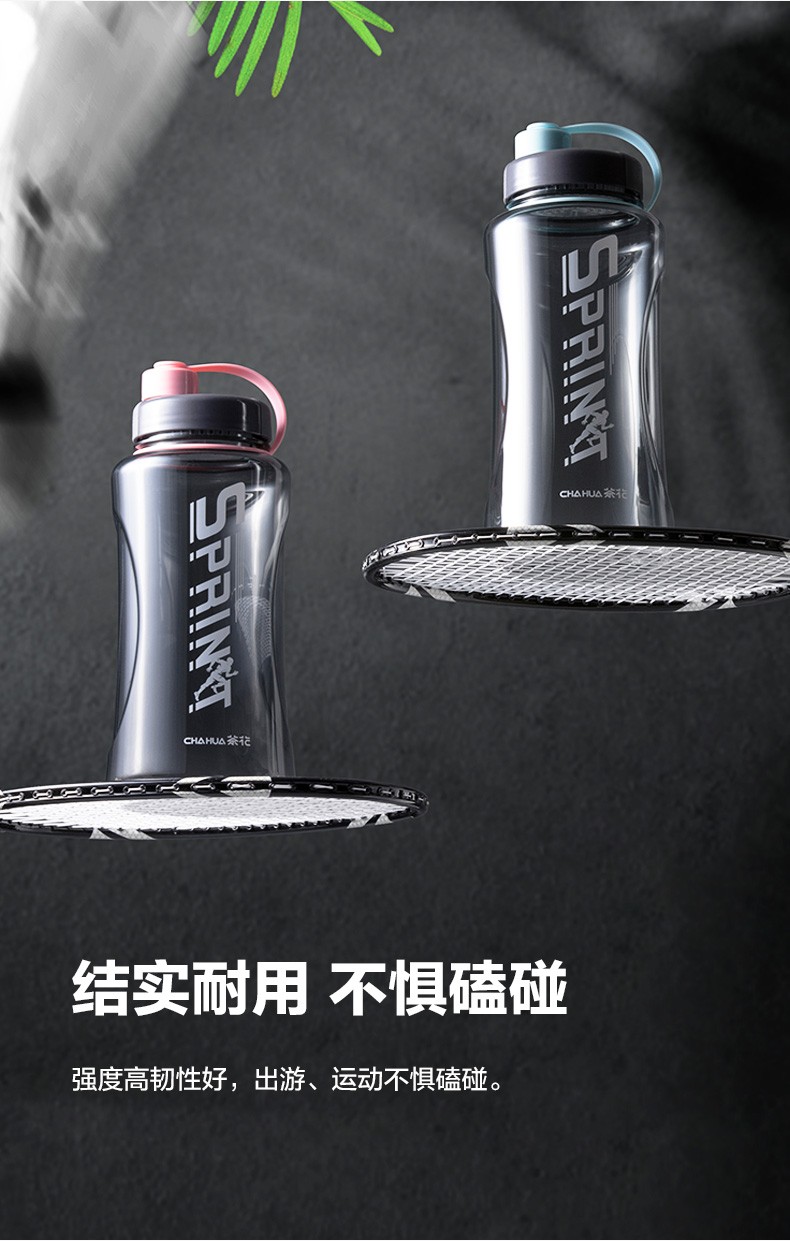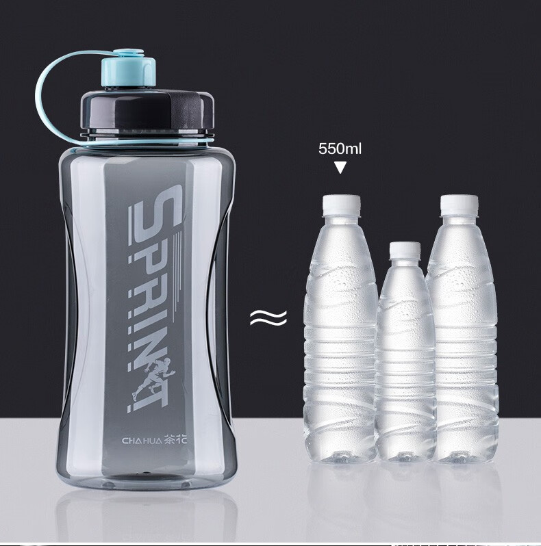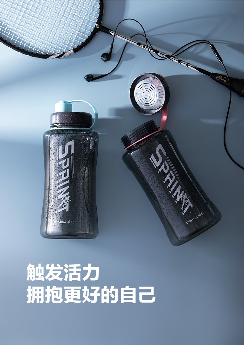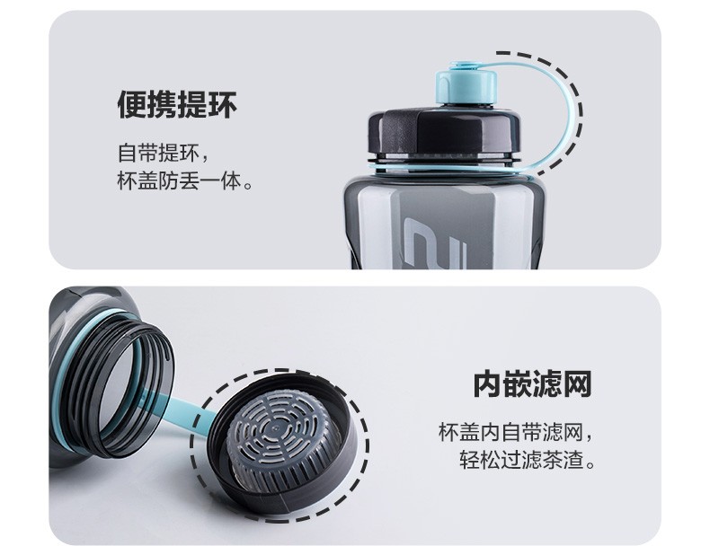 茶花夏超大容量塑料水杯男便携水瓶杯户外运动大号水壶女1200茶隔 【1200ml】蓝色