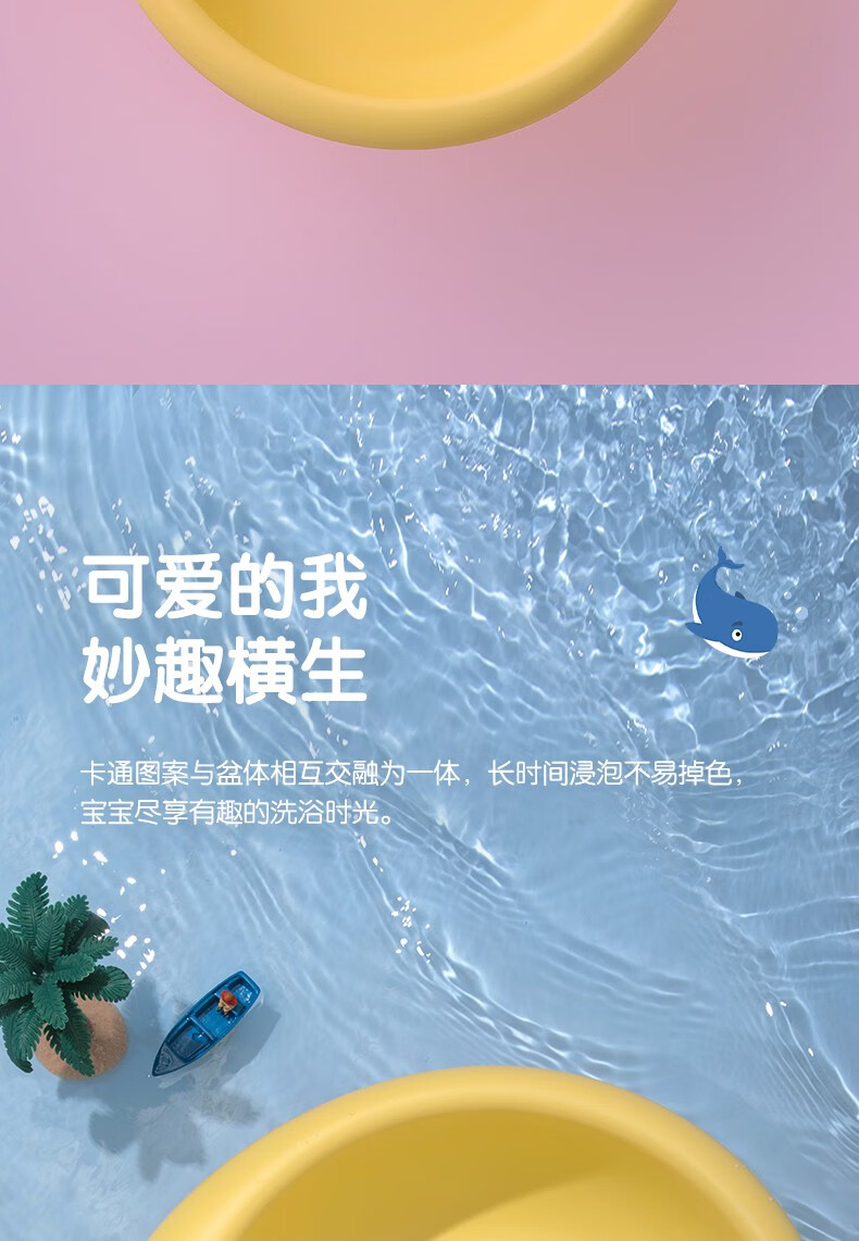 茶花欧铂兹抗菌加厚卡通脸盆塑料脚盆洗PP婴儿童大小脸盆 黄色