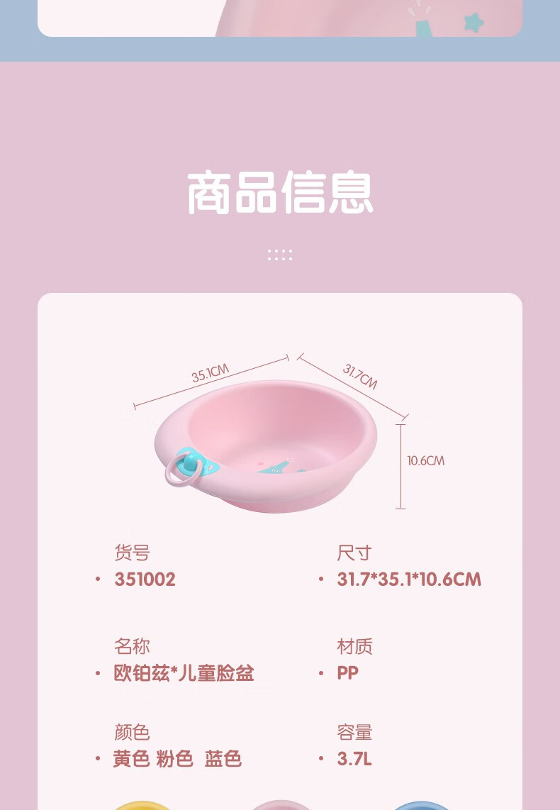 茶花欧铂兹抗菌加厚卡通脸盆塑料...