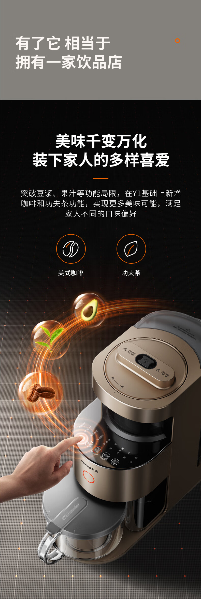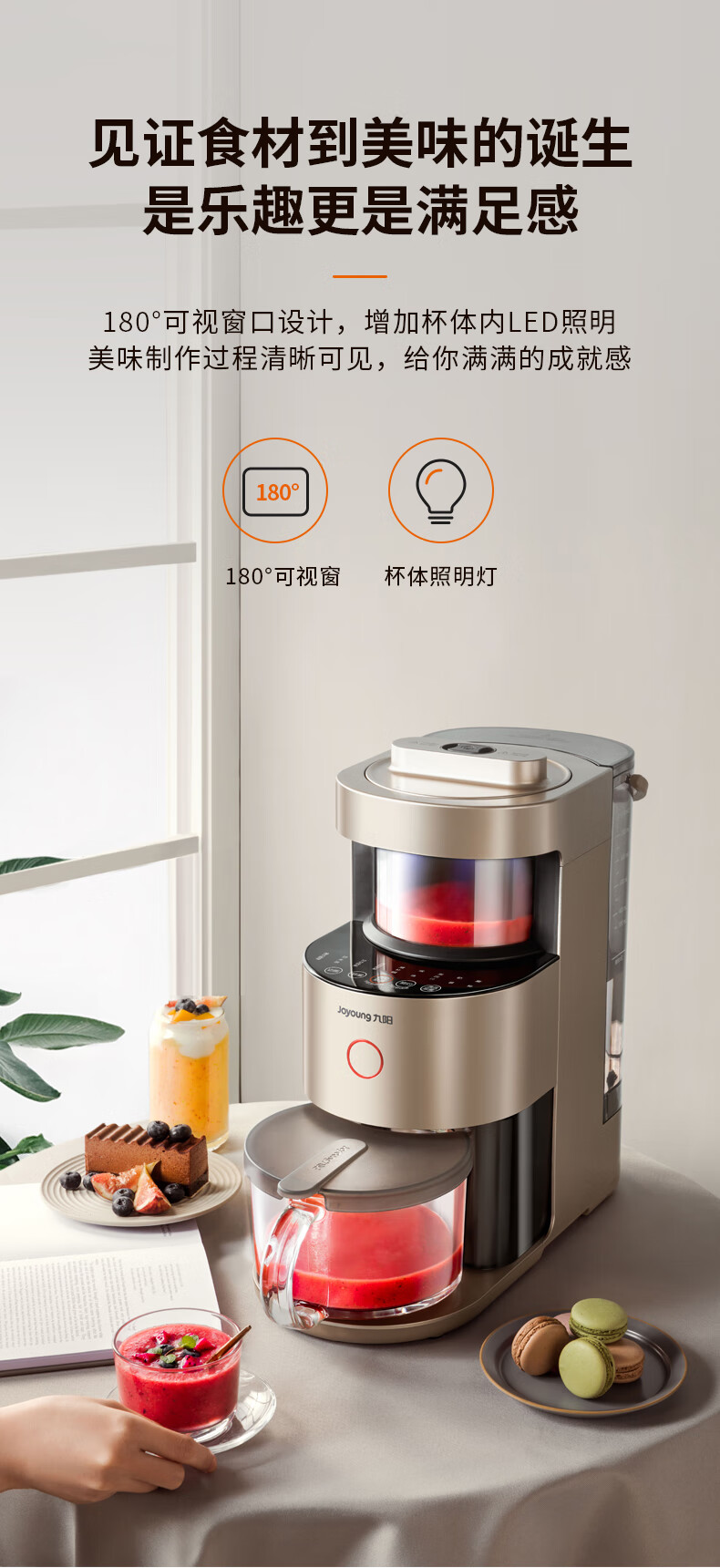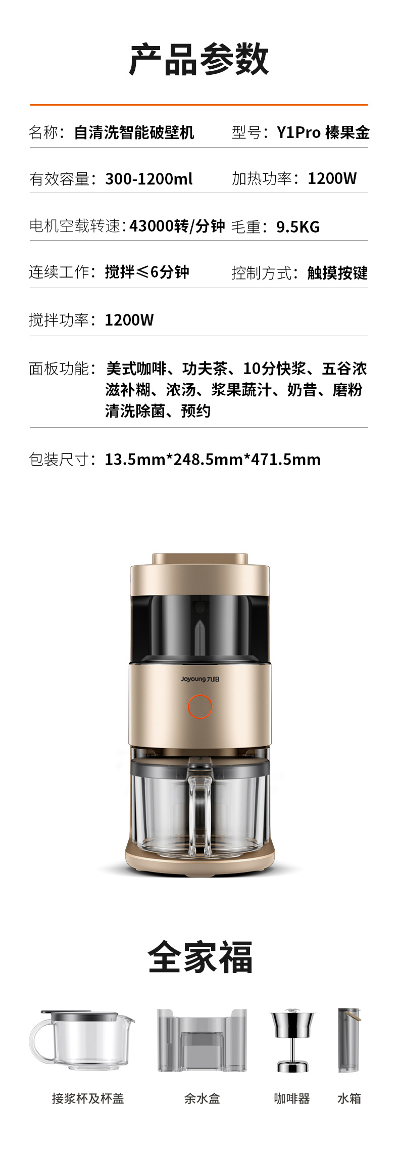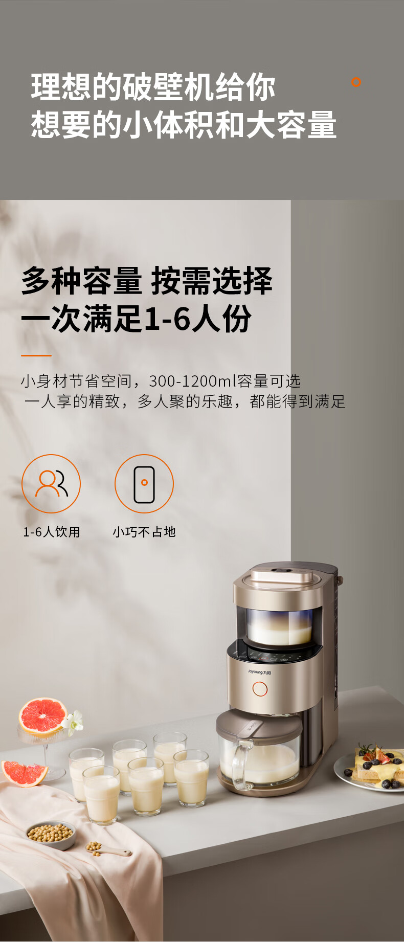 九阳(Joyoung) 【肖战推荐】低音破壁机0.3-1.2L热烘除菌预约家用多功能豆浆机Y1Pro 榛果金