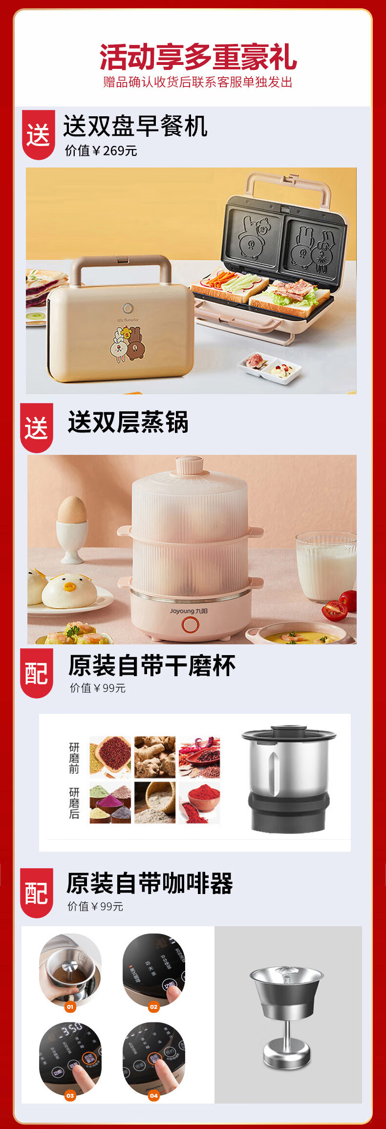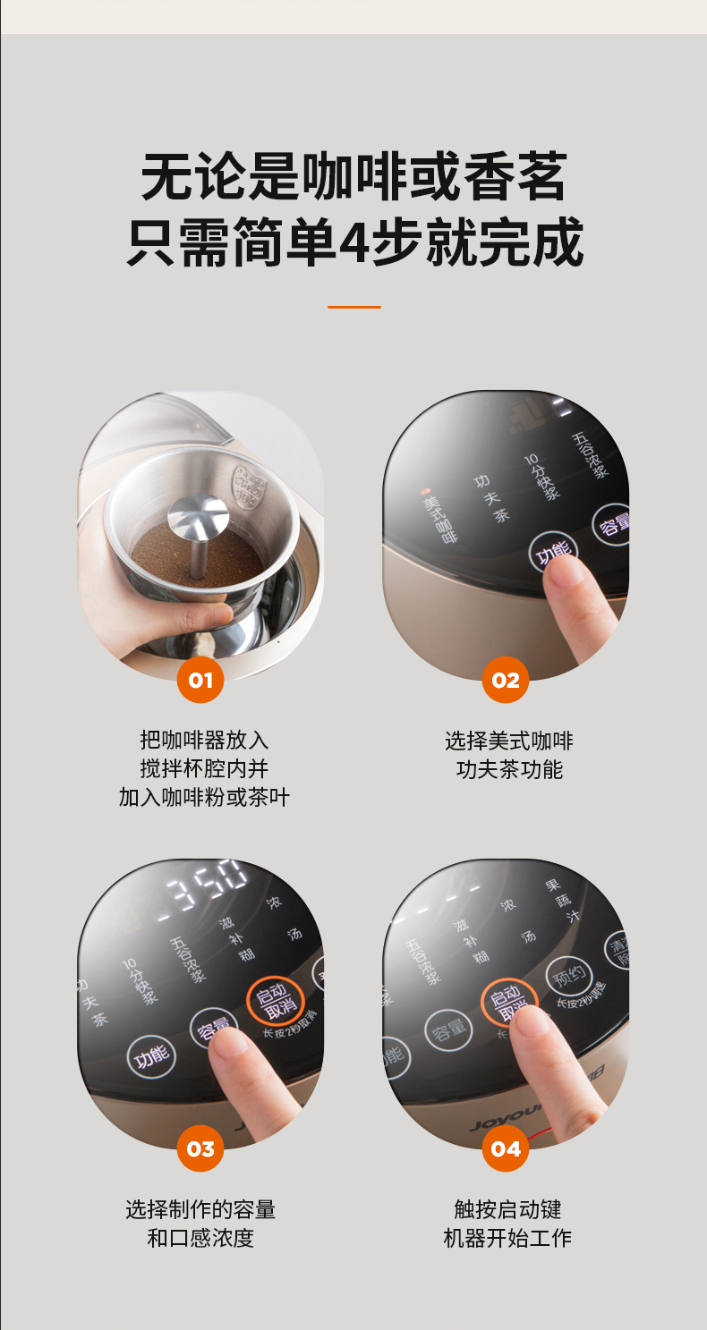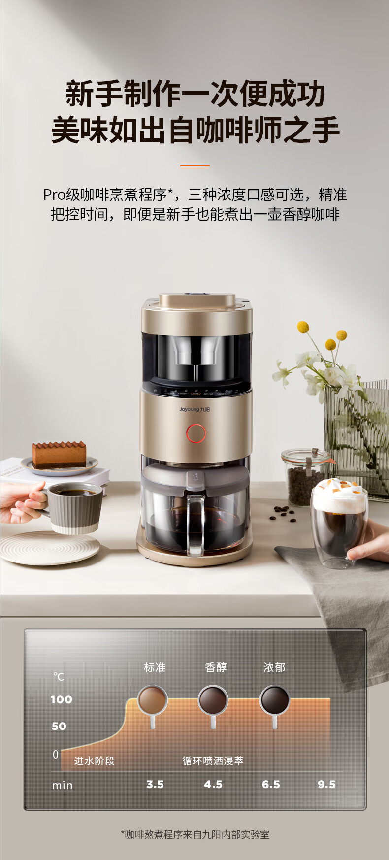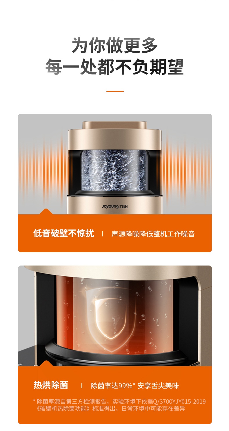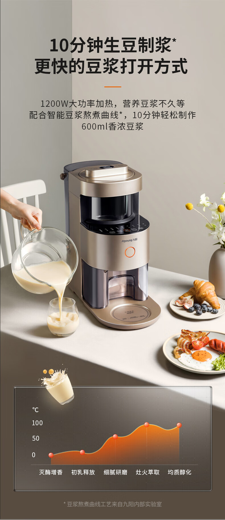 九阳(Joyoung) 【肖战推荐】低音破壁机0.3-1.2L热烘除菌预约家用多功能豆浆机Y1Pro 榛果金