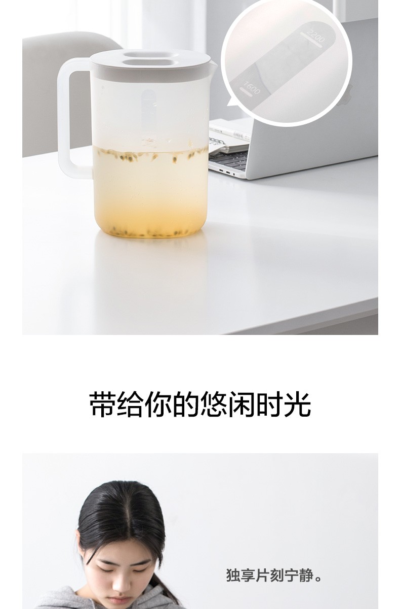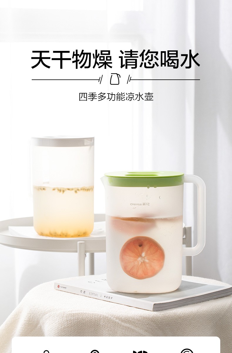 茶花(CHAHUA)茶花冷水壶 塑料大容量透明凉水壶凉水杯果汁壶冷饮壶 【2.2L】优乐凉水壶L-透明白