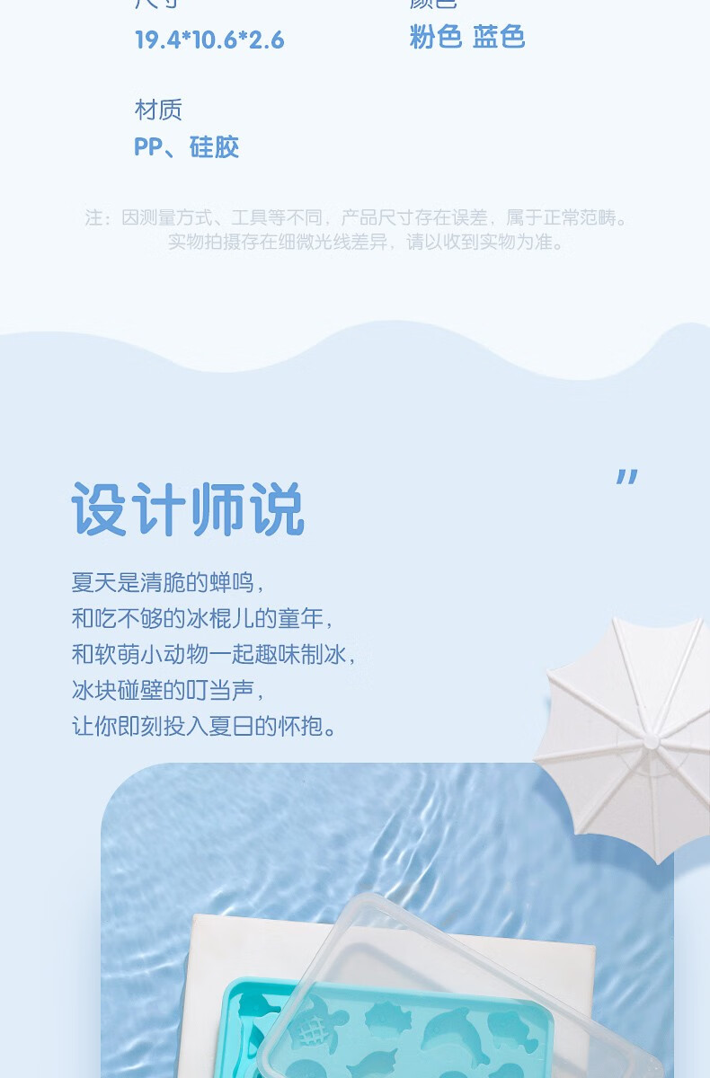 茶花奈斯童趣冰块盒(1个装)满足童心轻松脱模 红色+蓝色(两个装)