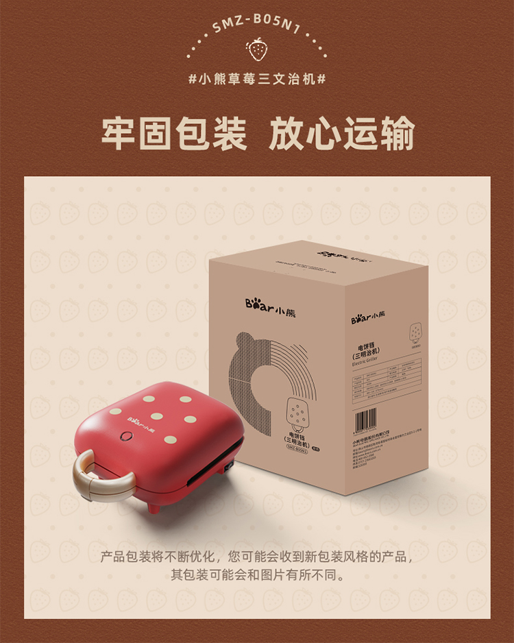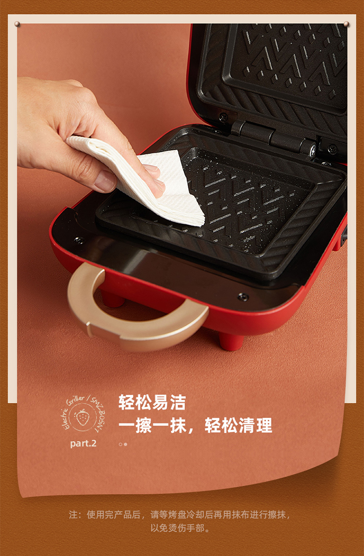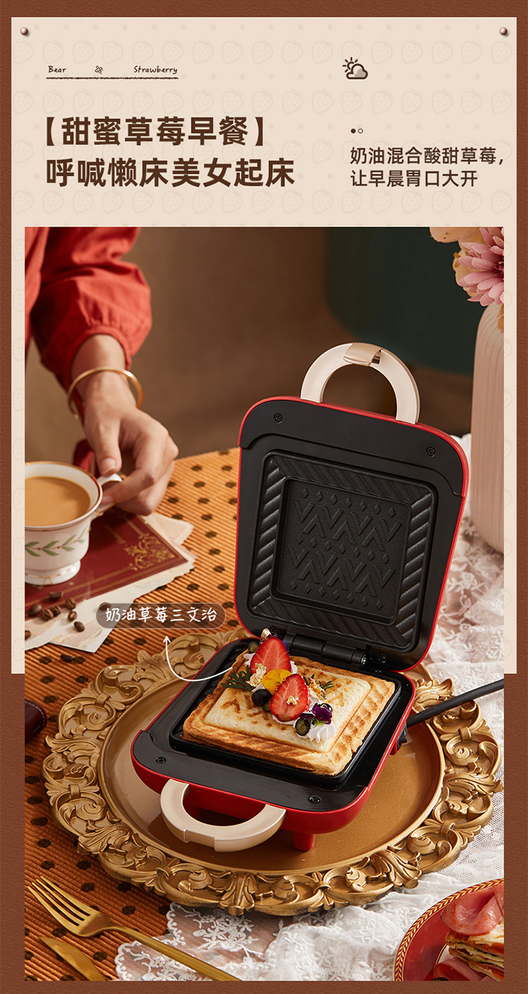小熊(Bear) 三明治机电饼铛家用多功能早餐机双面恒温压烤机烤吐司机 SMZ-B05N1 双面加热,自动封边